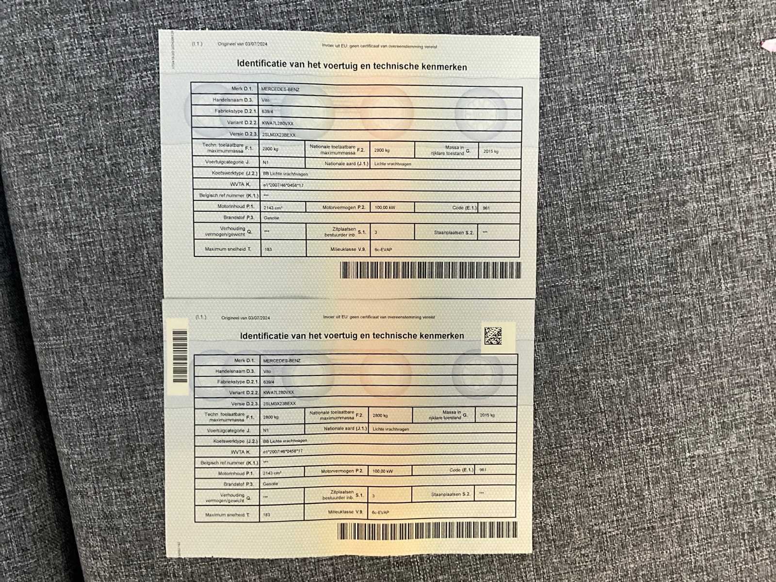 Nee Merk: Mercedes-Benz Type: Vito Bouwjaar: 2019 Afgelezen kilometerstand: 127120km Cilinderinhoud: 2143cc Vermogen (kW): 100kW Brandstof: diesel Chassisnummer: WDF4476031362547 Datum eerste toelating: 6/11/2019 Transmissie: Handgeschakeld Emissieklasse: V9 Aantal sleutels: 2 Gelijkvormigheidsattest aanwezig: true Carpass: true Start en rijdt: Ja Keuringsrapport geldig tot: 26/06/2026 Andere boorddocumenten: Keuringsbewijs, Car-Pass Zichtbare schade: Ja zie foto’s deuken Vavato voert geen technische keuring uit.: true Inschrijvingsbewijs - deel 1 : Aanwezig Inschrijvingsbewijs - deel 2: Aanwezig