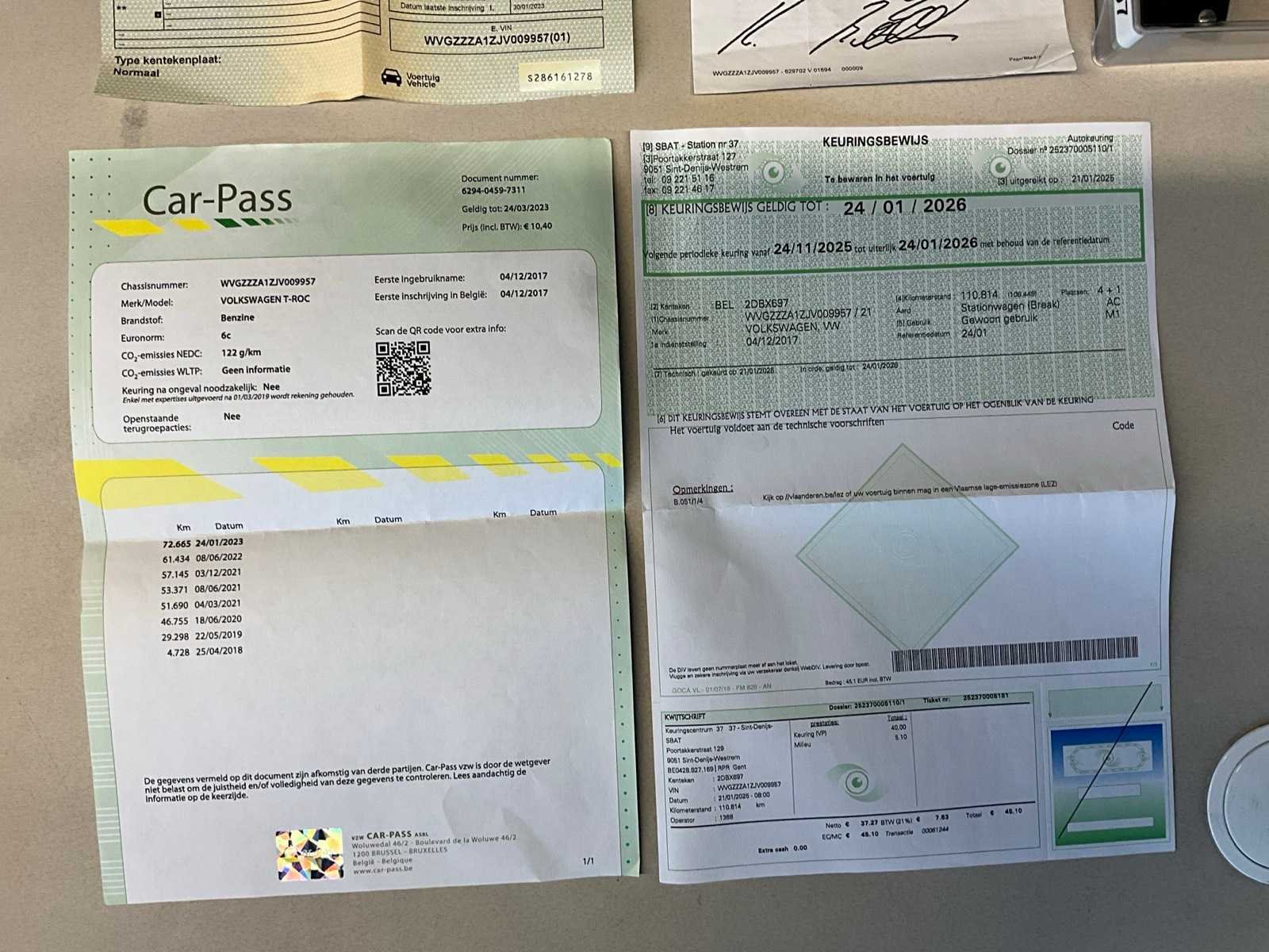 Nee Merk: Volkswagen Type: T-Rock Bouwjaar: 2017 Afgelezen kilometerstand: 121164km Cilinderinhoud: 1498cc Vermogen (kW): 110kW Brandstof: benzine Chassisnummer: WVGZZZA1ZJV009957 Datum eerste toelating: 4/12/2017 Aantal zitplaatsen: 5 Emissieklasse: Euro 6 Aantal sleutels: 2 Gelijkvormigheidsattest aanwezig: true Carpass: true Keuringsrapport geldig tot: 24/01/2026 Andere boorddocumenten: Keuringsbewijs Vavato voert geen technische keuring uit.: true Inschrijvingsbewijs - deel 1 : Aanwezig Inschrijvingsbewijs - deel 2: Niet aanwezig