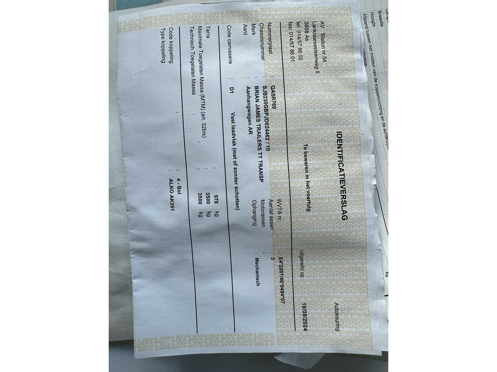 Nee Merk: Brian James Type: TT Transporter Bouwjaar: 2019 Chassisnummer: SJB230GBPJD024462 Laadvermogen: 3500kg Kentekenpapieren compleet?: true Lengte: 709.5cm Breedte: 213.4cm Nationaliteit documenten: België
