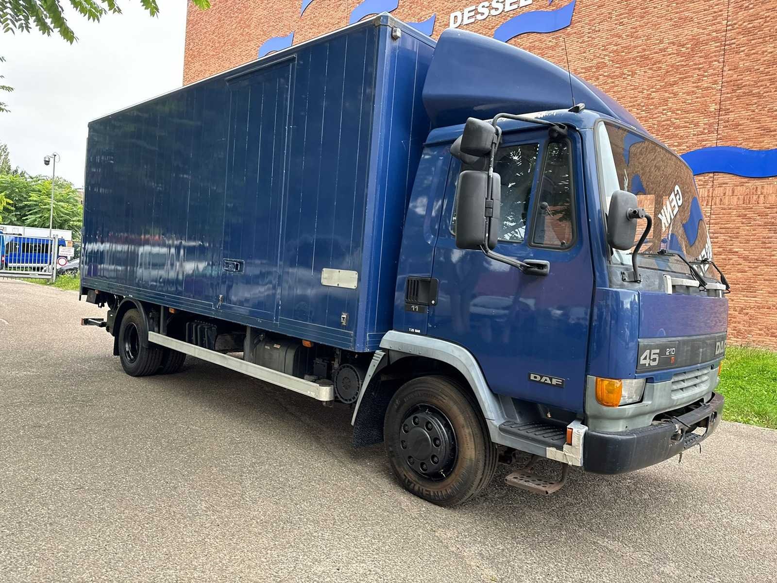 DAF 45 | Slechts 81.000km! | Laadklep + Lift | Ex Overheid | 1ste Eigenaar Laadvermogen 6000 kg Hefvermogen Laadklep 1500kg Afmetingen laadbak: L640 H280 B240 Rijbewijs C Slechts 81.000km Ex overheidsvoertuig 1ste Eigenaar Nieuwe Michelin banden No Merk: DAF Type: 45 210 TI Bouwjaar: 1998 Kilometerstand bij opname: 81059km Aantal assen: 2 Laadvermogen: 6000kg Hydraulische laadklep: true Totale afmeting L: 7600mm Startinformatie: Start en rijd Nationaliteit documenten: Belgie Aantal zitplaatsen: 2 Handgeschakelde versnellingsbak: true Diesel: true
