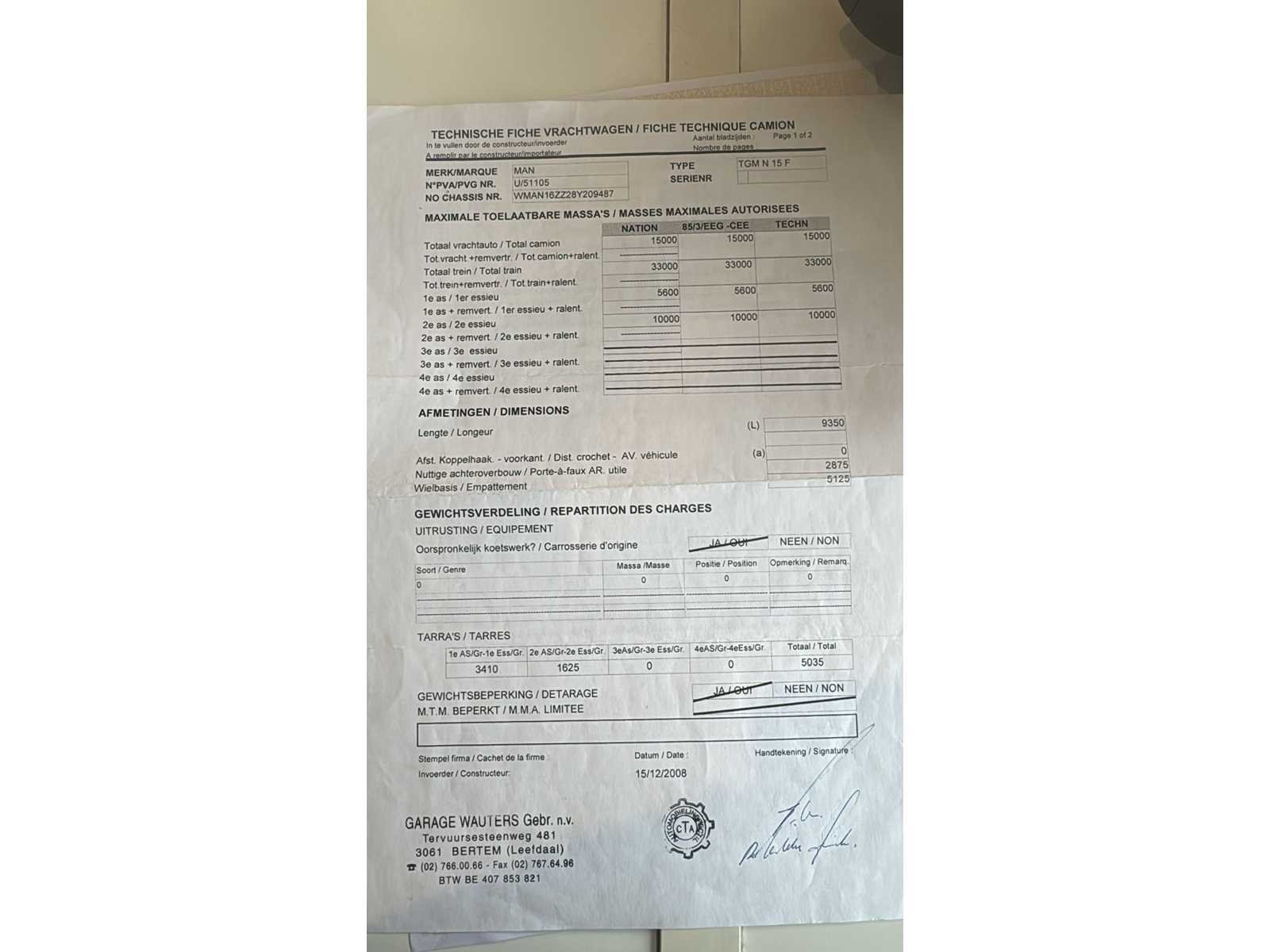 2/3 lader + bril 15ton. Alle documenten aanwezig. Nee Merk: MAN Type: TGM 15.240 Bouwjaar: 2008 Chassisnummer VIN: WMAN16ZZ28Y209487 Cilinderinhoud: 6871cc Kilometerstand bij opname: 477574km Datum eerste toelating: 22/07/2008 Startinformatie: Start en rijdt