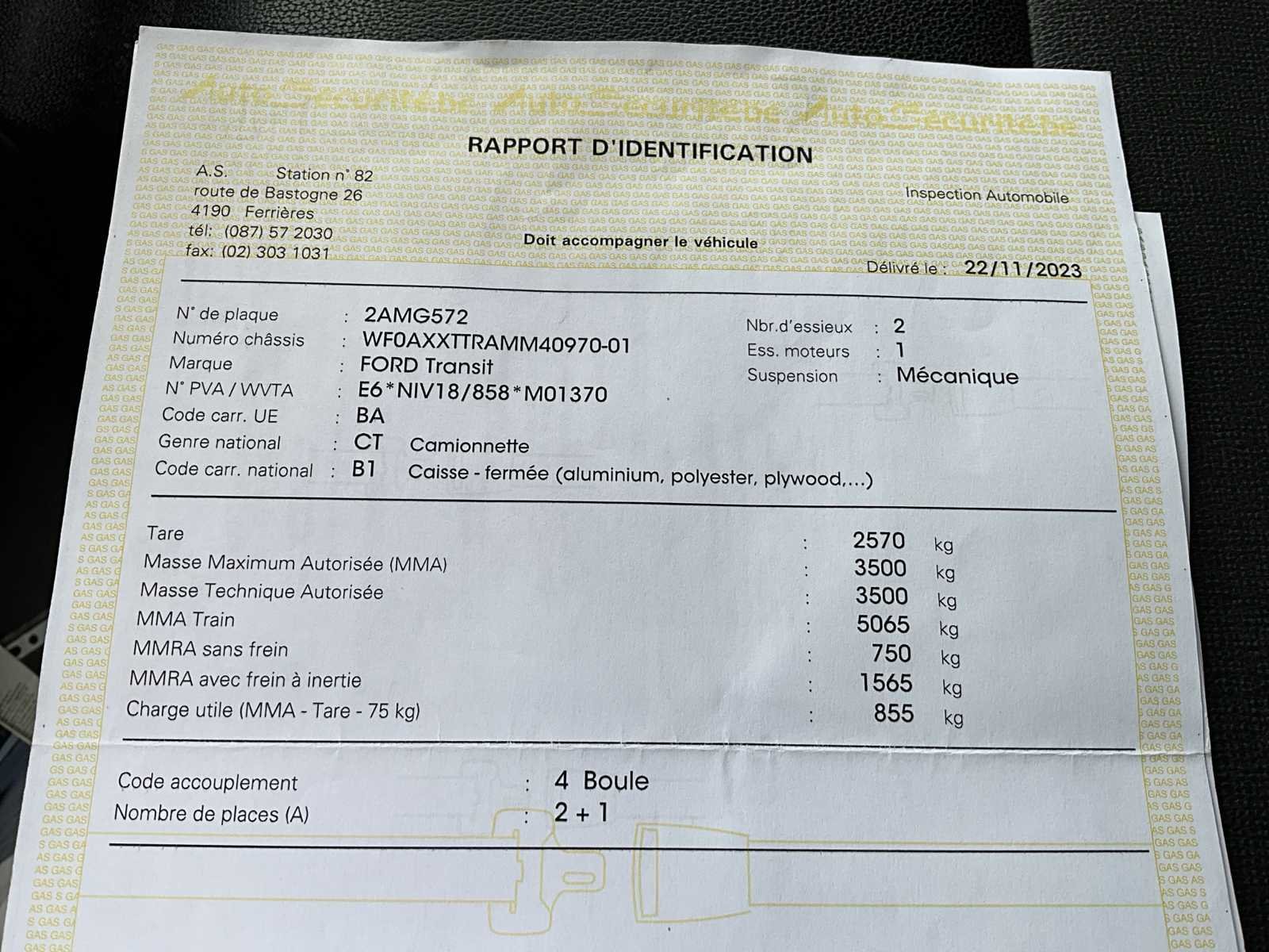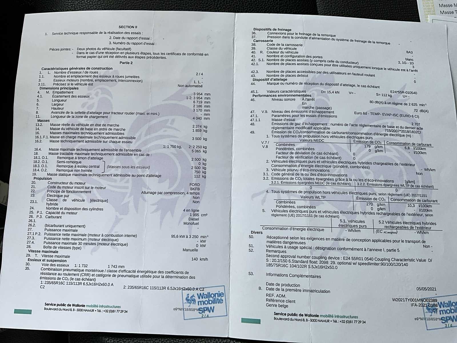 Een Ford Transit camionnette uit 2021, uitgevoerd met 3 zitplaatsen, een gesloten laadbak en trekhaak. Slechts 72000km. Deze wagen is ontworpen voor professioneel gebruik en combineert betrouwbaarheid, laadcapaciteit en trekvermogen in één robuust werkvoertuig. De wagen verkeert in goede, verzorgde staat en is start- en rijklaar. Banden zijn nog zeer goed - wordt verkocht zonder inhoud laadbak - paar kleine deukjes aan de zijkant en van 1 spiegel barstje in richtingaanwijzer (werkt wel). Onmiddellijk inzetbaar! Nee Merk: Ford Model: Transit Type: Camionnete Bouwjaar: 2021 Afgelezen kilometerstand: 72254km Cilinderinhoud: 1995cc Vermogen (kW): 60kW Brandstof: diesel Chassisnummer: WF0AXXTTRAMM40970 Datum eerste toelating: 11/5/2021 Aantal zitplaatsen: 3 Kleur: wit Transmissie: Handgeschakeld Emissieklasse: Euro 6 Aantal deuren: 4 Aantal sleutels: 2 Gelijkvormigheidsattest aanwezig: true Start en rijdt: ja Keuringsrapport geldig tot: 14/12/2024 Zichtbare schade: ja Vavato voert geen technische keuring uit.: true Inschrijvingsbewijs - deel 1 : Aanwezig Inschrijvingsbewijs - deel 2: Aanwezig