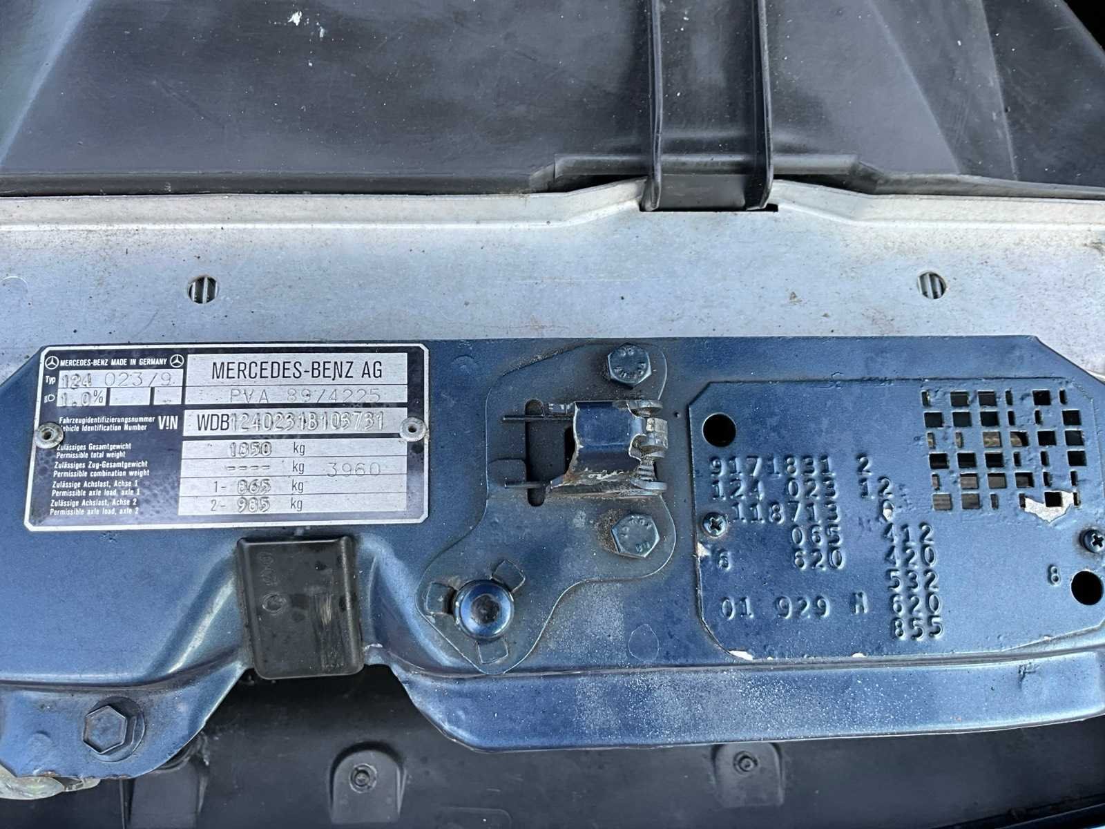 Volledig gerestaureerd, mechanisch en lakwerk - voorzien van epoxy grondverf, 6 lagen lak en vernis - alle rubbers van ophanging vervangen - nieuwe schokdempers, veren - alle remmen en leidingen vernieuwd - vernieuwde velgen, nieuwe banden - afneembare trekhaak- nieuwe originele reserveband - origineel stoffen interieur - schuifdak - gekleurd glas - automaat - volledig onderhoud gehad (van motor, automaat, differentieel, voorzien van olie, vetten en dichtingen) - emissie sticker voor Duitsland euro 4 - verbruik 8,7L No Merk: Mercedes-Benz Type: W124 E230 Bouwjaar: 1989 Chassisnummer: WDB1240231B103731 Afgelezen kilometerstand: 87501 Brandstof: benzine Datum eerste toelating: 8/11/1989 Nationaliteit documenten: B Kentekenpapieren compleet?: true Transmissie: automaat Aantal deuren: 5 Aantal zitplaatsen: 5 Kleur: blauw Cilinderinhoud: 2300 Inschrijvingsbewijs - deel 1 : aanwezig Inschrijvingsbewijs - deel 2: aanwezig Gelijkvormigheidsattest aanwezig: true