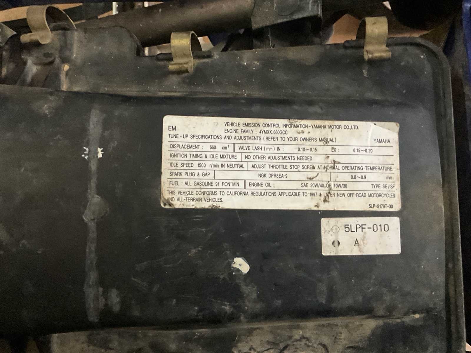 Batterij defect Groot onderhoud aan te raden, valt soms stil Draai en rijd Nee Merk: Yamaha Model: YFM660 Chassisnummer: JY4AM01Y94C061511 Aantal sleutels: 1 Transmissie: Handgeschakkeld Bouwjaar: 2004 Vermogen (pk): 20hp Cilinderinhoud: 660cc Brandstof: Benzine