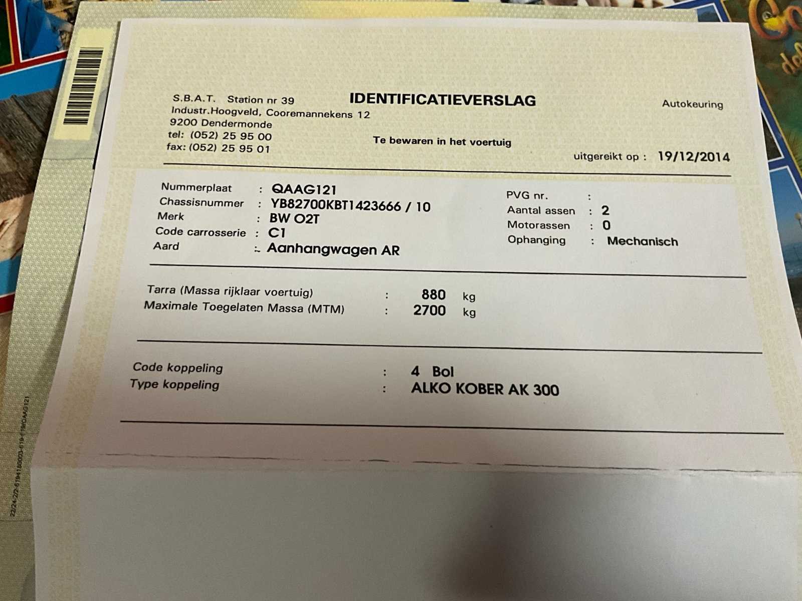 330x182x105 Nee Merk: BW Type: 270KBV Bouwjaar: 2014 Chassisnummer: YB82700KBT1423666 Aantal assen: 2
