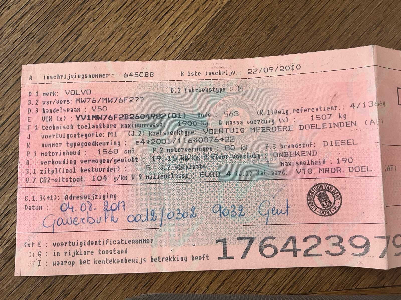 No Merk: Volvo Model: V50 Bouwjaar: 2010 Chassisnummer: 4982