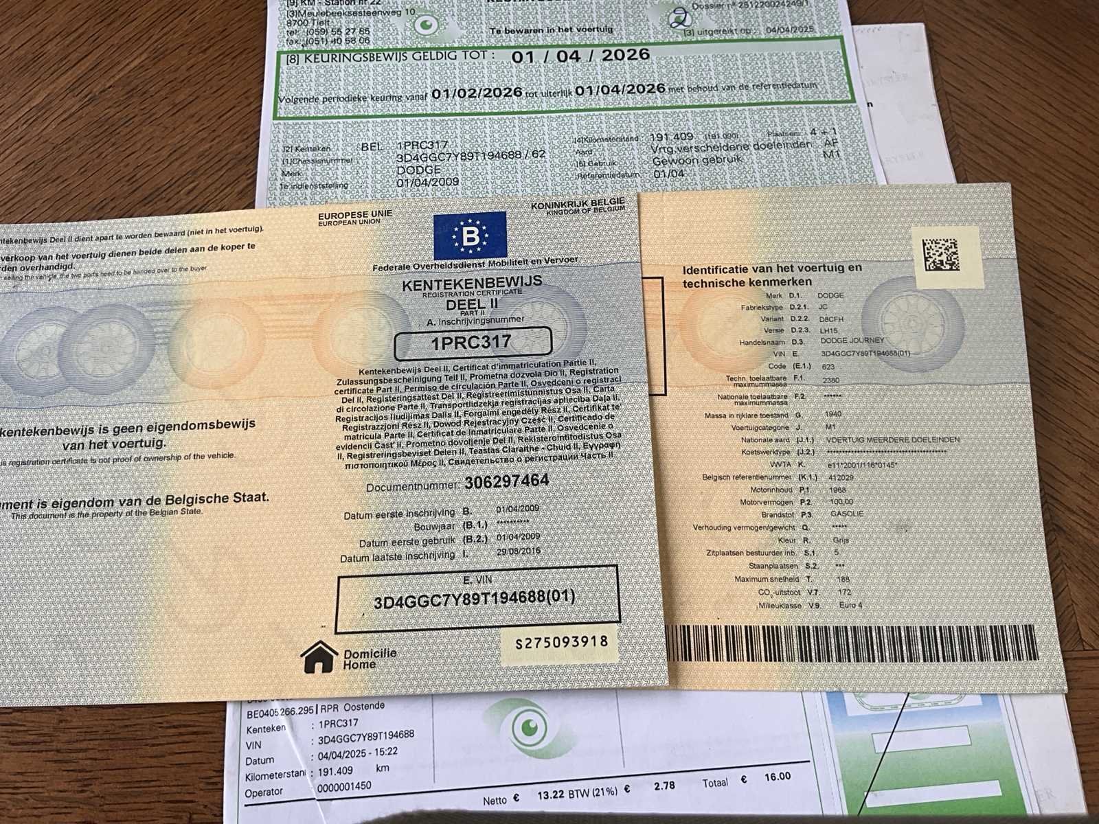 No Merk: Dodge Model: Journey Bouwjaar: 2009 Brandstof: Gasolie Chassisnummer: 4688