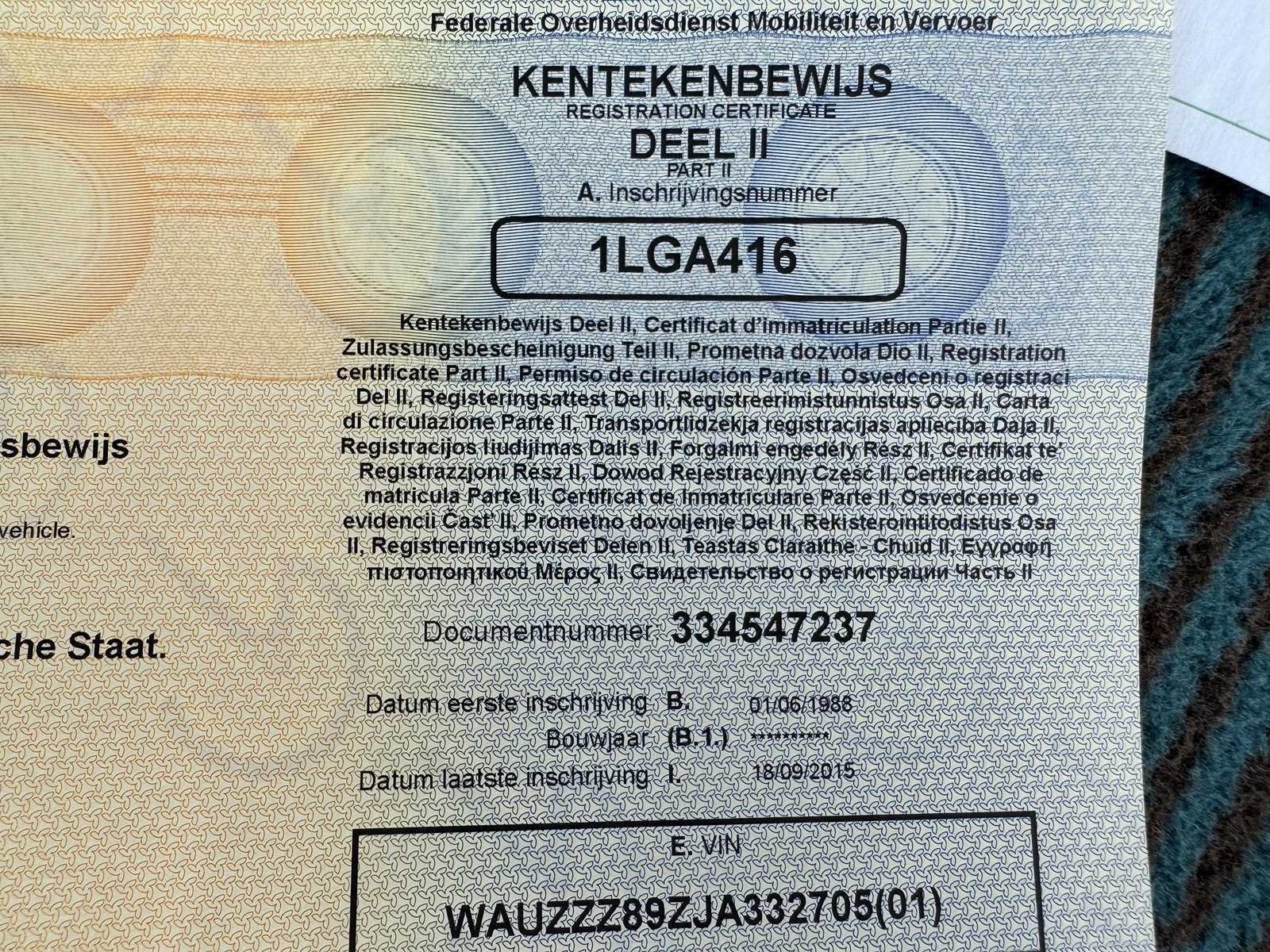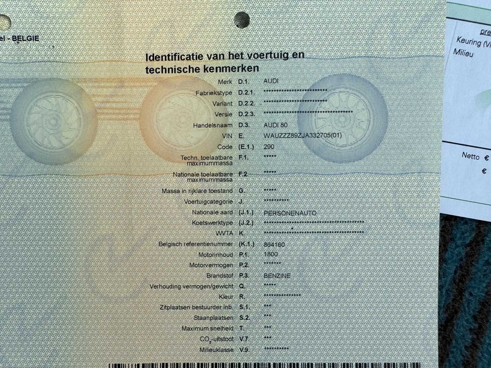 Nee Merk: Audi Type: 80 Bouwjaar: 1988 Chassisnummer: 332705 Afgelezen kilometerstand: 128762 Model: 80 Brandstof: Benzine Datum eerste toelating: 01/06/1988 Boorddocumenten aanwezig?: true Nationaliteit documenten: BE Kentekenpapieren compleet?: true Cilinderinhoud: 1800 Inschrijvingsbewijs - deel 1 : Ok Inschrijvingsbewijs - deel 2: Ok