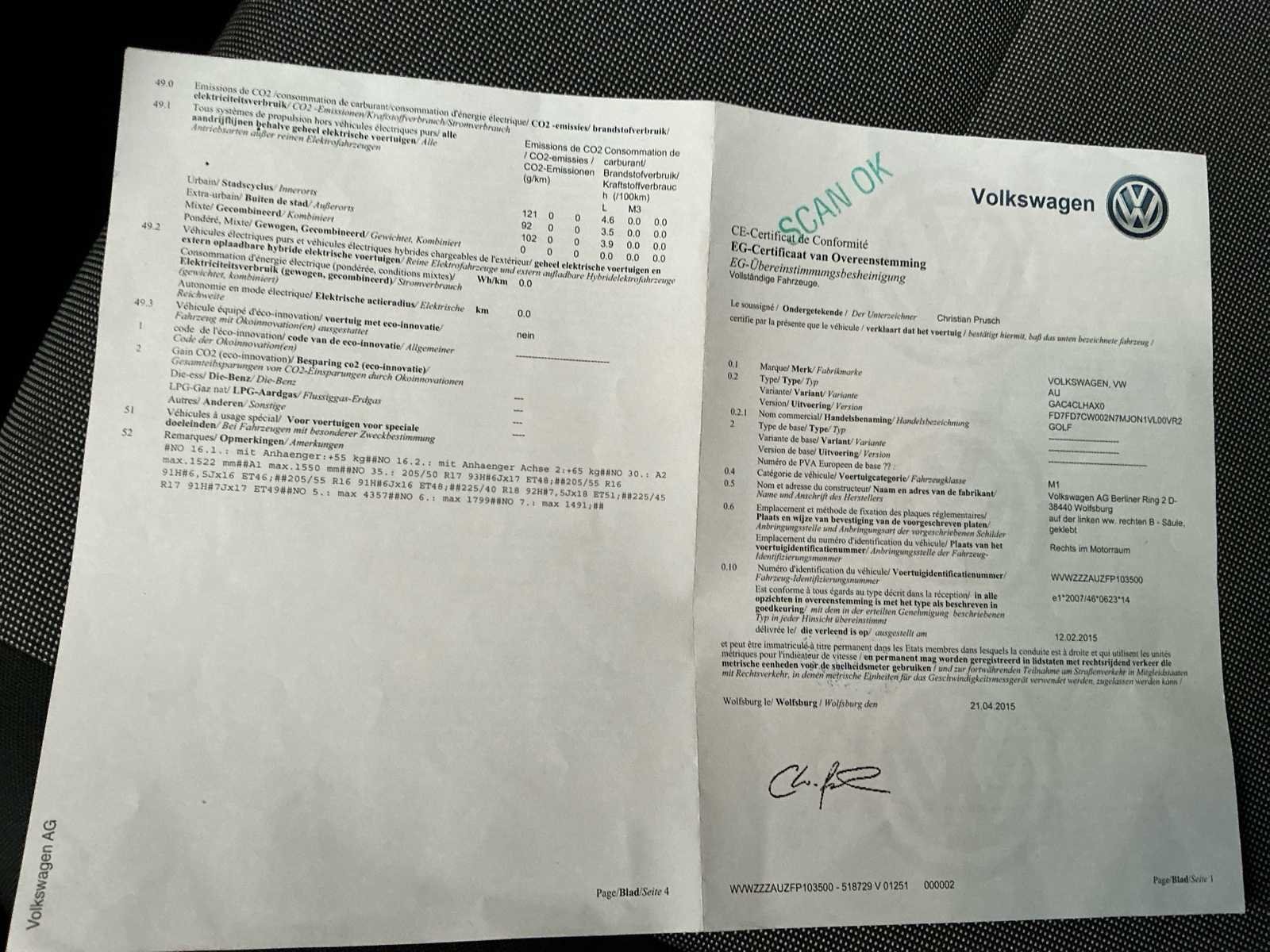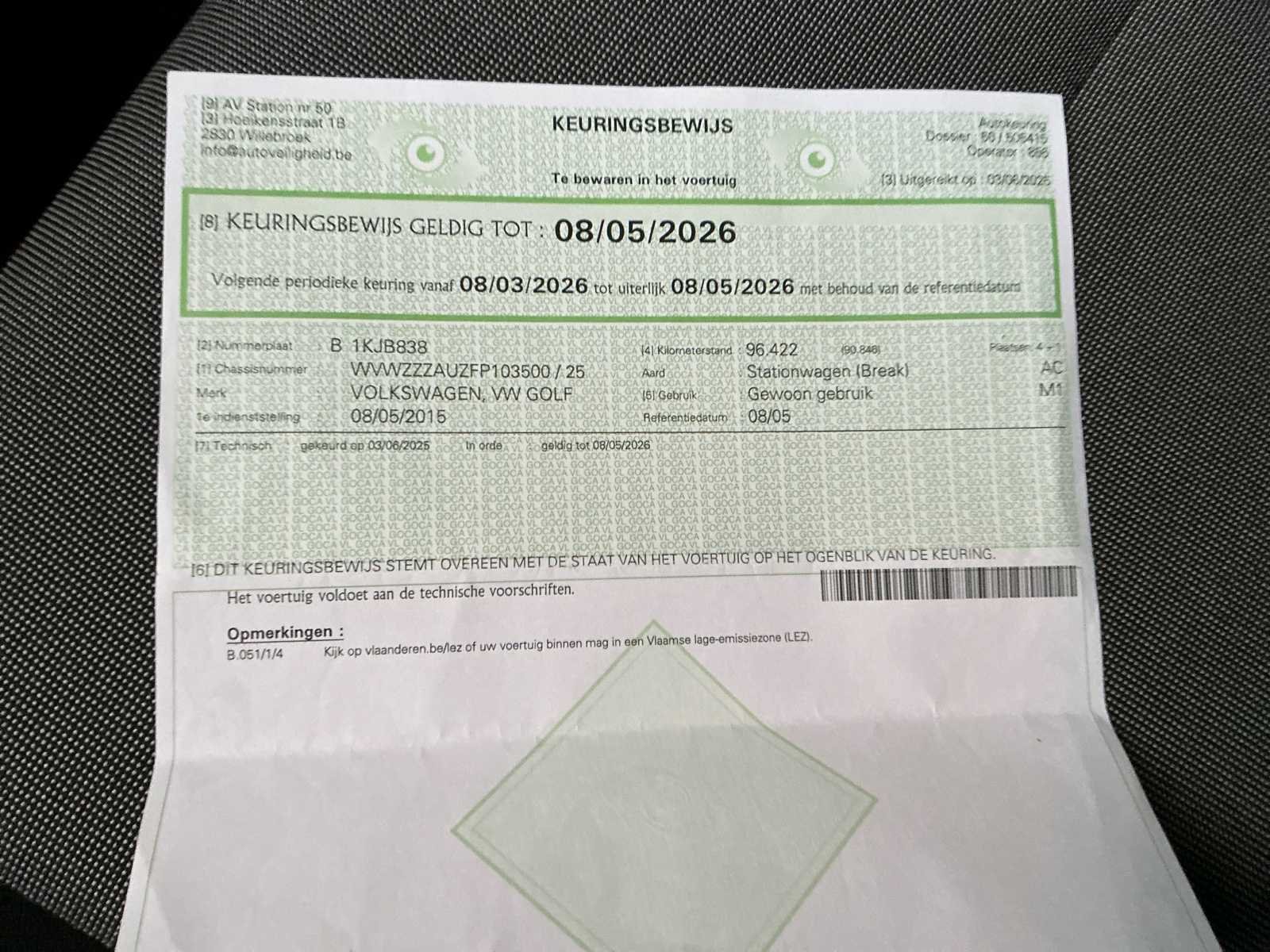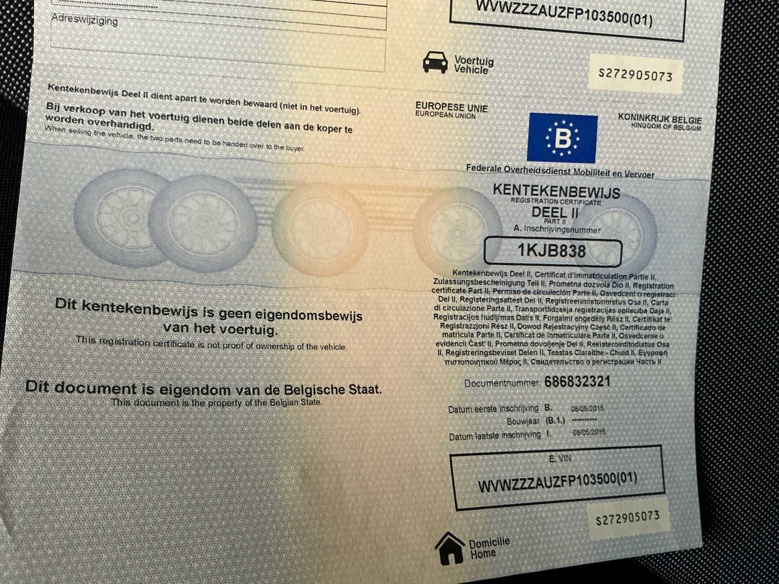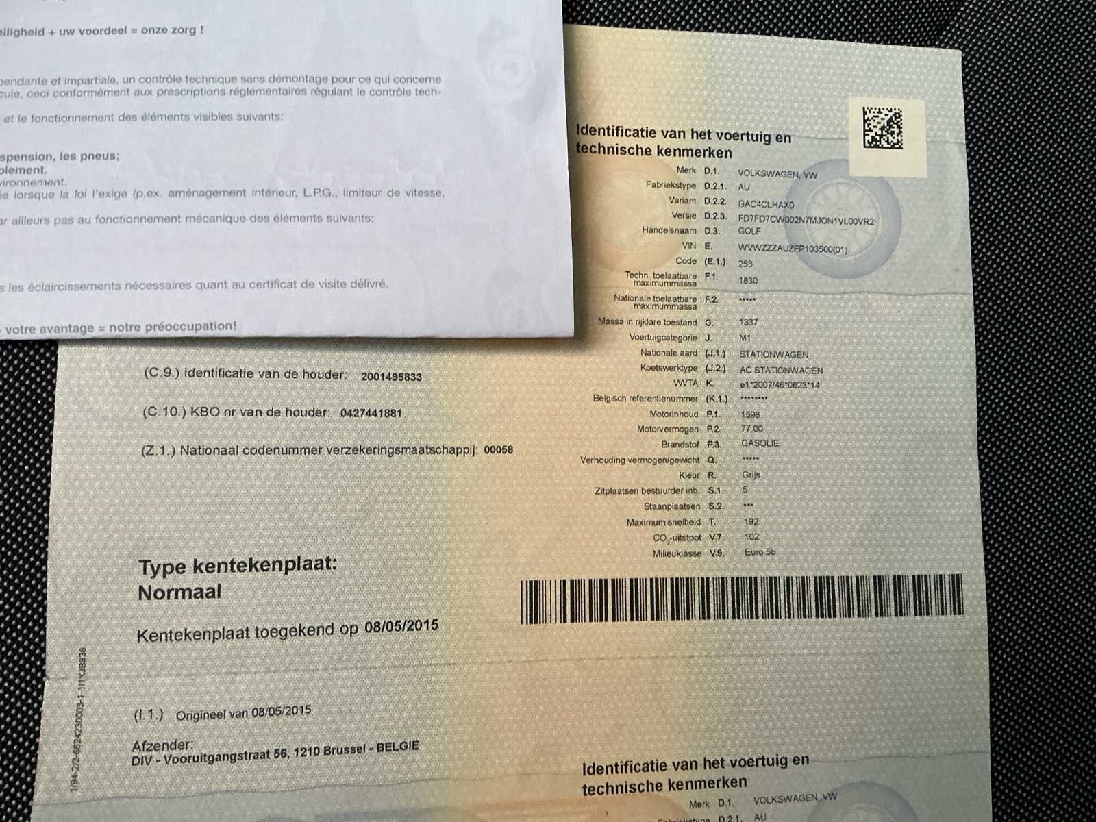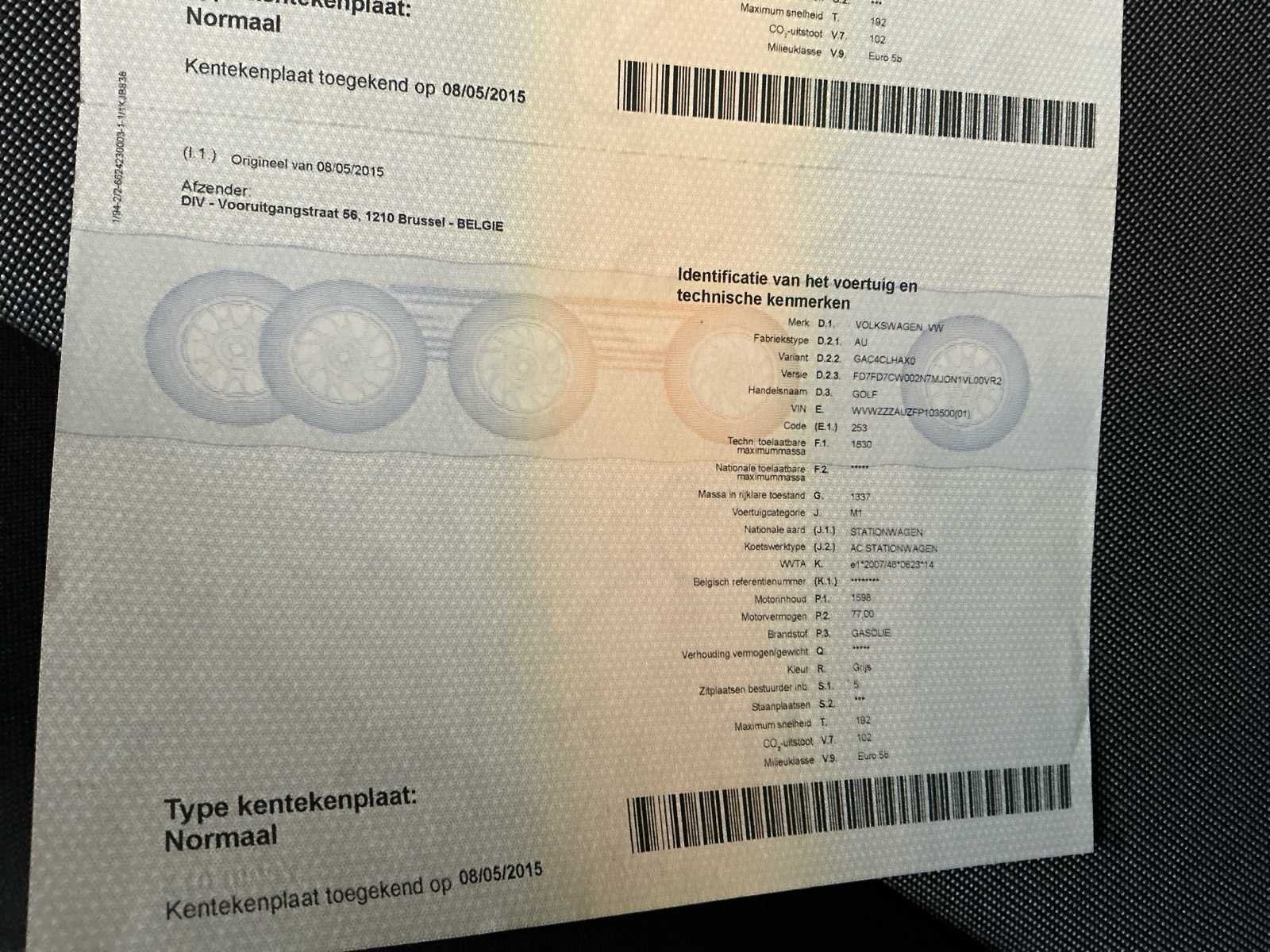 In werkende staat. Kleine carrosserie schade (zie foto’s). No Merk: Volkswagen Model: Golf VII 1.6 CR TDi Trendline DSG Bouwjaar: 2015 Afgelezen kilometerstand: 100195km Cilinderinhoud: 1598cc Vermogen (kW): 77kW Brandstof: Diesel Chassisnummer: WVWZZZAUZFP103500 Datum eerste toelating: 08/05/2015 Aantal zitplaatsen: 5 Kleur: Grijs Transmissie: Automaat Emissieklasse: Euro 5b Aantal deuren: 5 Nationaliteit documenten: België Gelijkvormigheidsattest aanwezig: true Start en rijdt: Ja Vavato voert geen technische keuring uit.: true Airconditioning: true Inschrijvingsbewijs - deel 1 : Ja Inschrijvingsbewijs - deel 2: Ja