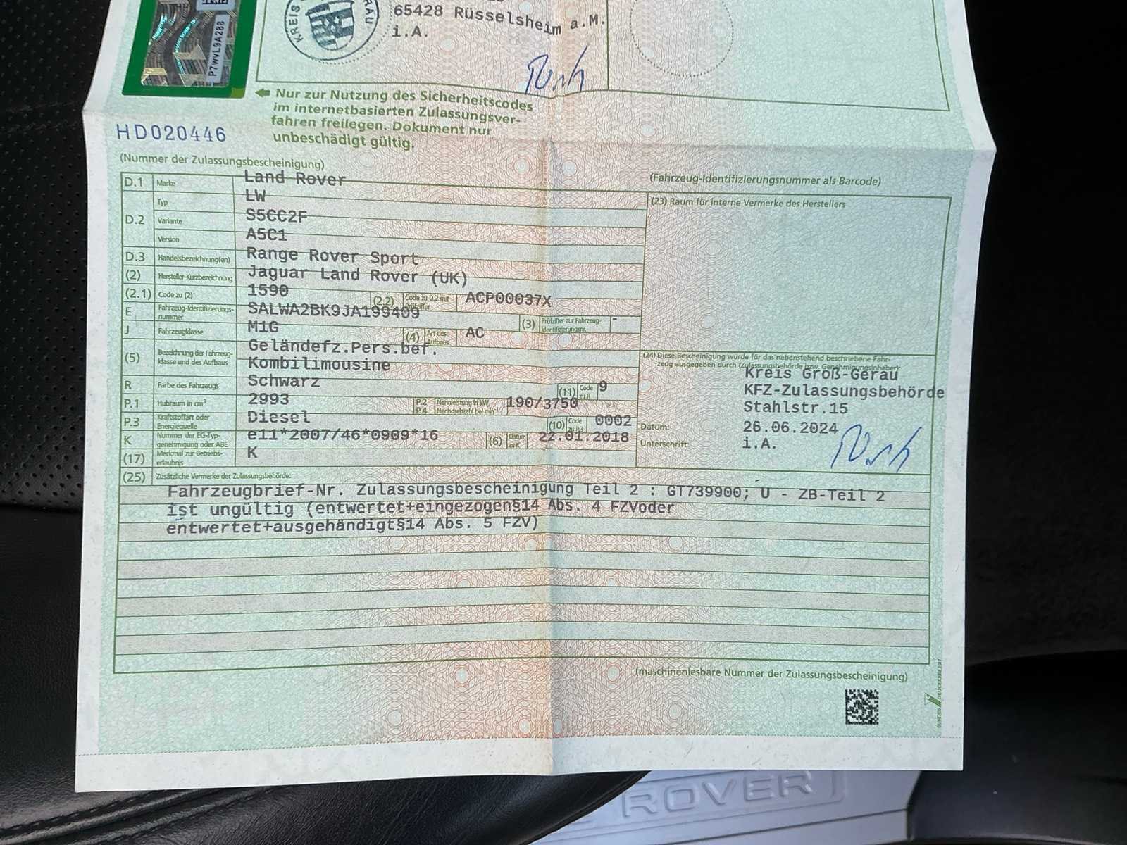 Land Rover Range Rover Sport UIT 2018 brengt een hoogte van 271.000 kilometer op de teller. Technisch en motorisch in goed werkende staat. Geen schade. Douanedocument e705 kan voorzien worden voor inschrijving. Non Merk: Land Rover Model: Range Rover Sport Bouwjaar: 2018 Afgelezen kilometerstand: 271117km Cilinderinhoud: 2993cc Vermogen (kW): 190kW Brandstof: Diesel Chassisnummer: SALWA2BK9JA199409 Datum eerste toelating: 12/06/2018 Aantal zitplaatsen: 5 Kleur: Zwart Transmissie: Automaat Emissieklasse: Euro 6 Aantal deuren: 5 Aantal sleutels: 2 Nationaliteit documenten: Kanalen Start en rijdt: Ja Vavato voert geen technische keuring uit.: waar Airconditioning: true Navigatie: true Leder bekleed: true