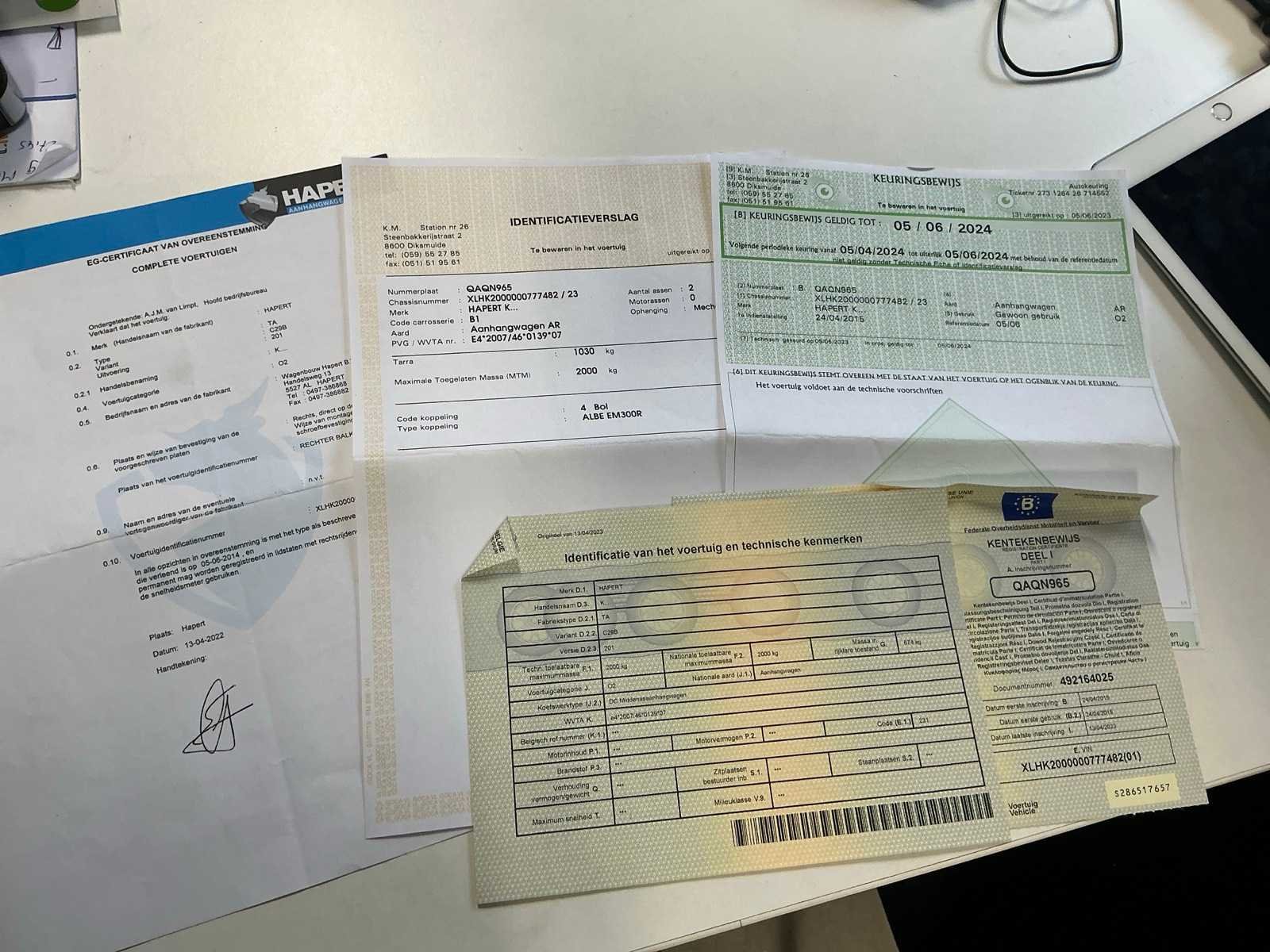 Nee Merk: Hapert Type: TA Bouwjaar: 2015 Chassisnummer: XLHK2000000777482 Aantal assen: 2 Laadbak afmeting l: 300cm Laadbak afmeting b: 150cm Datum eerste toelating: 13/04/2015 Nationaliteit documenten: Belgisch