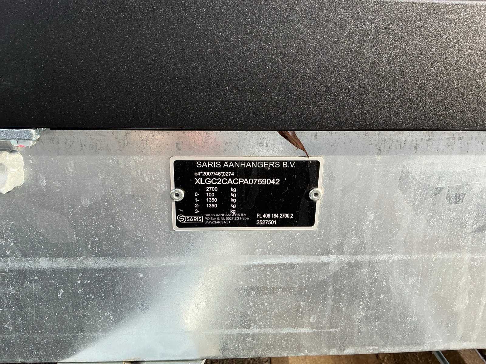 Levering mogelijk mits meerprijs (vraag ernaar bij de veilingmakelaar) Nee Merk: Saris Type: C2C Bouwjaar: 2025 Chassisnummer: XLGC2CACPA0759042 Aantal assen: 2 Laadbak afmeting l: 406cm Laadbak afmeting b: 186cm