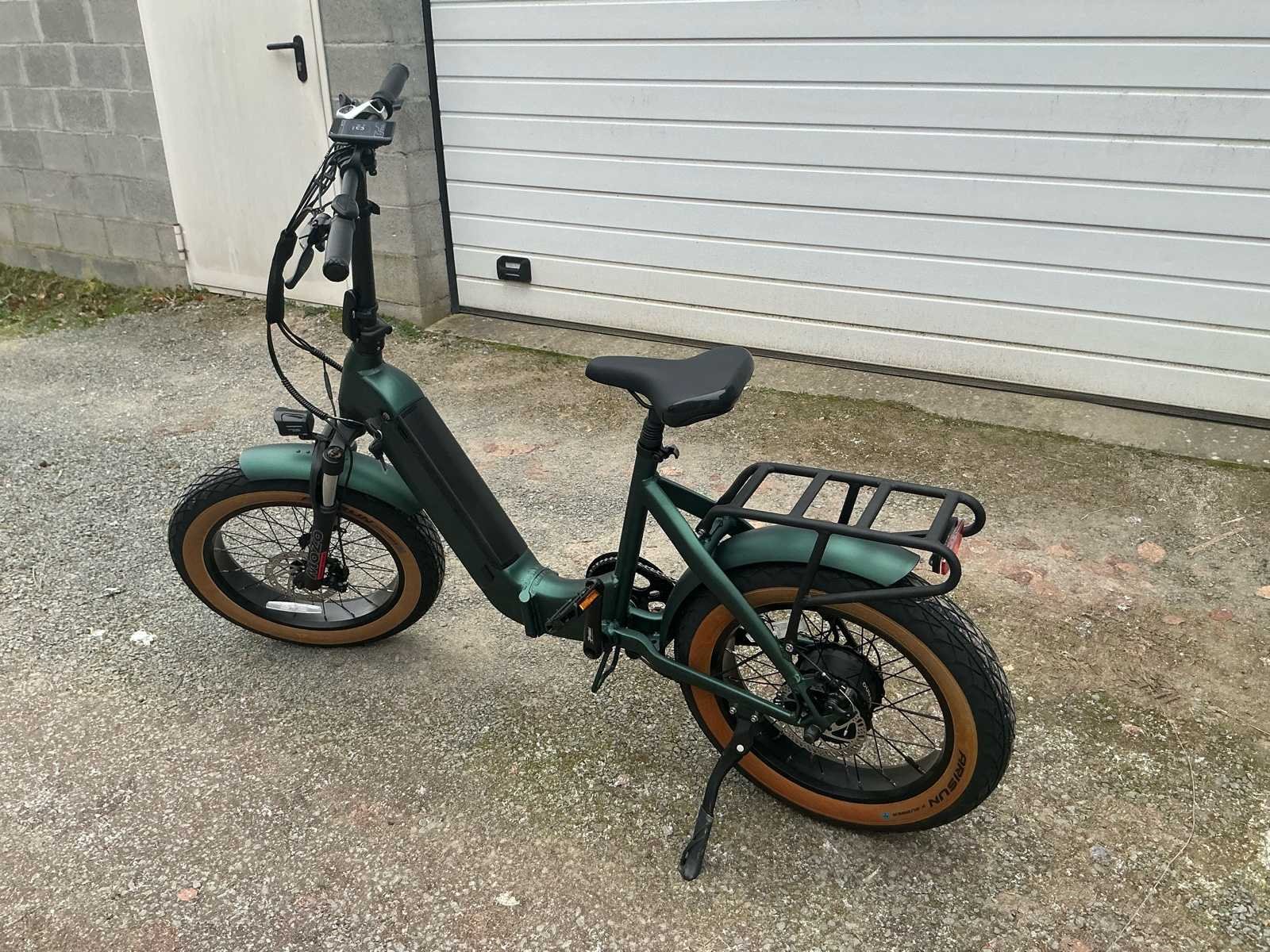 Ongeveer 35km/u-Plooitype-Motor Bafang achternaaf 48V 750W-14 AH Lithium Samsung-Shimano versnellingen 7 speed-Waterdichte kabels-lcd kleurenscherm-Banden 20¨x 4.0.-Oplader AC 100V-240V-Led voor en achterlicht-Geveerde voorvorken mozo verstelbaar-Voorwiel snel release-Ketting kmc roestvrij staal No Merk: Passion Kleur: Dark Green