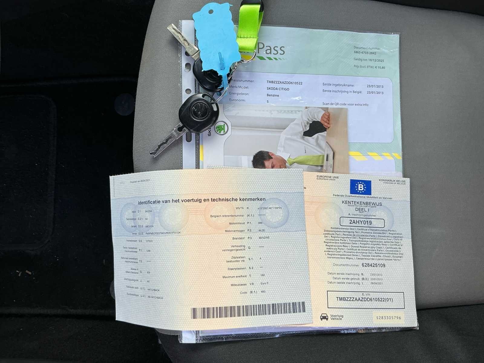 No Merk: Skoda Model: Citigo Bouwjaar: 2013 Afgelezen kilometerstand: 115003km Cilinderinhoud: 999cc Vermogen (kW): 44kW Brandstof: Benzine Chassisnummer: TMBZZZAAZDD610522 Datum eerste toelating: 23/01/2013 Aandrijving: Fwd Aantal zitplaatsen: 4 Kleur: Zwart Transmissie: Handgeschakeld Stuurwiel: Geen servo Emissieklasse: Euro 5 Aantal deuren: 4 Aantal sleutels: 2 Ledig gewicht: 929kg Aantal cilinders: 3 Carrosserie: hatchbak Nationaliteit documenten: Belgische Gelijkvormigheidsattest aanwezig: true Carpass: true Start en rijdt: Ja Technische fiche: true startinformatie : Start en rijdt Zichtbare schade: Neen Self drive export possible : true Vavato voert geen technische keuring uit.: true Navigatie: true Inschrijvingsbewijs - deel 1 : Aanwezig Inschrijvingsbewijs - deel 2: Aanwezig