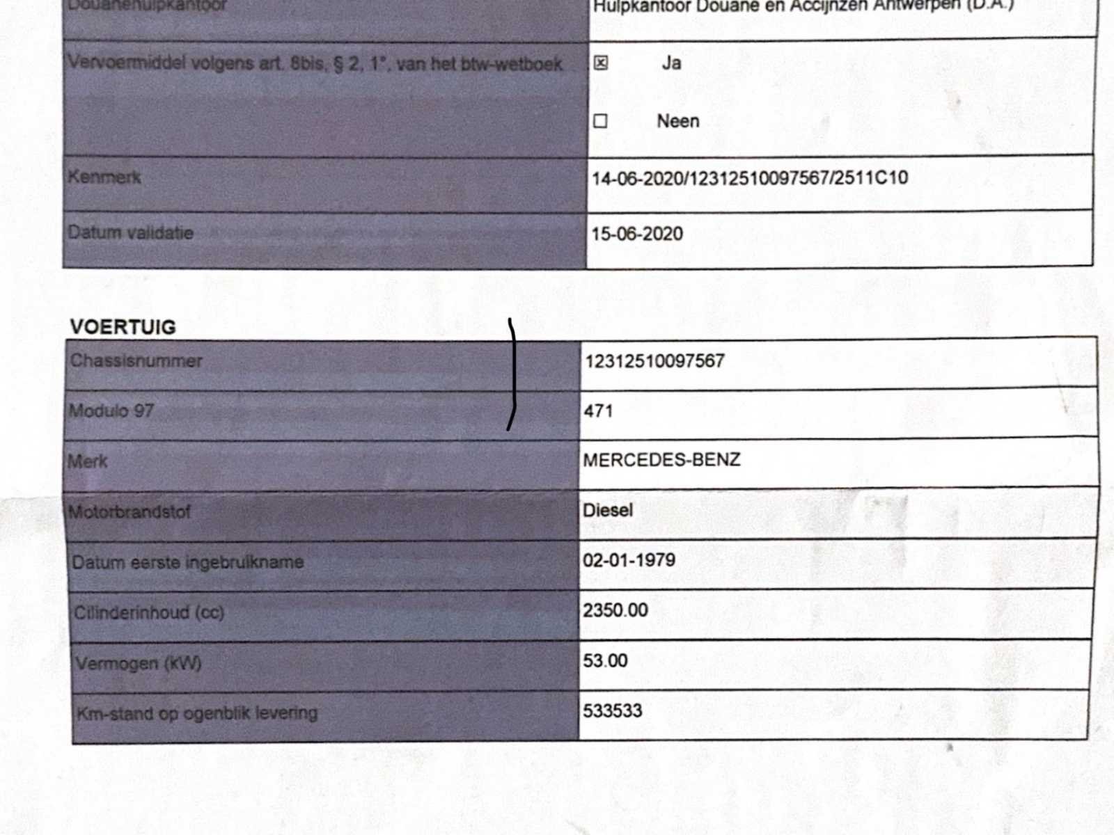 Wagen verkeert in goede staat heeft wel nood aan een nieuwe batterij. Start en rijdt zoals het hoort. Volledige taxatie rapport aanwezig. No Merk: Mercedes-Benz Model: 240d Type: Pullman W123 Afgelezen kilometerstand: 535700km Cilinderinhoud: 2400cc Vermogen (kW): 53kW Brandstof: Diesel Chassisnummer: 12312510097567 Vermogen (pk): 72hp Aandrijving: RWD Aantal zitplaatsen: 8 Kleur: Wit Transmissie: manueel Emissieklasse: 0 Aantal deuren: 5 Aantal sleutels: 2 Ledig gewicht: 1650kg Aantal cilinders: 4 Carrosserie: Limo Nationaliteit documenten: Nederland Start en rijdt: JA Andere boorddocumenten: E705 startinformatie : Start Self drive export possible : true Vavato voert geen technische keuring uit.: true Inschrijvingsbewijs - deel 1 : AANWEZIG Inschrijvingsbewijs - deel 2: AANWEZIG