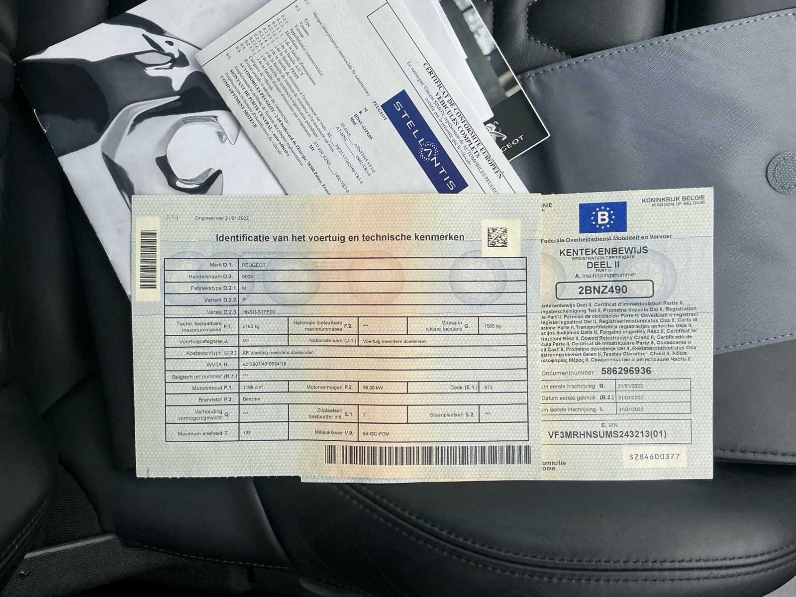 Massage stoelen Pano dak Gt line Wagen beschikt over alle opties No Merk: Peugeot Model: 5008 Type: Pure tech GT-line Afgelezen kilometerstand: 100000km Cilinderinhoud: 1199cc Vermogen (kW): 96kW Brandstof: Benzine Chassisnummer: VF4MRHNSUMS243213 Laadvermogen: 655kg Datum eerste toelating: 31/1_01/2022 Vermogen (pk): 130hp Energielabel: Euro 6d-ISC-FCM Aandrijving: Fwd Aantal zitplaatsen: 7 Kleur: Blauw Transmissie: Automaat Stuurwiel: Links Emissieklasse: Euro 6d Aantal deuren: 5 Aantal sleutels: 2 Ledig gewicht: 1505kg Aantal cilinders: 3 Carrosserie: MPV Nationaliteit documenten: Belgische Onderhoudshistorie: Volledig aanwezig Gelijkvormigheidsattest aanwezig: true Start en rijdt: Ja Technische fiche: true startinformatie : Start rijdt Zichtbare schade: Neen Self drive export possible : true Vavato voert geen technische keuring uit.: true Airconditioning: true Navigatie: true Xenon verlichting: true LED-koplampen: true Leder bekleed: true Inschrijvingsbewijs - deel 1 : Aanwezig Inschrijvingsbewijs - deel 2: Aanwezig