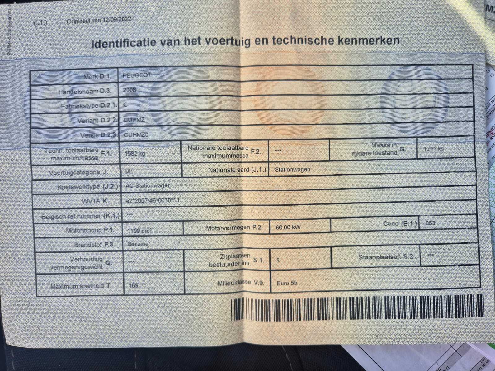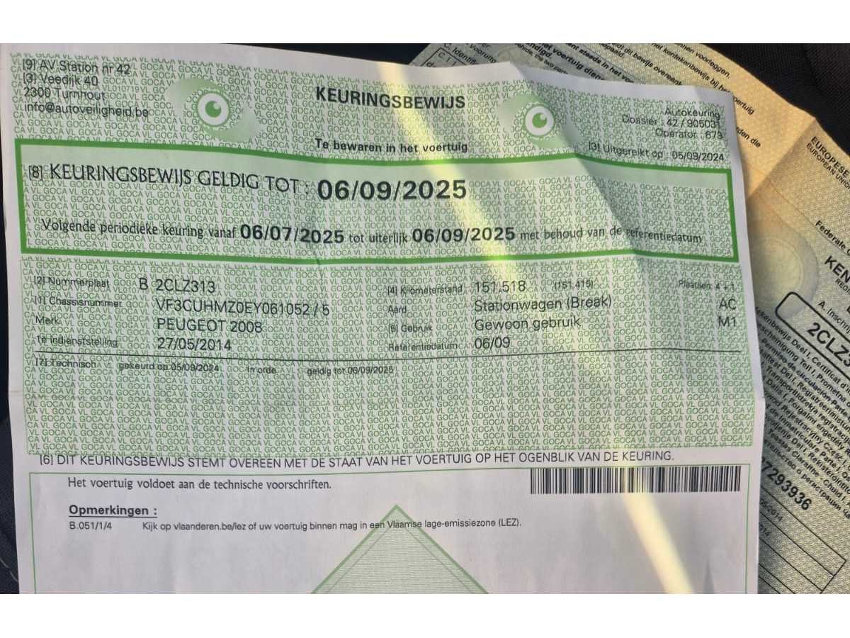 Koppeling hapert een beetje. Start en rijd normaal voor de rest. Nee Merk: Peugeot Type: 2008 Bouwjaar: 2014 Afgelezen kilometerstand: 170168km Cilinderinhoud: 1199cc Vermogen (kW): 60kW Brandstof: benzine Chassisnummer: VF3CUHMZ0EY061052 Datum eerste toelating: 2014 Aantal zitplaatsen: 5 Emissieklasse: Euro5b Start en rijdt: Ja Keuringsrapport geldig tot: 09/2025 Zichtbare schade: Zie foto’s Vavato voert geen technische keuring uit.: true Airconditioning: true Inschrijvingsbewijs - deel 1 : Aanwezig Inschrijvingsbewijs - deel 2: Aanwezig