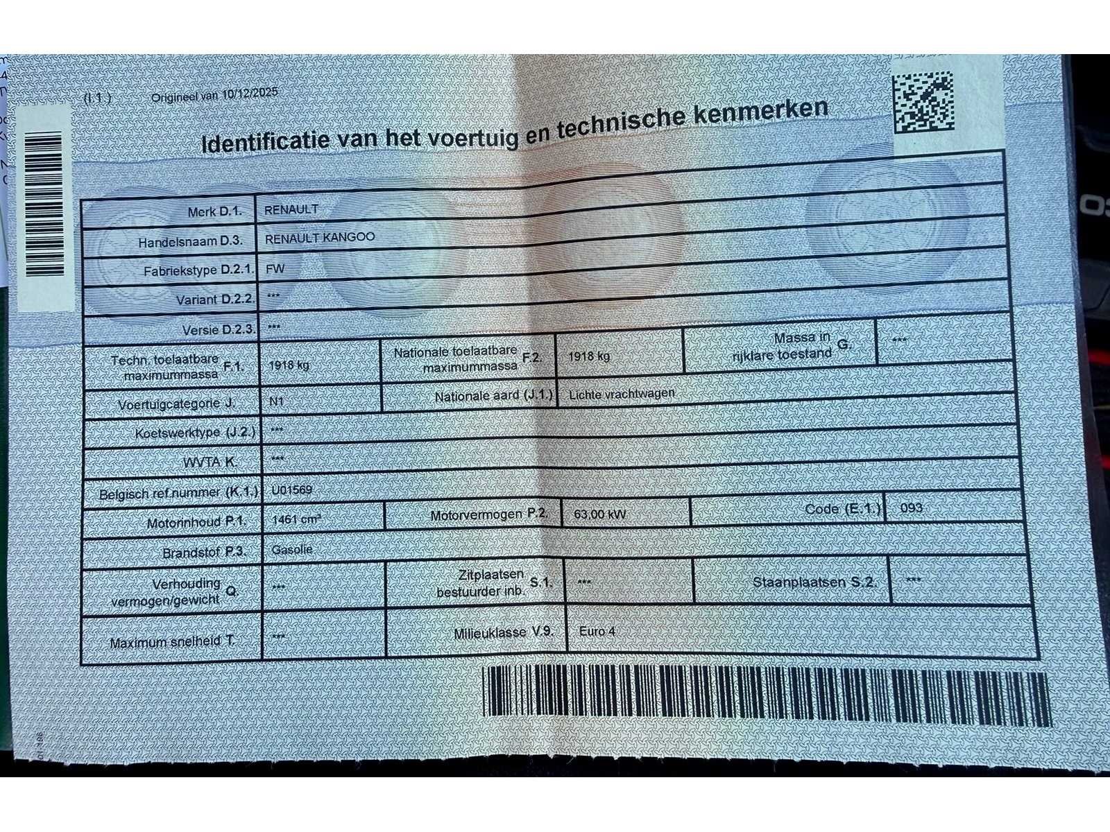 Opgelet, deze auto zal niet worden gekeurd voor verkoop (van toepassing op Belgische particuliere kopers). Nee Merk: Renault Model: Kangoo Bouwjaar: 2008 Afgelezen kilometerstand: 147026km Cilinderinhoud: 1461cc Vermogen (kW): 63kW Brandstof: Diesel Chassisnummer: VF1FW0BB538983054 Nationaliteit documenten: Belgisch Start en rijdt: JA8 Vavato voert geen technische keuring uit.: true Inschrijvingsbewijs - deel 1 : Aanwezig Inschrijvingsbewijs - deel 2: Aanwezig