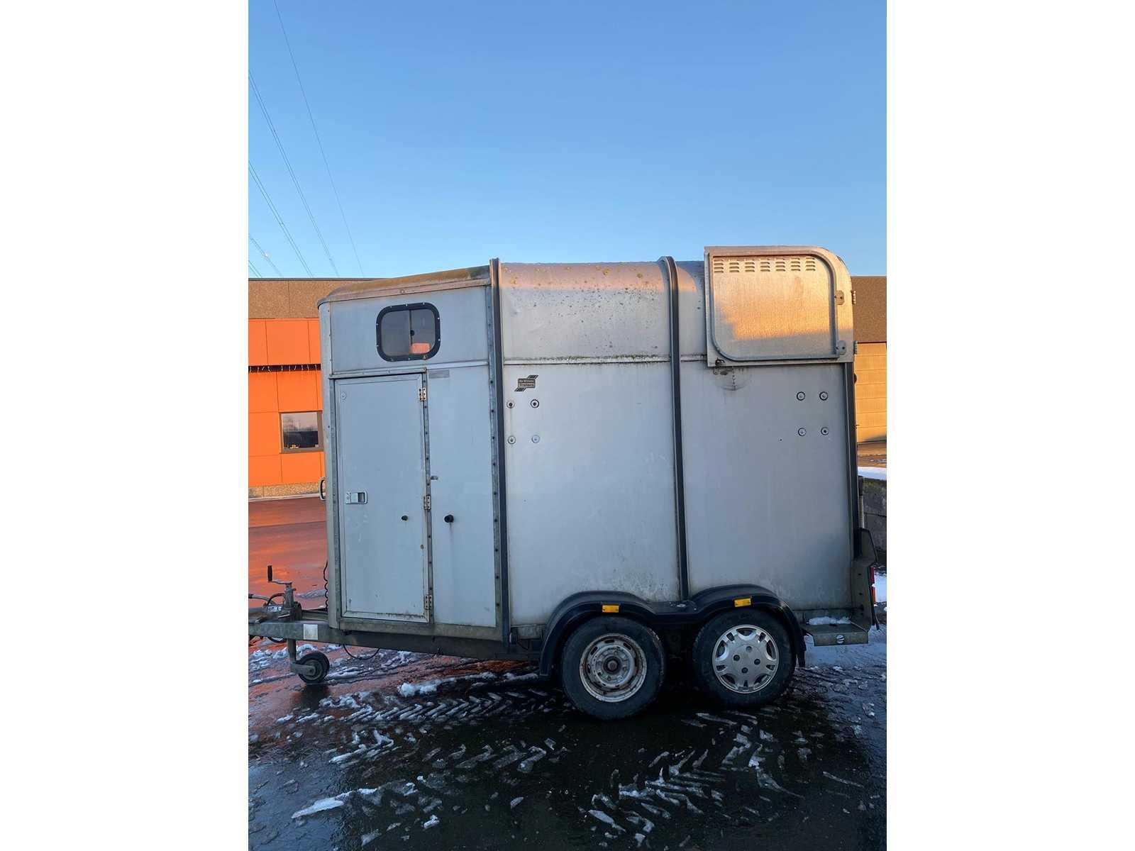 Ifor Williams Trailer Eerste inschrijving: 17/05/2005 Nuttige lengte: 305cm Nuttige breedte: 162cm plaats voor 2 paarden Neuswiel 7-polige stekker Technisch in orde, afgekeurd verlichting schade aan middenverdeling gebruikssporen banden met profiel, van 2017 Aluminium bodem Verzorgingsdeur aan bestuurderszijde geen reservewiel Antidiefstal slot in koppeling, sleutel ontbreekt No Merk: Ifor Williams Trailer Model: HB505 Product type: HB505 Chassisnummer: SCK40000055007323 Kleur: SILVER Gewicht: 920kg Lengte: 430cm Breedte: 210cm Hoogte: 262cm Bouwjaar: 2005 Leveringsvoorwaarden: Niet gefundeerd - onverpakt