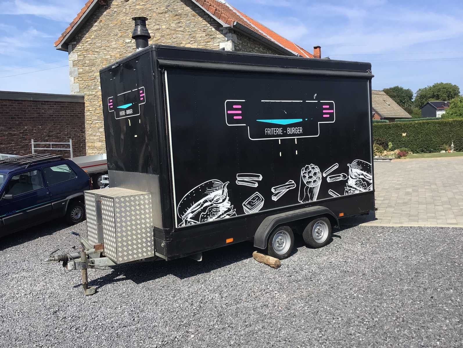 Trailerjaar 1999, registratieboek aanwezig, geen conformiteit, geen CT foodtrucktrailer, uitgerust met 3 frituurpannen, plancha's, bain-maries, koelkasten, vriezers, allemaal operationeel Non Merk: Broos
