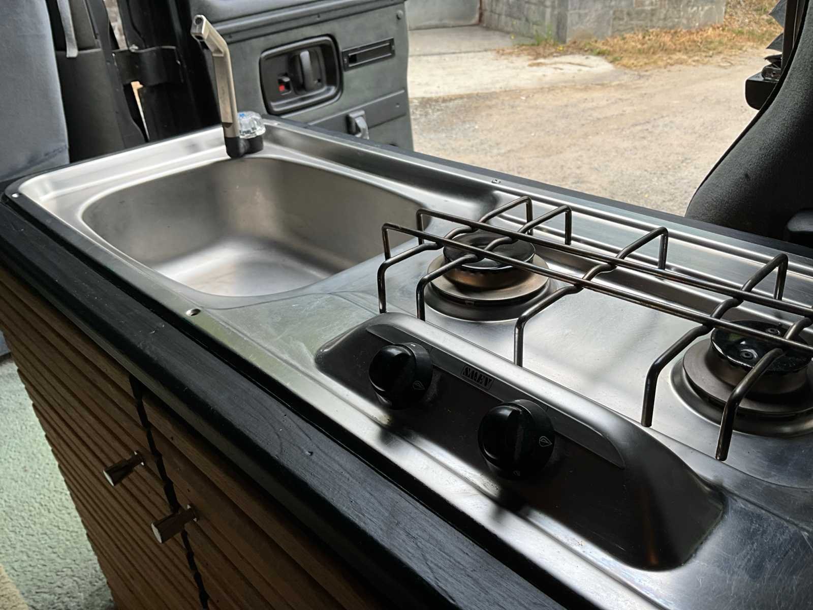 Chevrolet busje 2 stoelen vooraan + 3 stoelen achter LPG + benzine 98 Gassysteem voor de kookplaten (cilinder ontbreekt) Watersysteem (bijgewerkt om te doen) Droog toilet Achterbank kan worden neergevouwen voor een bed Uitgerust door professionals in de VS Koelkastgootsteen Plafondlamp Verwarming en airconditioning Reservewielhaak aan de achterkant Verf niet bovenaan omdat het mat is, een paar penseelstreken en verf niet erg uniform Scheur in de voorruit aan de passagierszijde (slaagt voor de keuring) De algehele staat oké, zie foto's Nee Merk: Chevrolet Type: VAN Bouwjaar: 2003 Cilinderinhoud: 5733cc Vermogen (kW): 183kW Brandstof: LPG+Benzine Afgelezen mijlenstand: 168000mi Chassisnummer: 1GBFG15R621163188 Datum eerste toelating: 15/10/2003 Aantal zitplaatsen: 2 Kleur: Mattzwart Transmissie: Automatisch Aantal deuren: 4 Aantal sleutels: 2