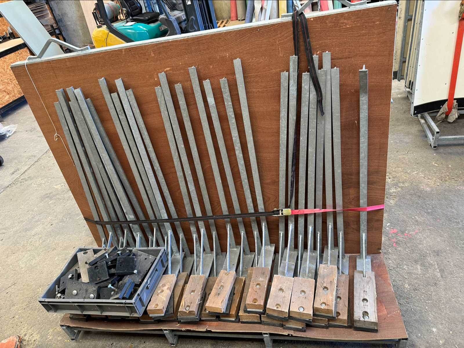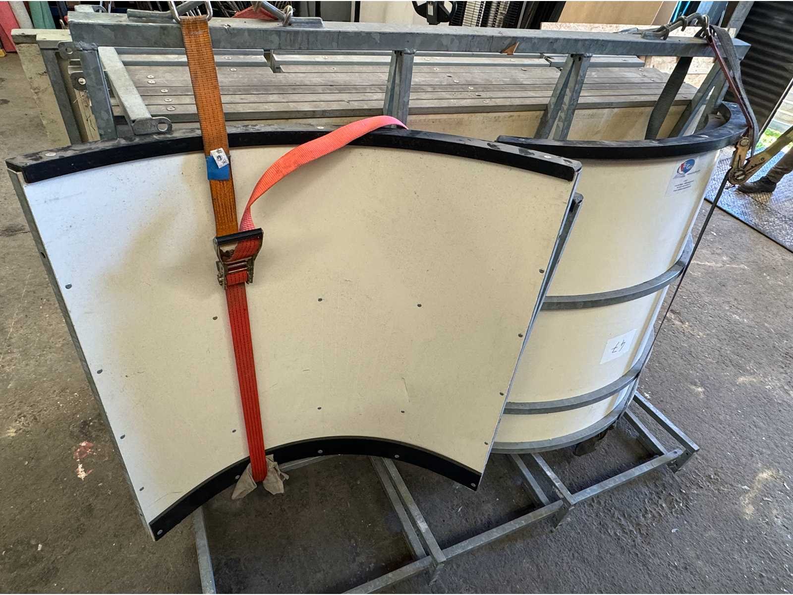 20m lineair bestaande uit 4 x 1m en 8 x 2m (met 2 deuren), plus de 4 hoeken, en 25 voeten met montagekit (bouten en schroeven) No
