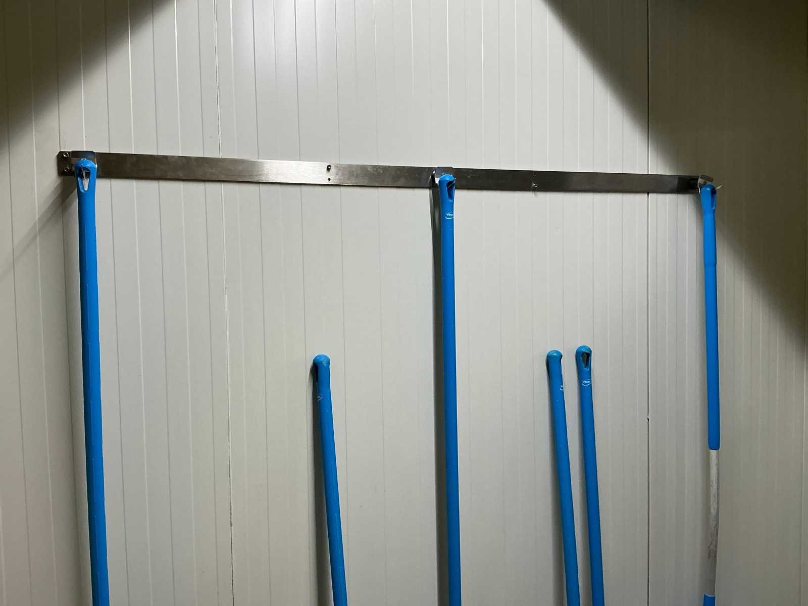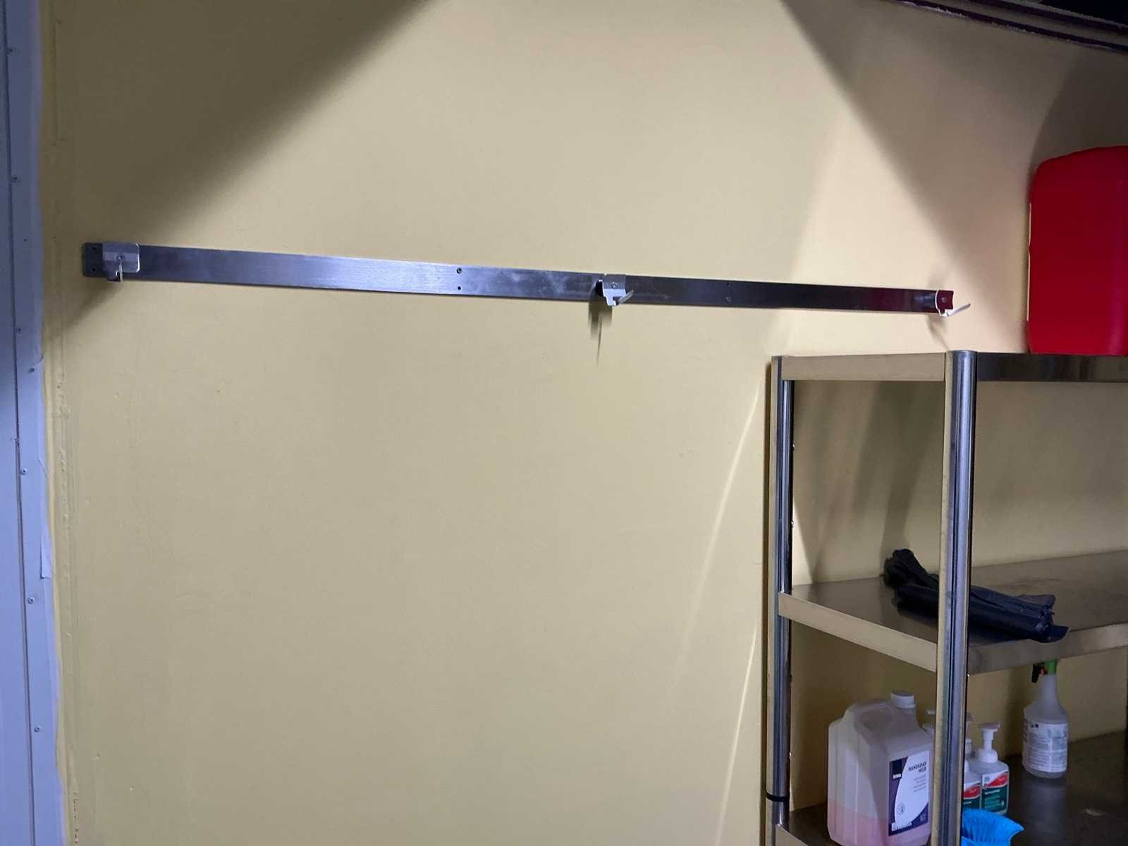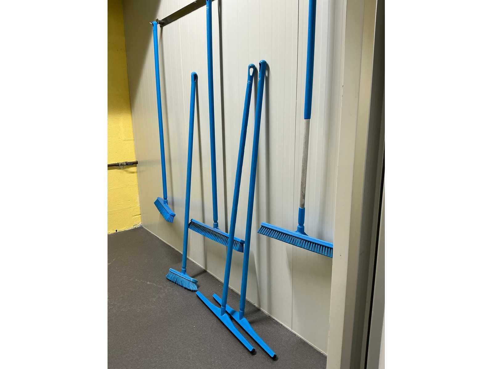 1 verrijdbaar rvs opbergrek voorzien van 4 niveau’s afmeting circa 120 x 50 x 187 cm, inhoudende enige detergenten, droogrekje LEIFHEIT, 4 diverse borstels VIKAN, 2 aftrekkers, 2 diverse wandhouders Nee