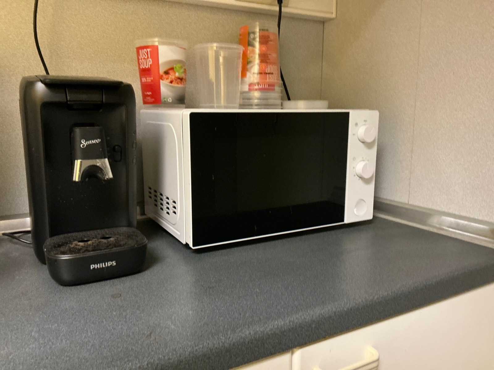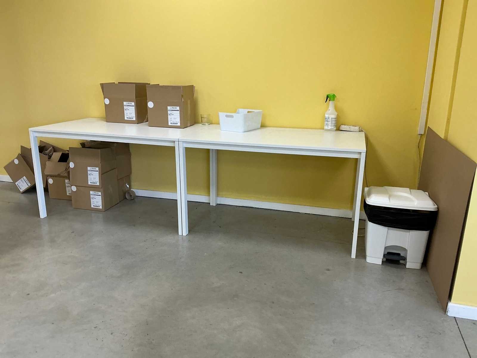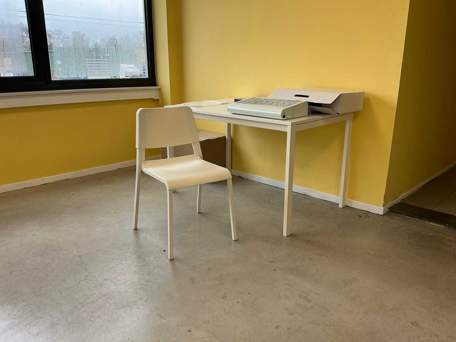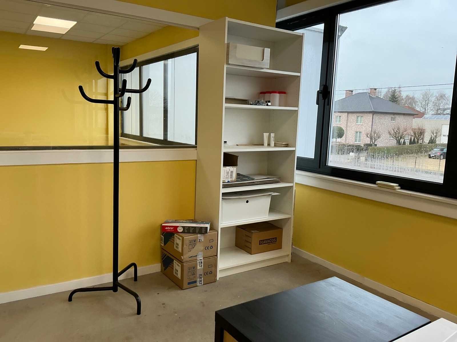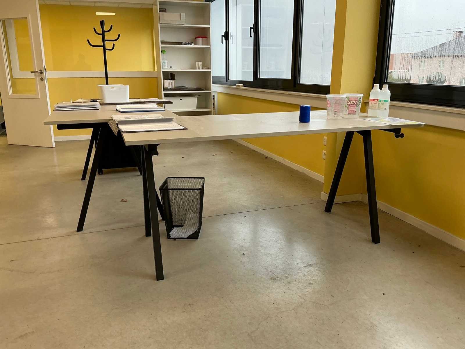 Bestaande uit 5x tafel voorzien van metalen onderstel en houten bovenblad waaronder met afmeting circa 160 x 80 x 75 cm, 2x houten wandkast voorzien van 5 leggers afmeting circa 80 x 40 x 202cm compleet met inhoud, 2 x houten verrijdbare ladeblok voorzien van 4 laden, 3 x tafel voorzien van metalen onderstel en houten bovenblad afmeting circa 125 x 75 x 75 cm, printer BROTHER HL-l8360cdw niet voorzien van stroomkabel, 2x prullenmand, kapstok, bijzetstoel, microgolfoven, koffiezetapparaat, partij diverse keukentoebehoren waaronder bestek, servies, enzovoort, zich bevindend op de eerste verdieping dient door klant via trap verwijderd te worden Nee