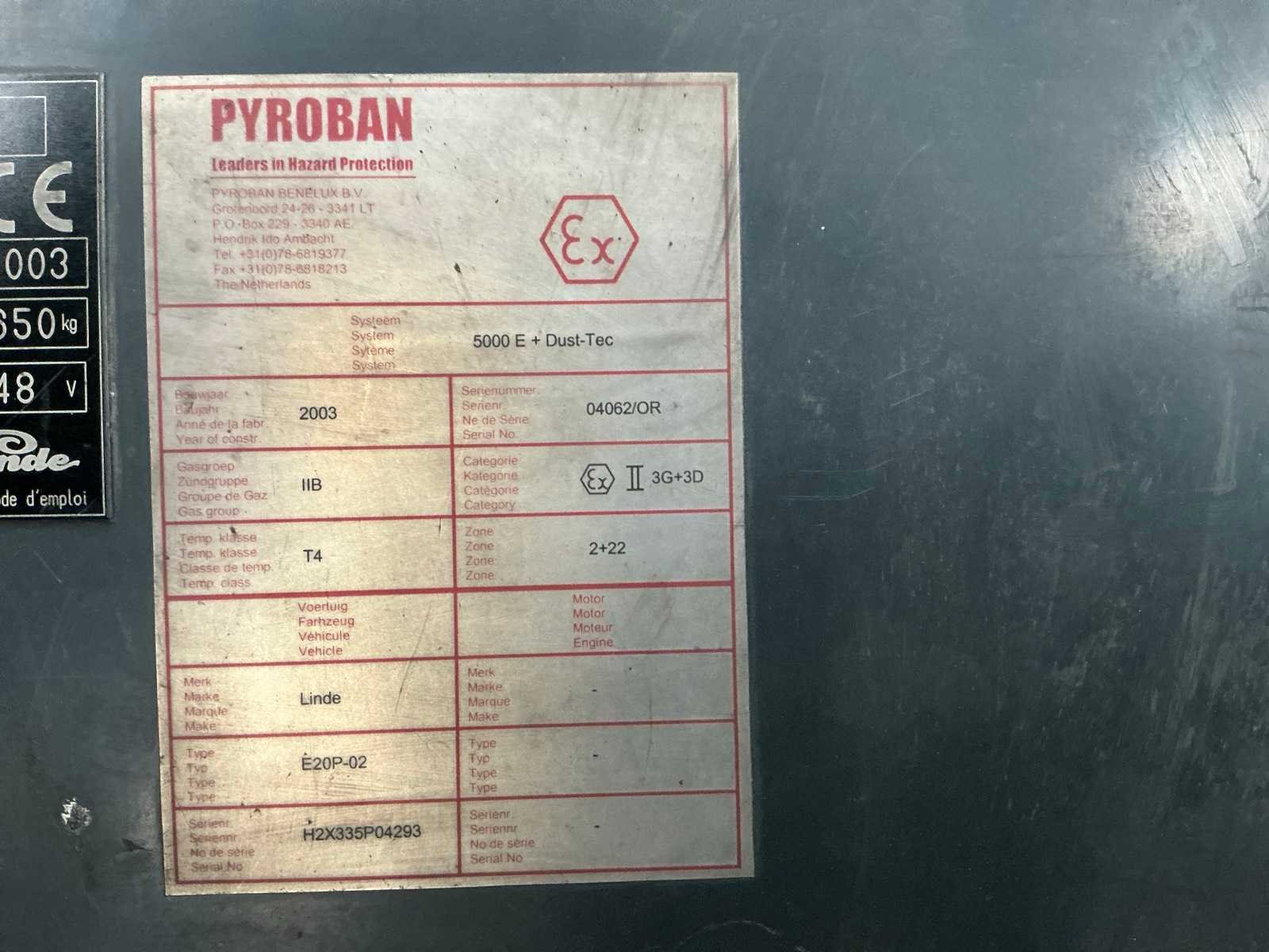 ATEX Explosie beveiligde EX2 Linde heftruck , ATEX vorken Nee Merk: Linde Type: E20P-02 Bouwjaar: 2003 Serienummer: H2X335P04293 Brandstof: Elektrisch Mast: Triple Soort band: Volrubber banden Aantal wielen: 4 Afgelezen urenstand: 7040 Side-shift: true Hydraulisch verstelbare lepels: true Triple mast: true Eigen gewicht: 3750kg Hefvermogen: 2000kg Lepellengte: 1100mm Min. hefhoogte: 0mm Max. hefhoogte: 5470mm Hefhoogte: 5470mm Vol rubber banden: true Totale afmeting L: 2100mm Totale afmeting Breedte: 1150mm Totale afmeting Hoogte: 2450mm