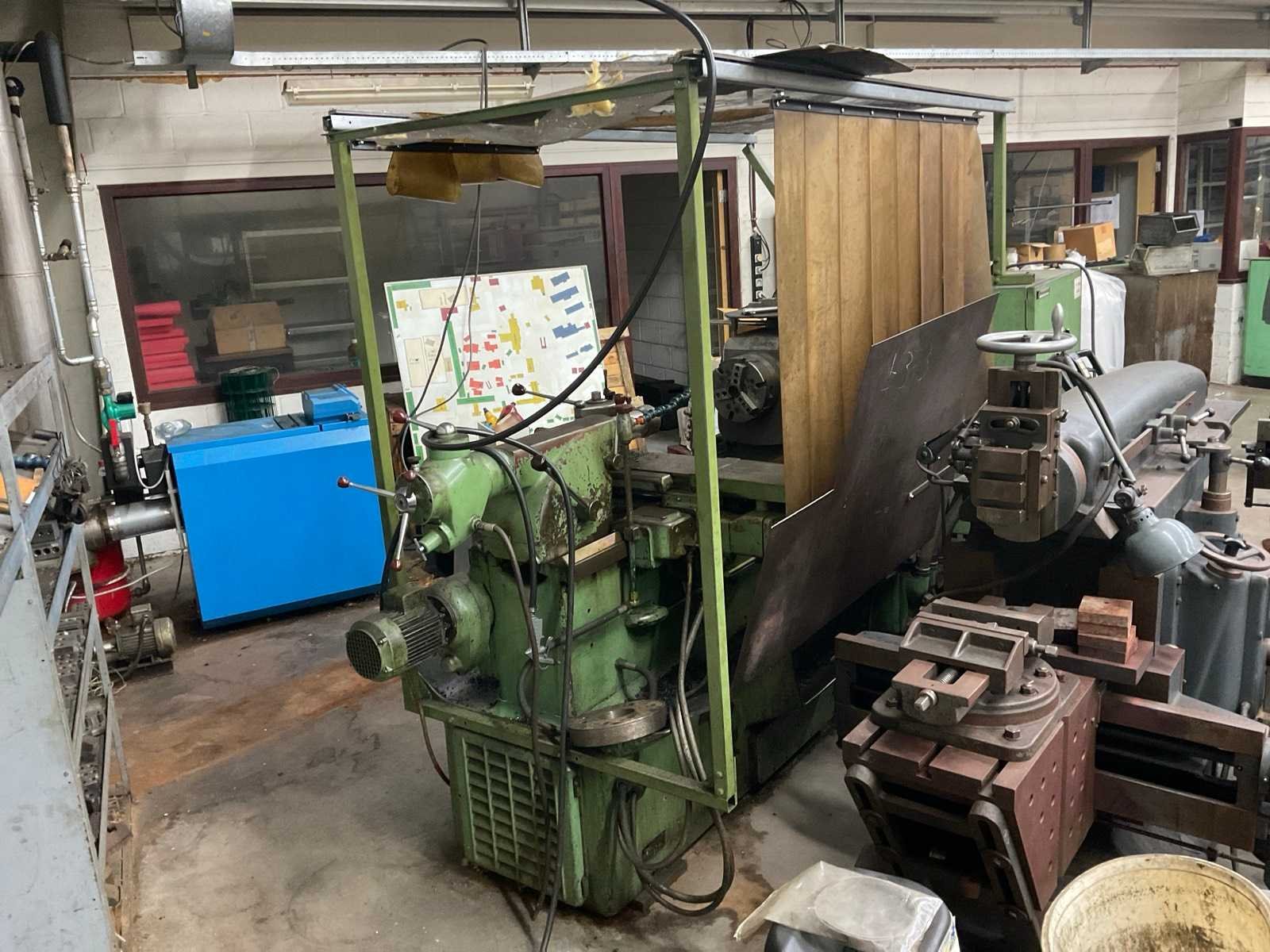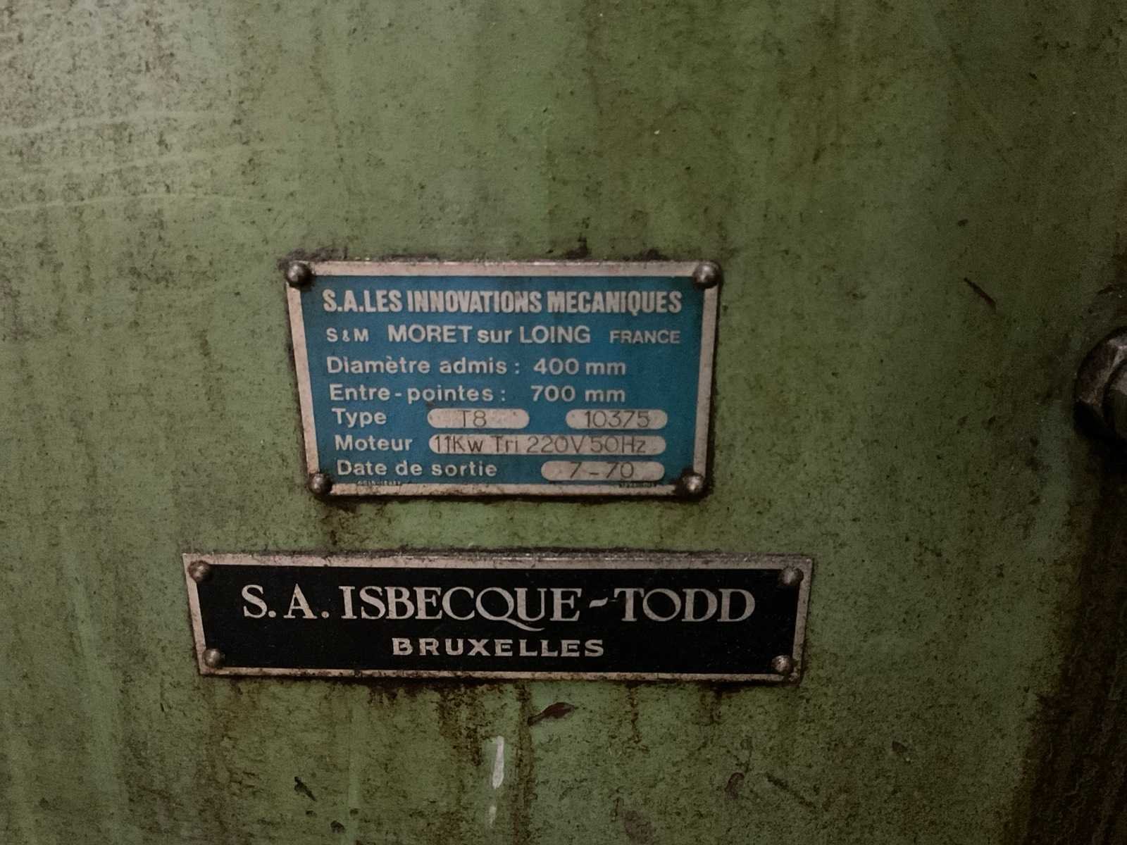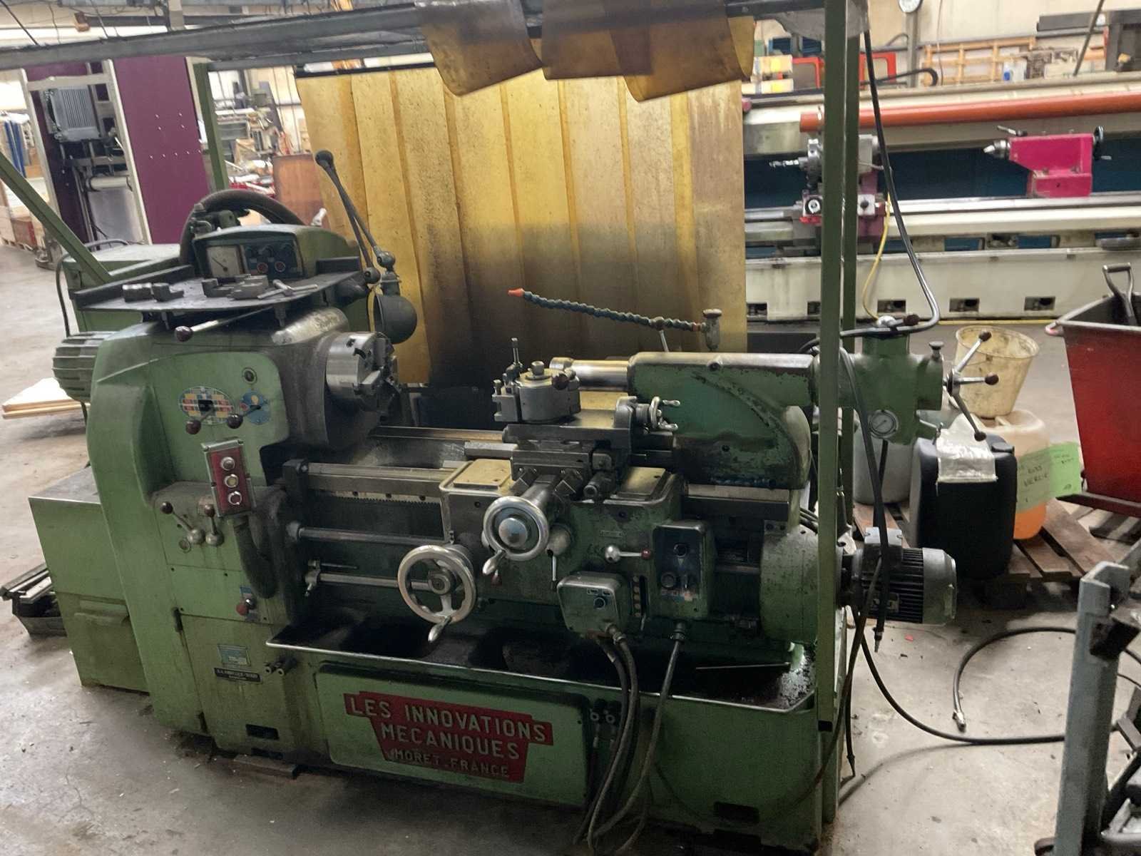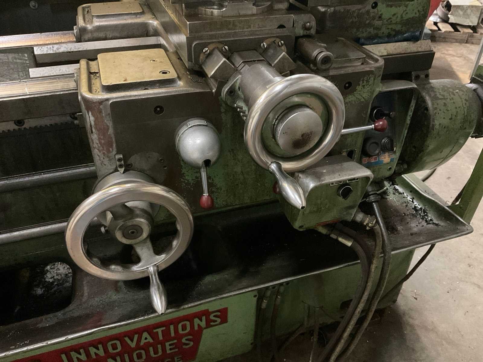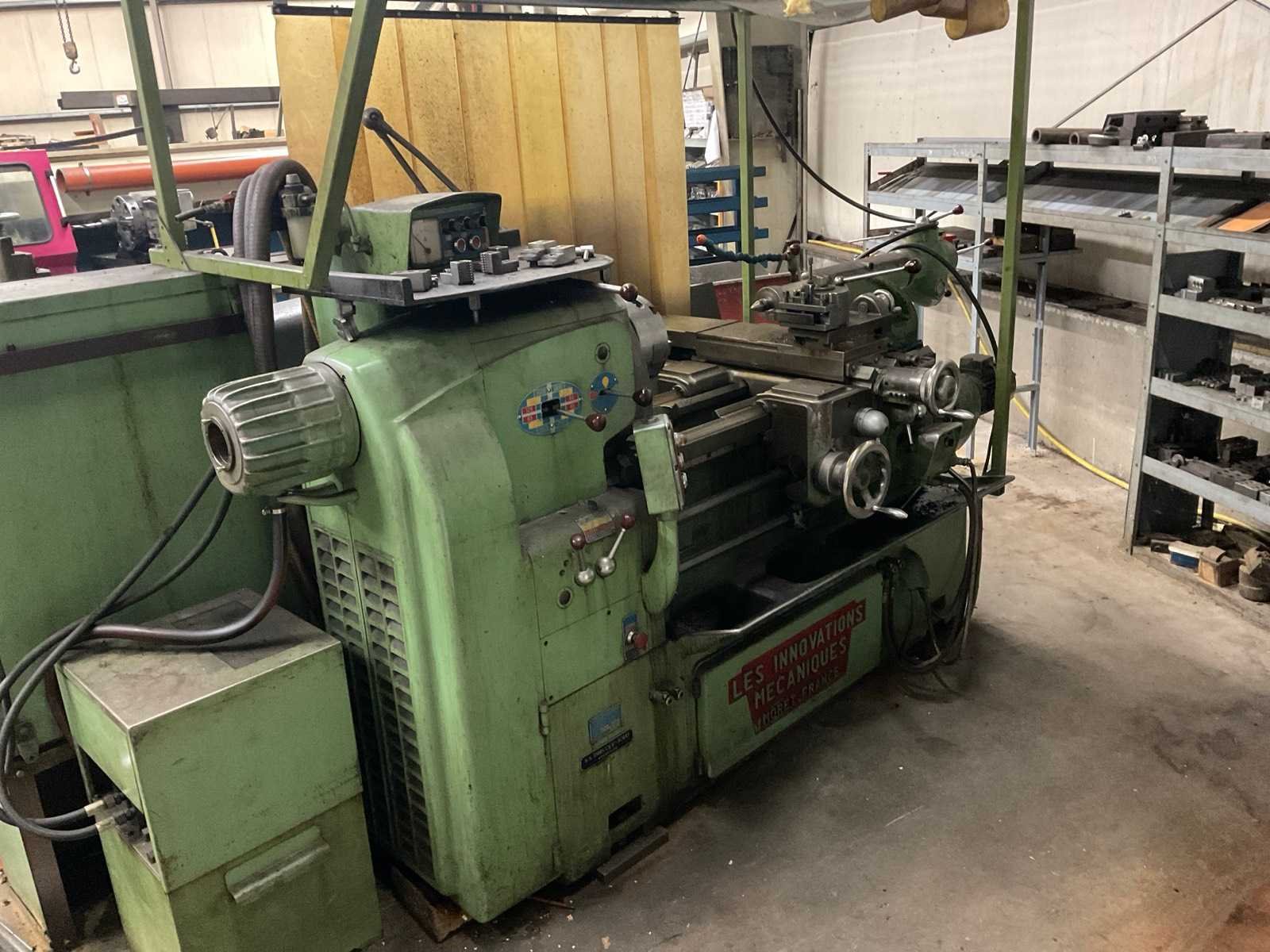 Werkende staat Nee Merk: Les innovations méchaniques Type: T8 Bouwjaar: 1970 Serienummer: 10375 Draailengte: 700mm Draai: 400mm Holle spil Ø: 36mm Aantal snelheden: 12 Snelheid van n =: 45rpm Snelheid tot n =: 2000rpm Koelmiddelpomp: true Aansluiting: 380V Machinegewicht: 2500kg Afmeting l: 2000mm Afmeting b: 975mm Afmeting h: 1450mm