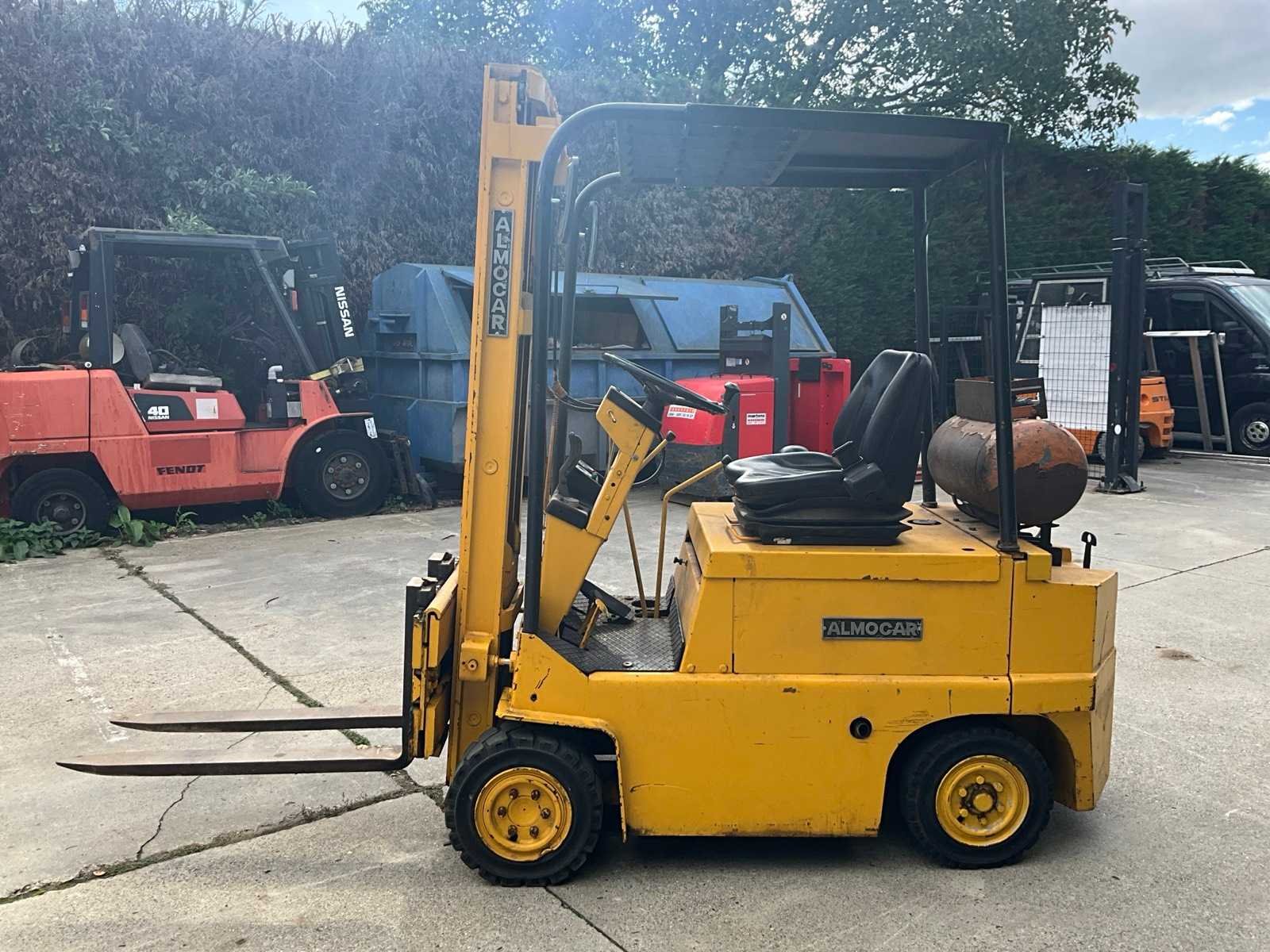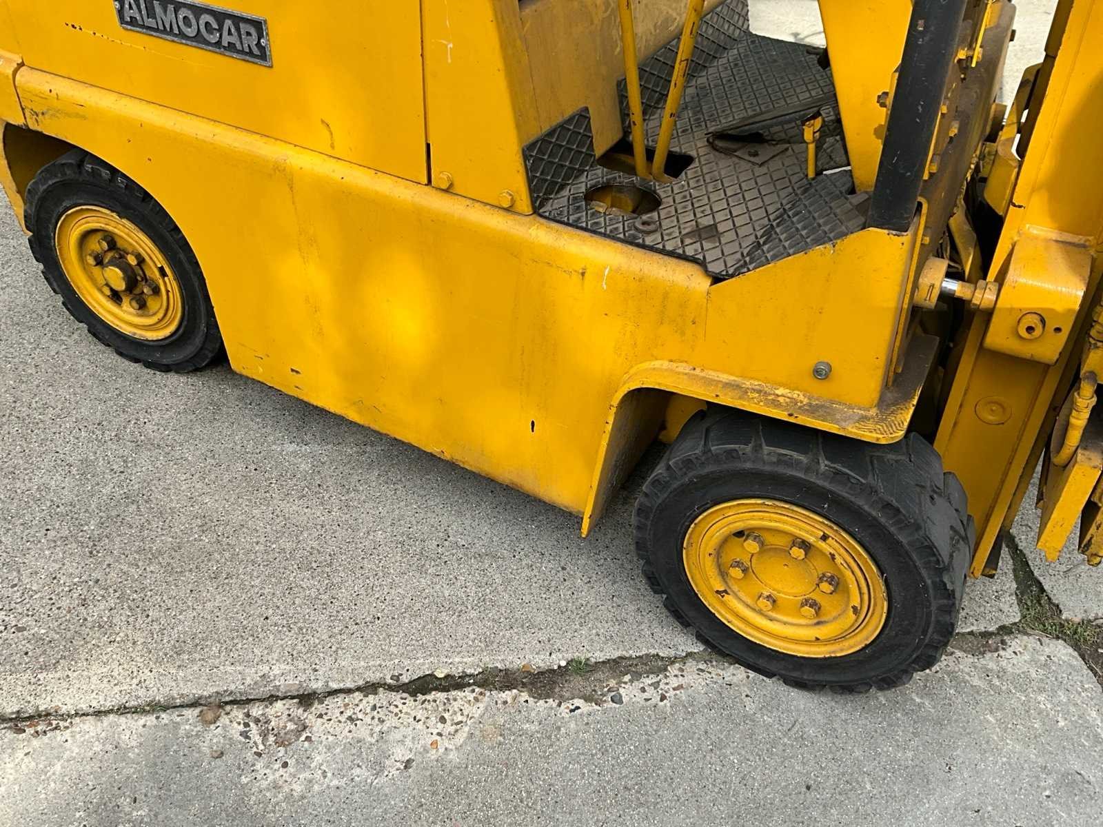 Deze Almocar LPG-heftruck is een degelijke heftruck voor gebruik in magazijn, werkplaats of buitenterrein. De machine draait op LPG, wat zorgt voor relatief lage brandstofkosten en minder uitstoot dan diesel. Met slechts 4.072 bedrijfsuren is deze heftruck beperkt gebruikt voor zijn leeftijd. Uitgerust met een robuuste hefmast en vorken, klaar voor dagelijks hef- en transportwerk. Nee Merk: Almocar Brandstof: LPG Aantal wielen: 4 Afgelezen urenstand: 4072 Side-shift: true Duplex mast: true Eigen gewicht: 3000kg Hefvermogen: 1800kg Max. hefhoogte: 3000mm Minimale doorrijhoogte: 2200mm LPG: true