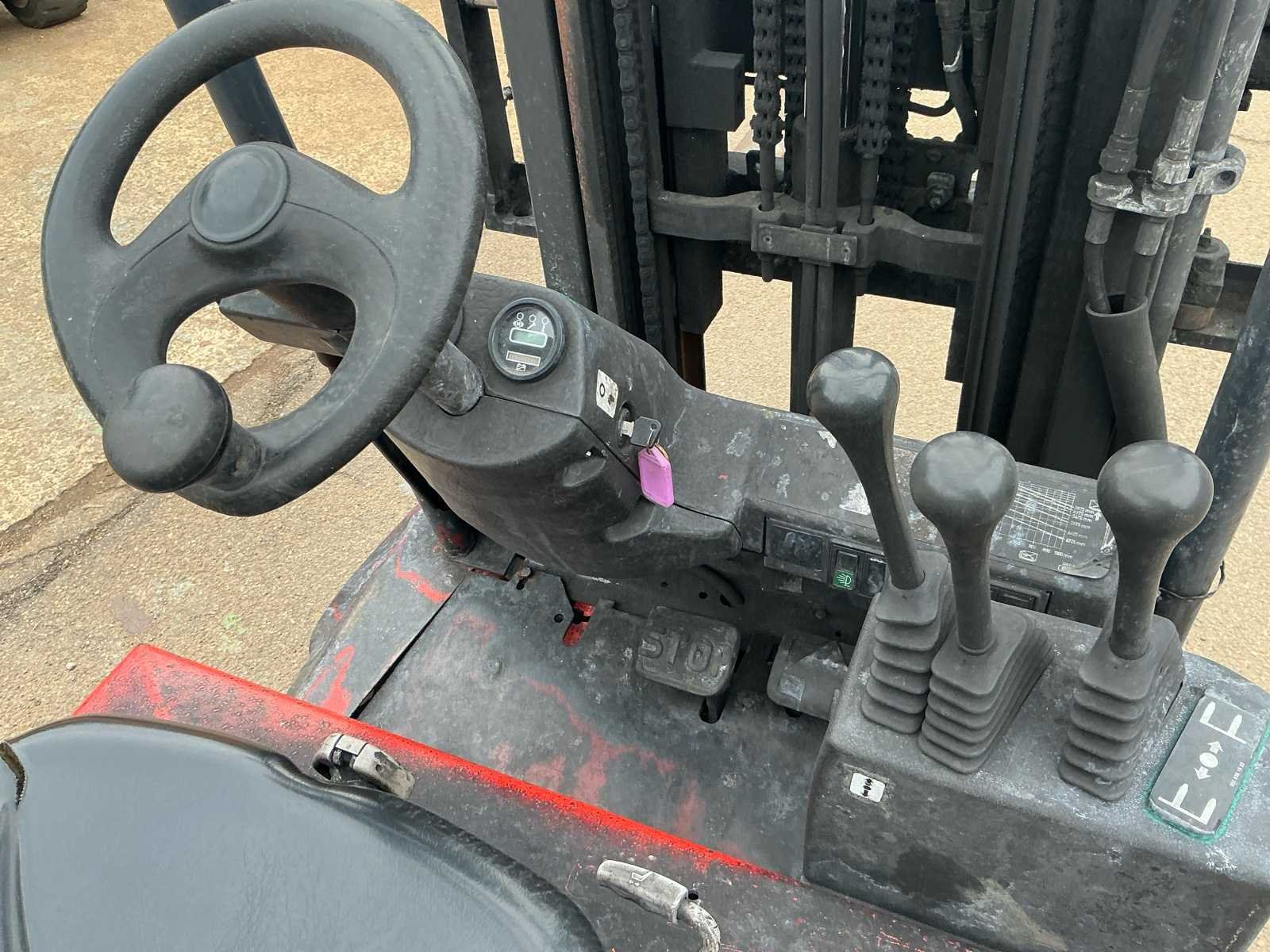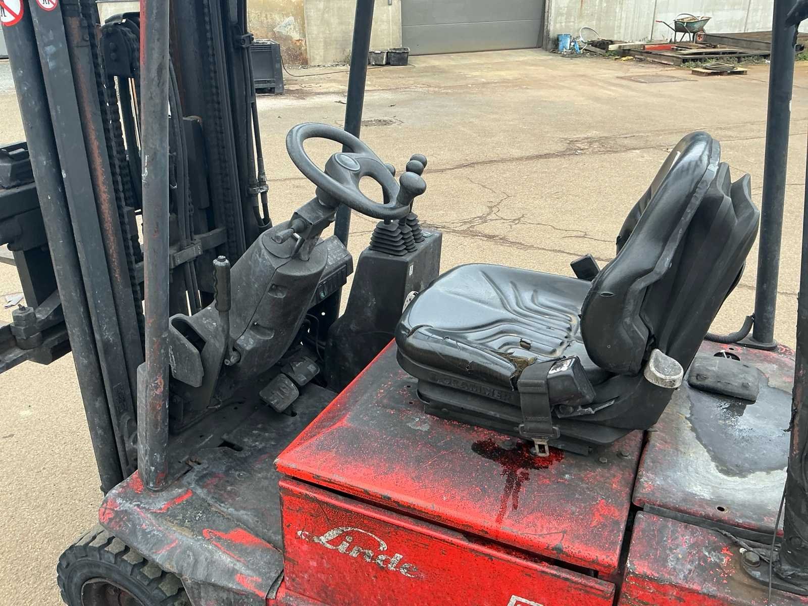 Dit kavel bestaande uit: Linde E15 elektrische heftruck bouwjaar 2006. Betrouwbare en wendbare 1.500 kg elektrische heftruck van Linde, ideaal voor magazijn- en buitenterreinwerk. Uitgerust met dubbele vorken, stevige massieve banden en een compact chassis voor optimale manoeuvreerbaarheid. Machine start en rijdt, visuele gebruikssporen passend bij leeftijd, maar constructief degelijk en volledig functioneel. Batterij verliest zijn lading, komt met bijgeleverde lader. (Niet op foto). No Merk: Linde Type: E15 Serienummer: H2X324500972 Mast: Triple mast Soort band: Volle band Aantal wielen: 3 Afgelezen urenstand: 3032 Accu lader: true Side-shift: true Triple mast: true Eigen gewicht: 2615kg Hefvermogen: 1500kg Max. hefhoogte: 4400mm Vol rubber banden: true Minimale doorrijhoogte: 2000mm Leveringsvoorwaarden: Geladen op vrachtwagen
