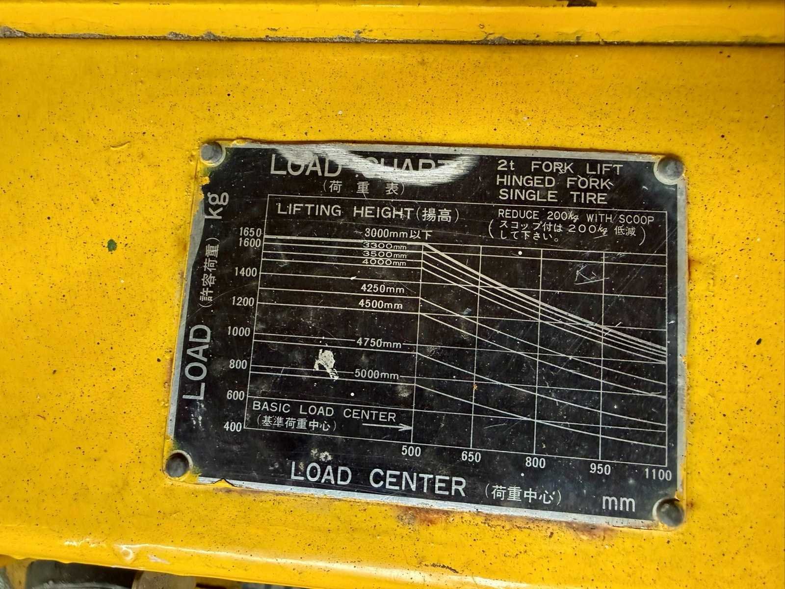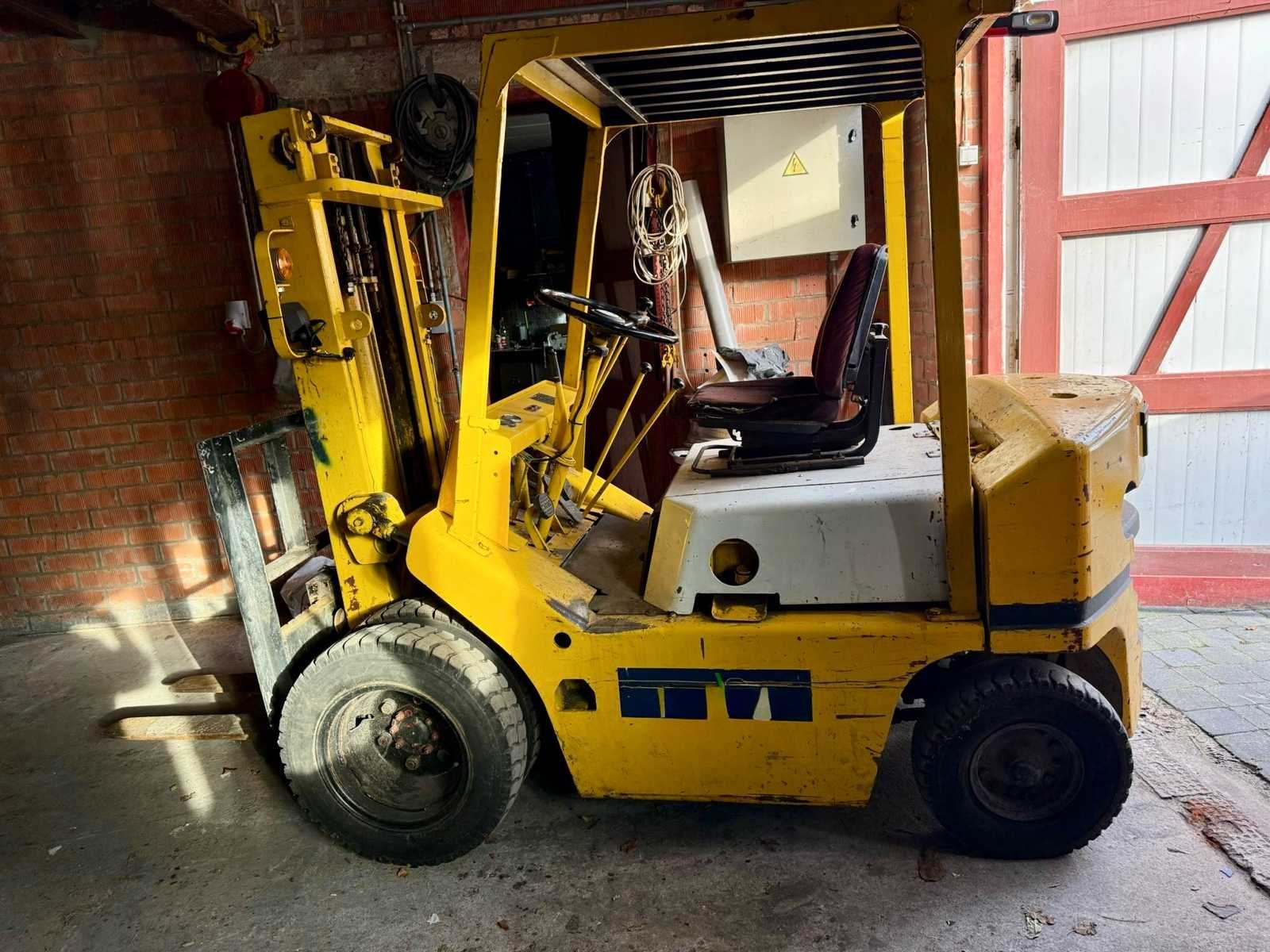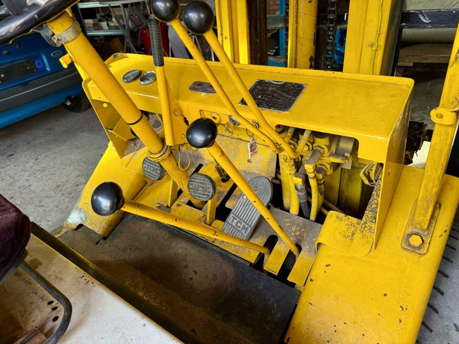 No Merk: TCM Brandstof: Diesel Mast: Duplex Soort band: Volrubber Aantal wielen: 4 Afgelezen urenstand: 5978 Duplex mast: true Hefvermogen: 1650kg Vol rubber banden: true Diesel: true