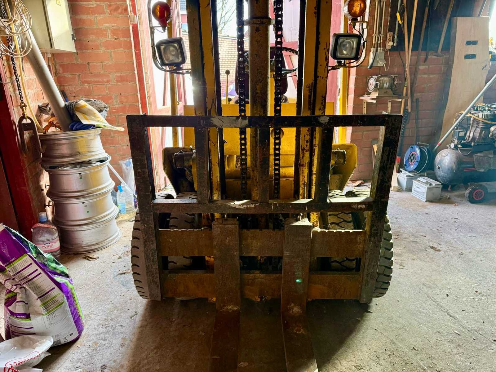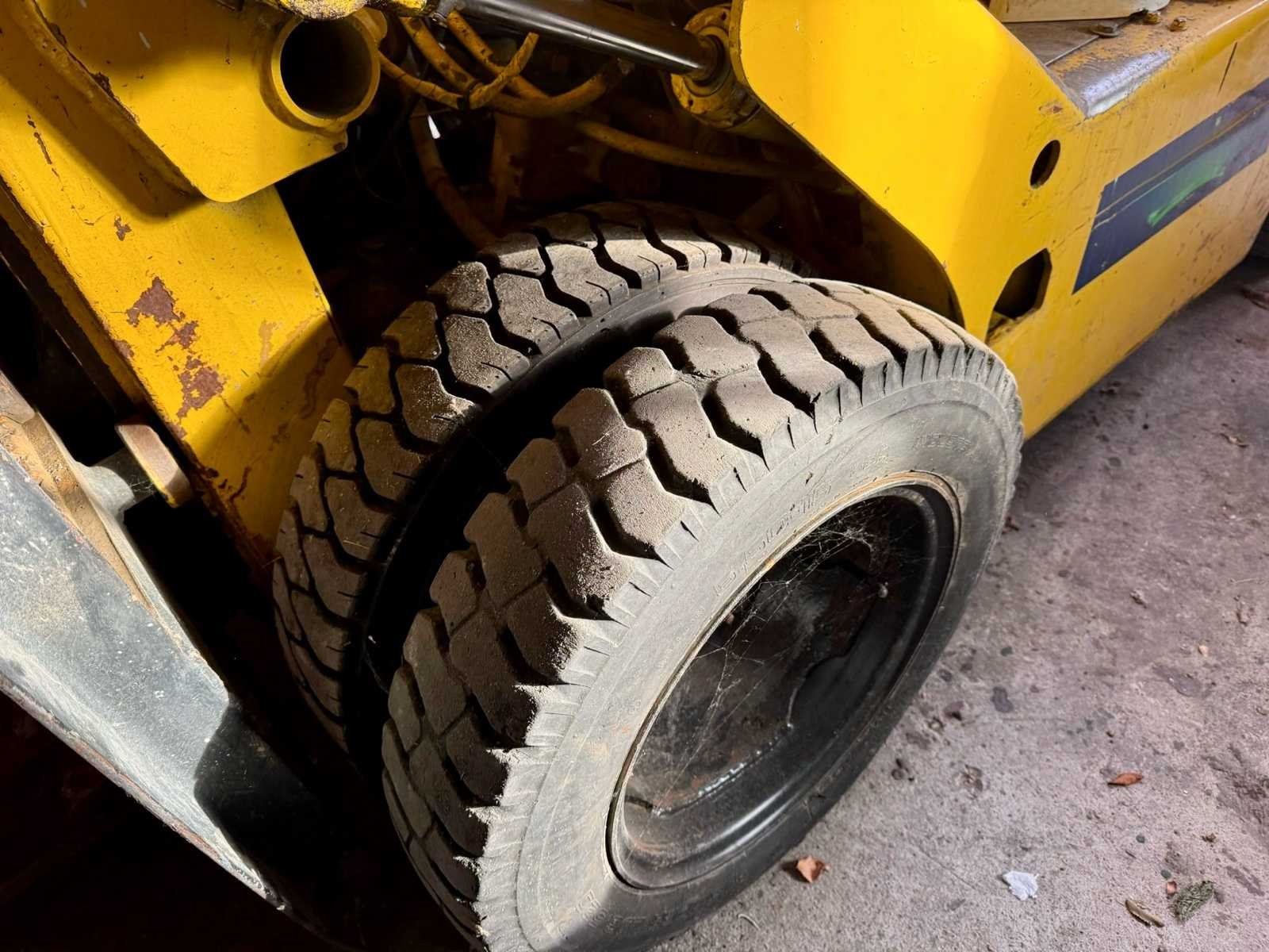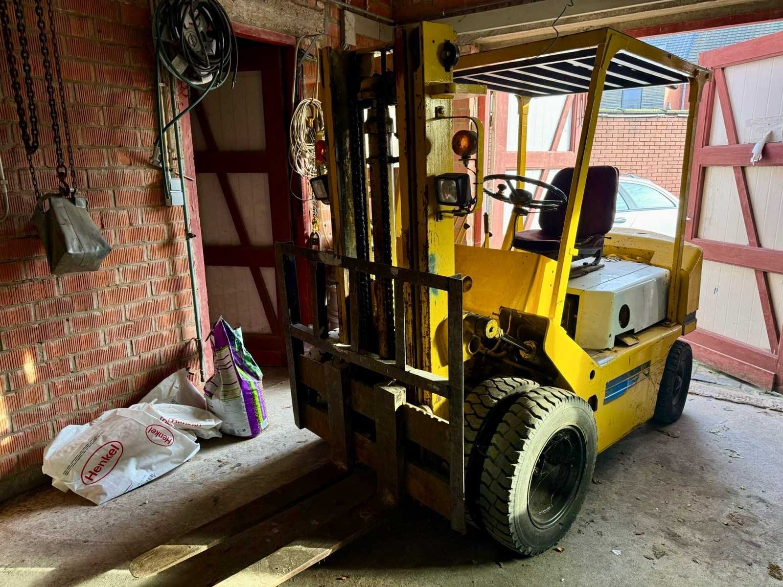No Merk: TCM Brandstof: Diesel Mast: Duplex Soort band: Volrubber Aantal wielen: 4 Afgelezen urenstand: 5978 Duplex mast: true Hefvermogen: 1650kg Vol rubber banden: true Diesel: true