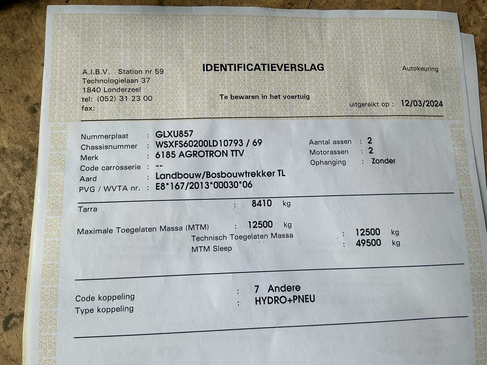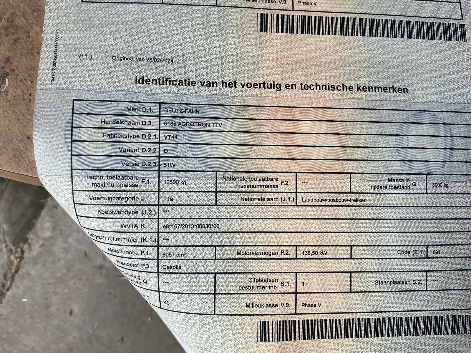 No Merk: Deutz-Fahr Type: Agroton TTV 6185 Bouwjaar: 2023 Kenteken: G-LXU-857 Afgelezen urenstand: 221 Cabine: true Luchtgeveerde stoel: true Kentekenpapieren compleet?: true Chassisnummer: WSXFS60200LD10793 Datum eerste toelating: 26/02/2024 Nationaliteit documenten: Belgische