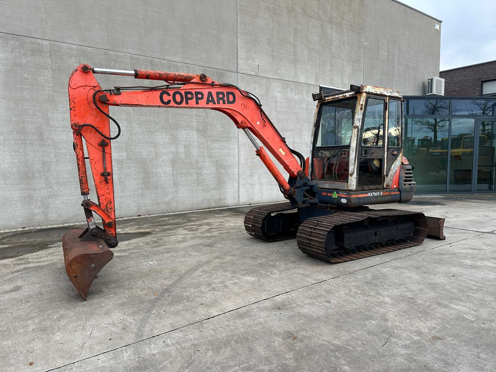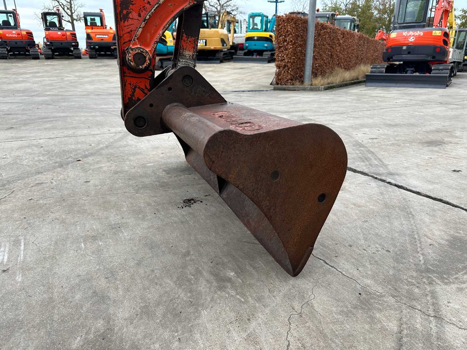 Duwblad Hamerleidingen Geen documenten Nee Merk: Kubota Type: KX161-2 Serienummer: 50525 Merk motor: Kubota Motorvermogen (kW): 30.2kW Aantal cilinders: 4 Brandstof: Diesel Graafbak afm. b: 1450mm Rups breedte: 450mm Afgelezen urenstand: 5450 Eigen gewicht: 4920kg Totale afmeting L: 5600mm Totale afmeting Breedte: 1840mm Totale afmeting Hoogte: 2540mm GS Code: 8429521200