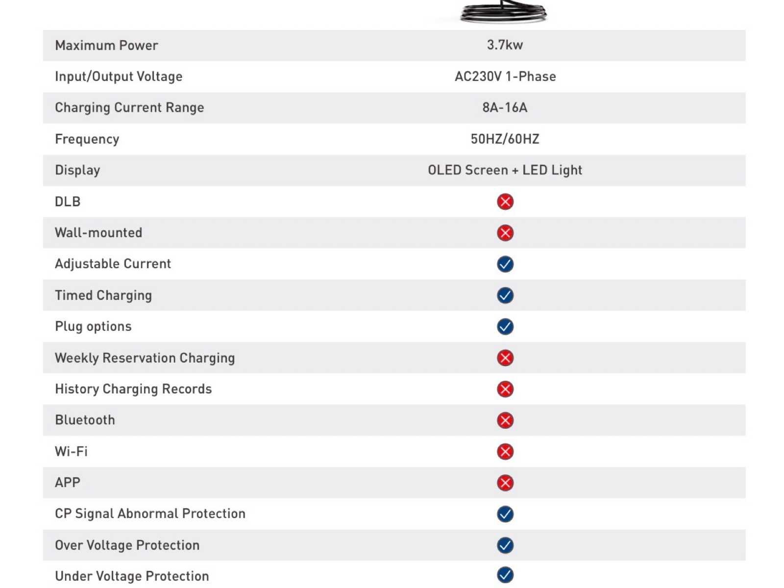 Max. Power 3.7 KW Input/output AC230V 1-Phase Charging current range 8A-16A Time charging 2 jaar garantie No Merk: Beny Model: BCPP-A1-16 Product type: AC EV lader Maximale laadsnelheid: 4kW Kleur: Zwart Hoogte: 43 Breedte: 35 Lengte: 33 Materiaal: Plastic