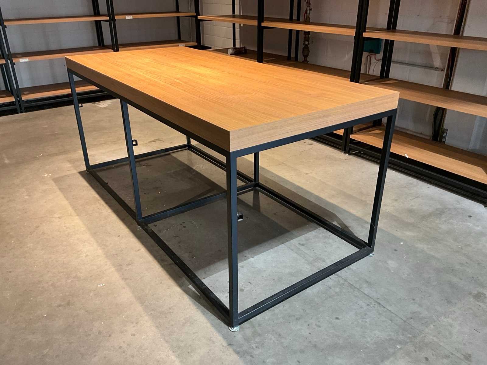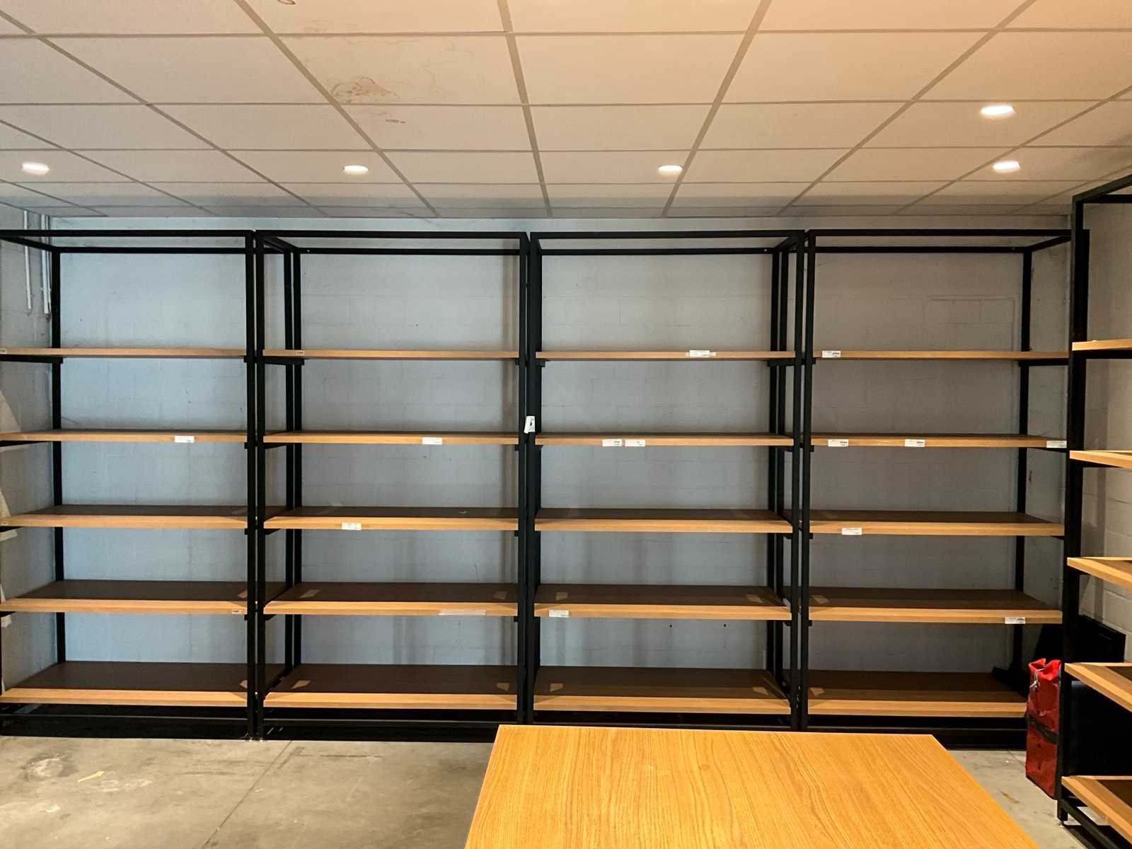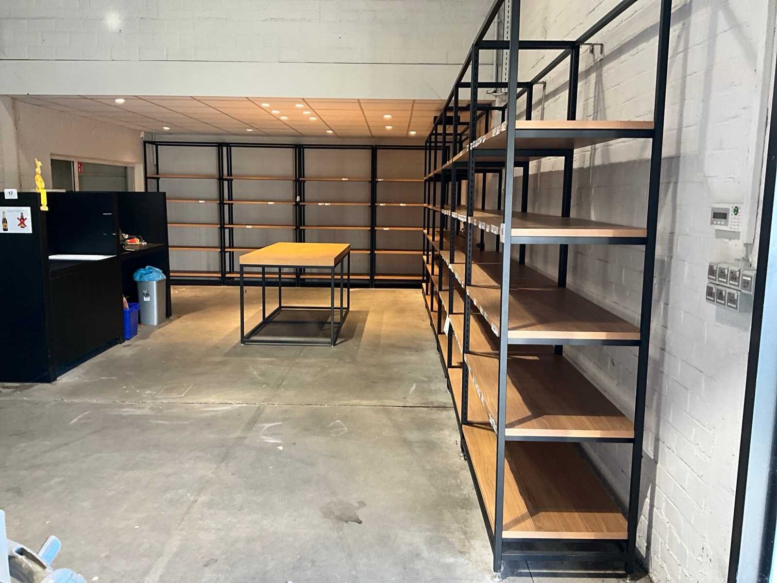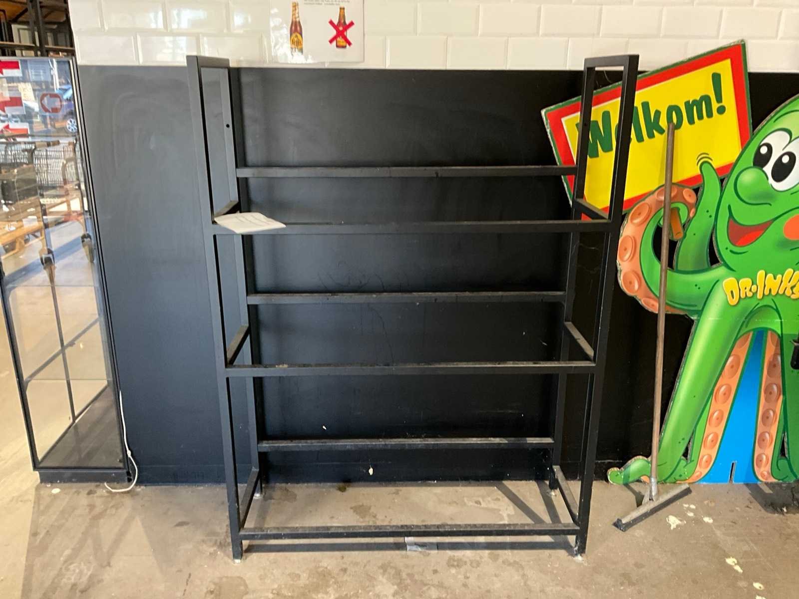 Voorzien van 5 houten leggers, compleet met metalen werktafel voorzien van houten blad, afmeting circa. 220x100x96cm, leeggoedrek voorzien van 3 niveau’s met afmeting: 120x40x164cm en metalen statafel voorzien van houten bovenblad, afmeting: 80x80x110cm, frame van rek is gelast Nee Lengte: 130cm Breedte: 60cm Hoogte: 250cm