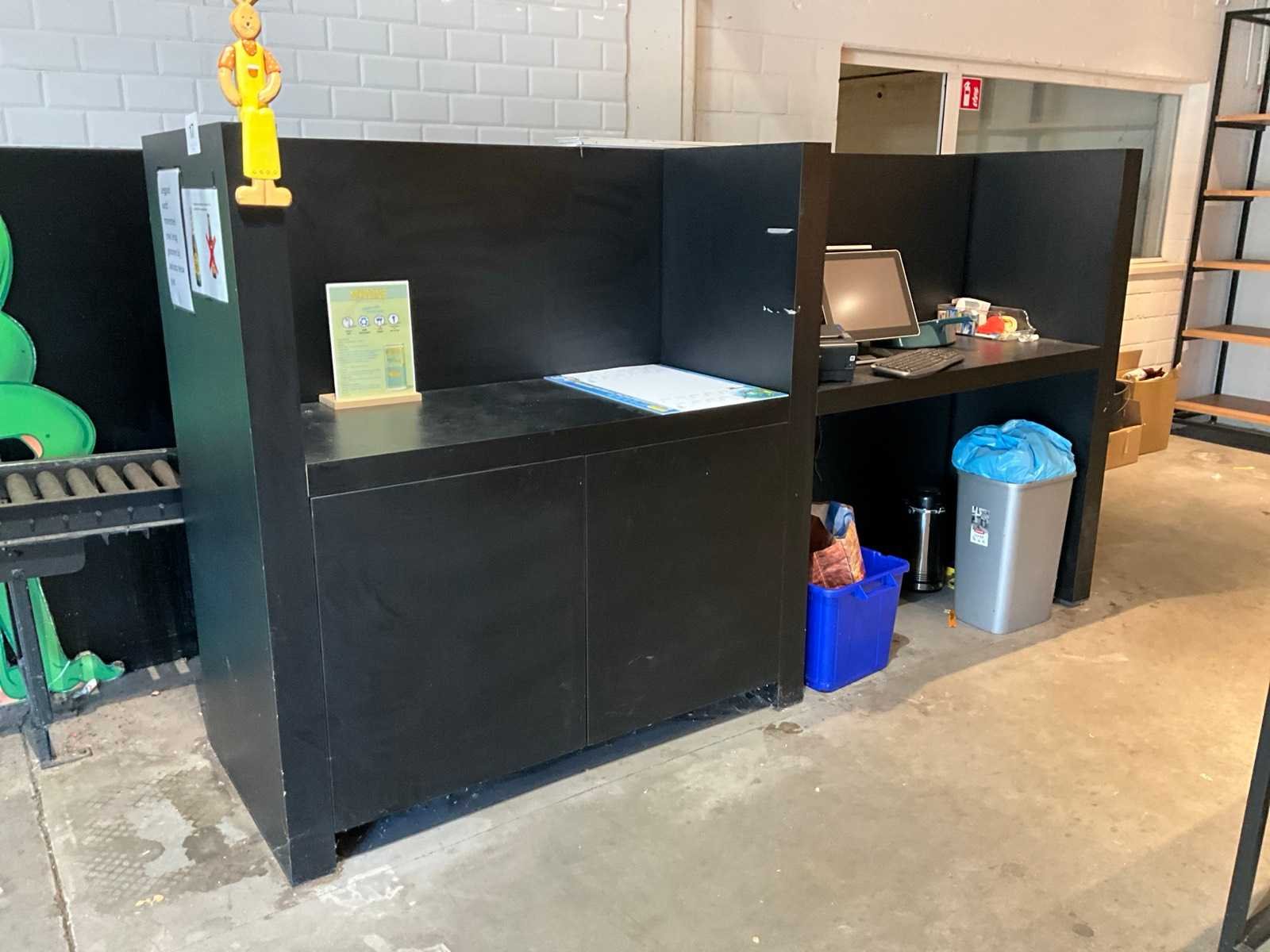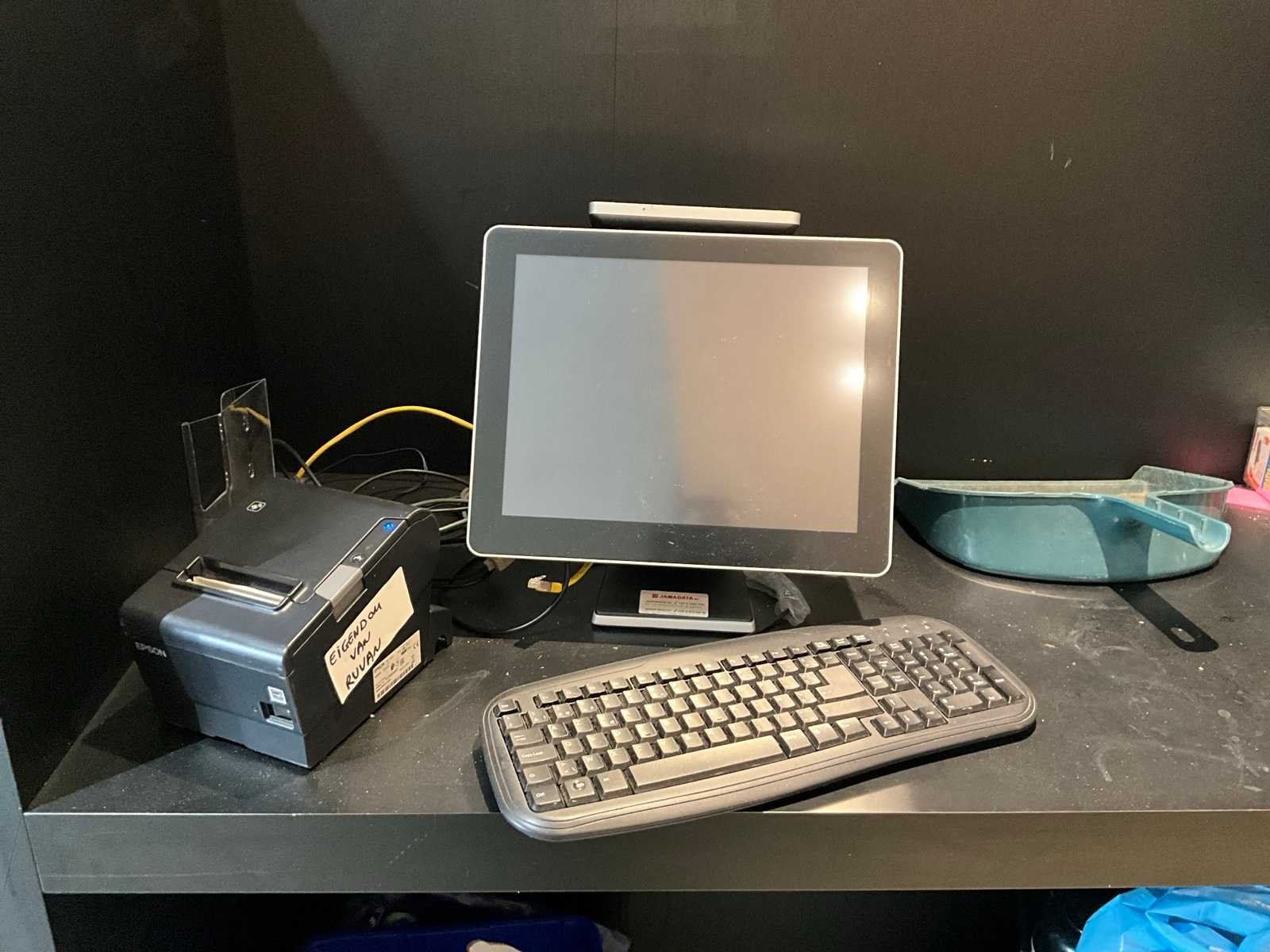 Voorzien van ticketprinter Epson TM-T88VI en toetsenbord, compleet met houten meubel voorzien van 2 deuren, afmeting totaal: 295x145x162cm Nee Touchscreen: true Digitaal: true