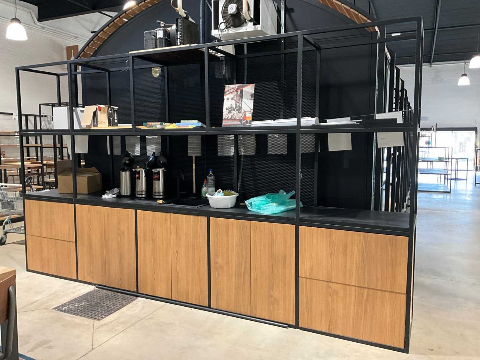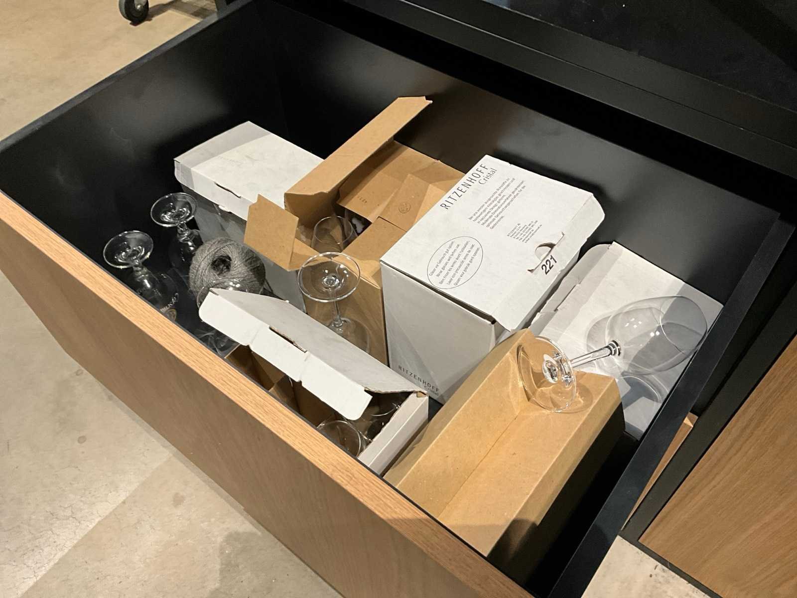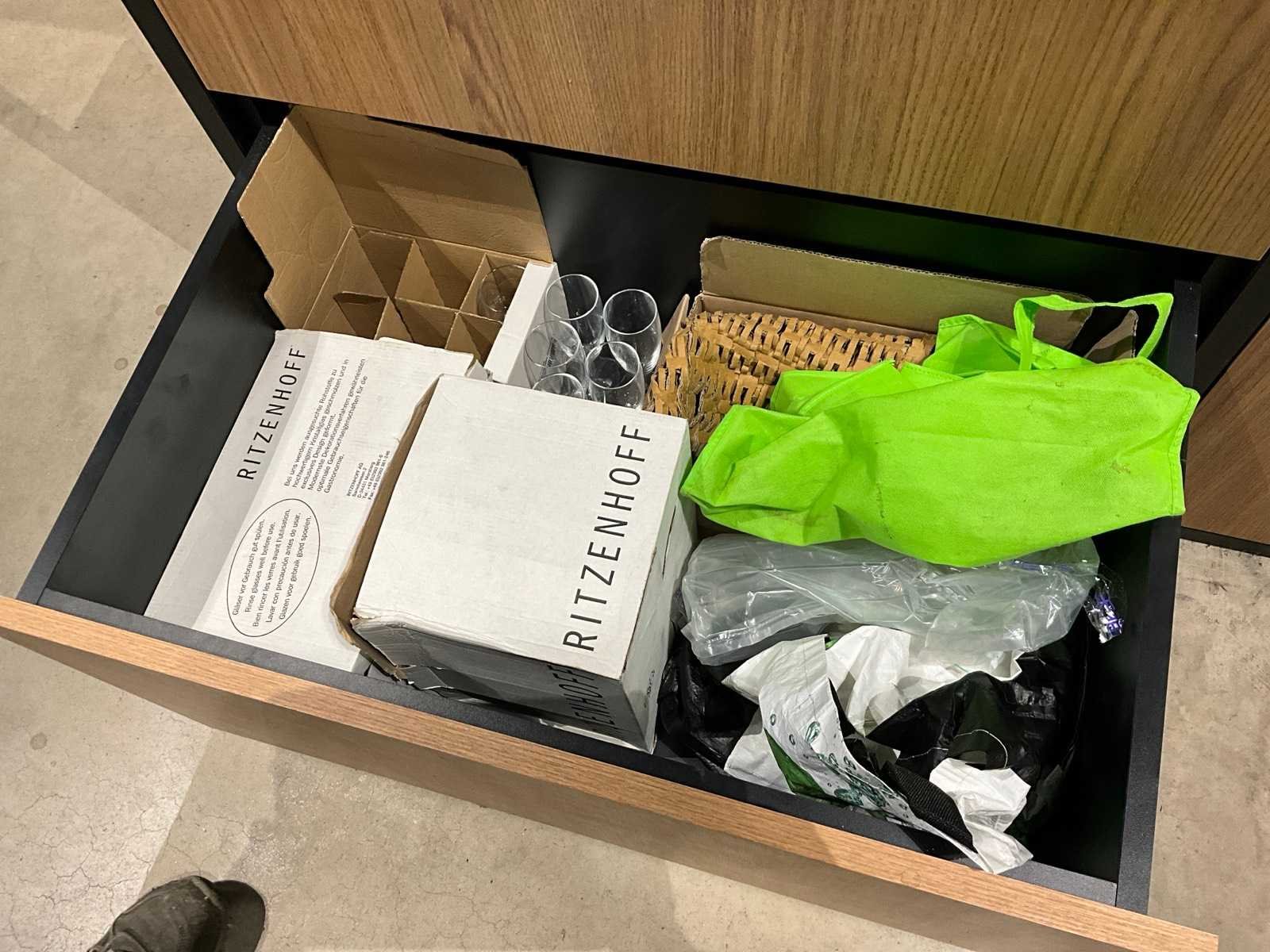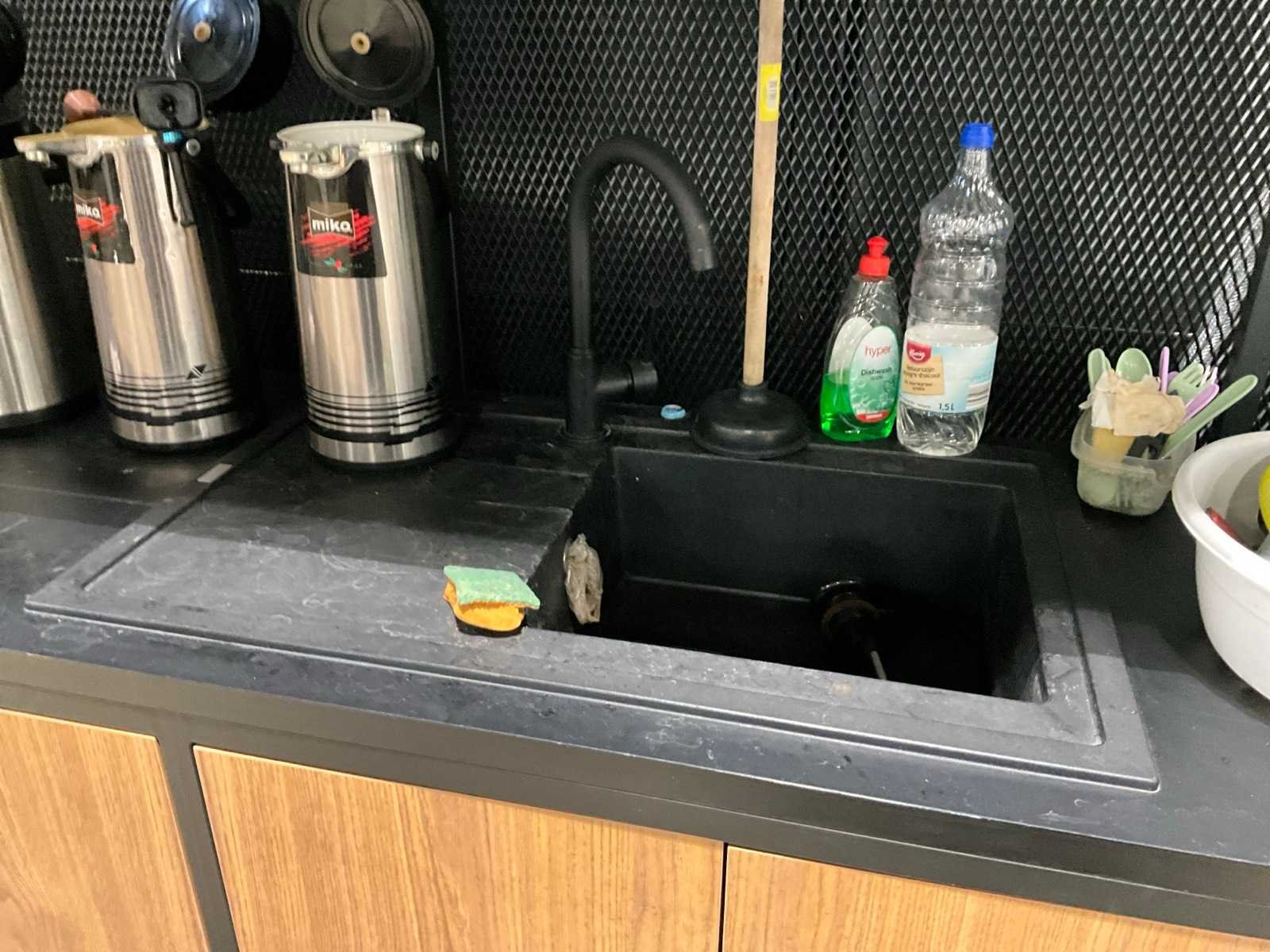 Voorzien van 4 lades en 6 deuren, ingebouwde spoelbak en keukenmengkraan, compleet met inhoud zijnde 3x koffiethermoz MIKO, diverse glazen waaronder wijnglazen, .. , niet demontabel Nee Totale afmeting L: 4330cm Totale afmeting Breedte: 600cm Totale afmeting Hoogte: 245cm Metaal: true