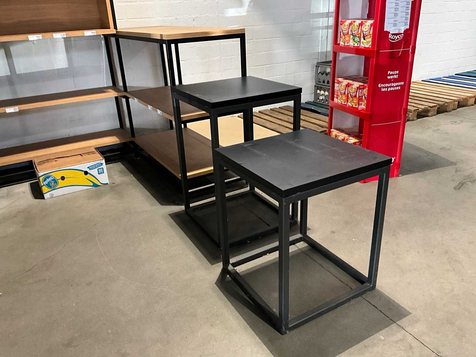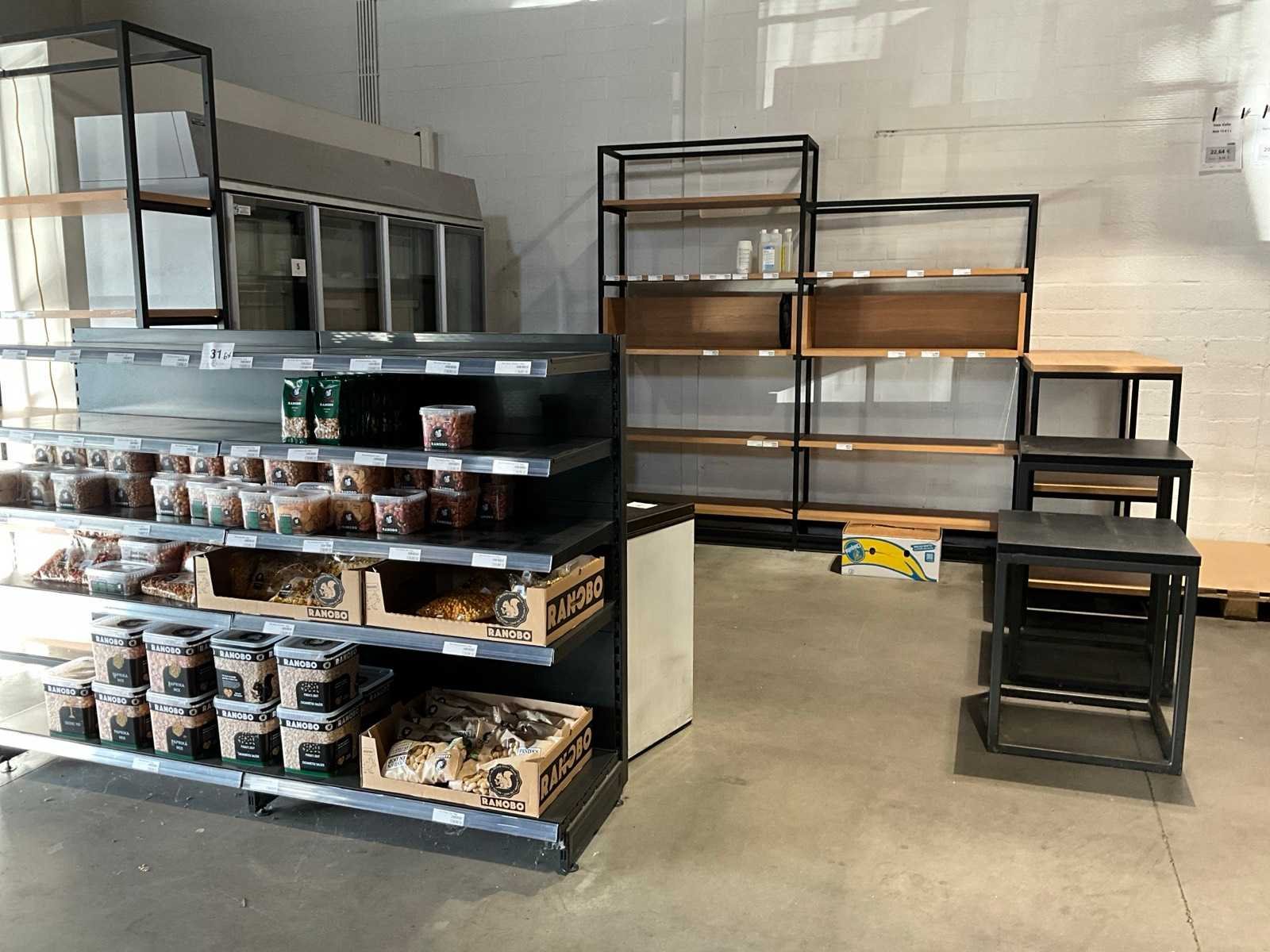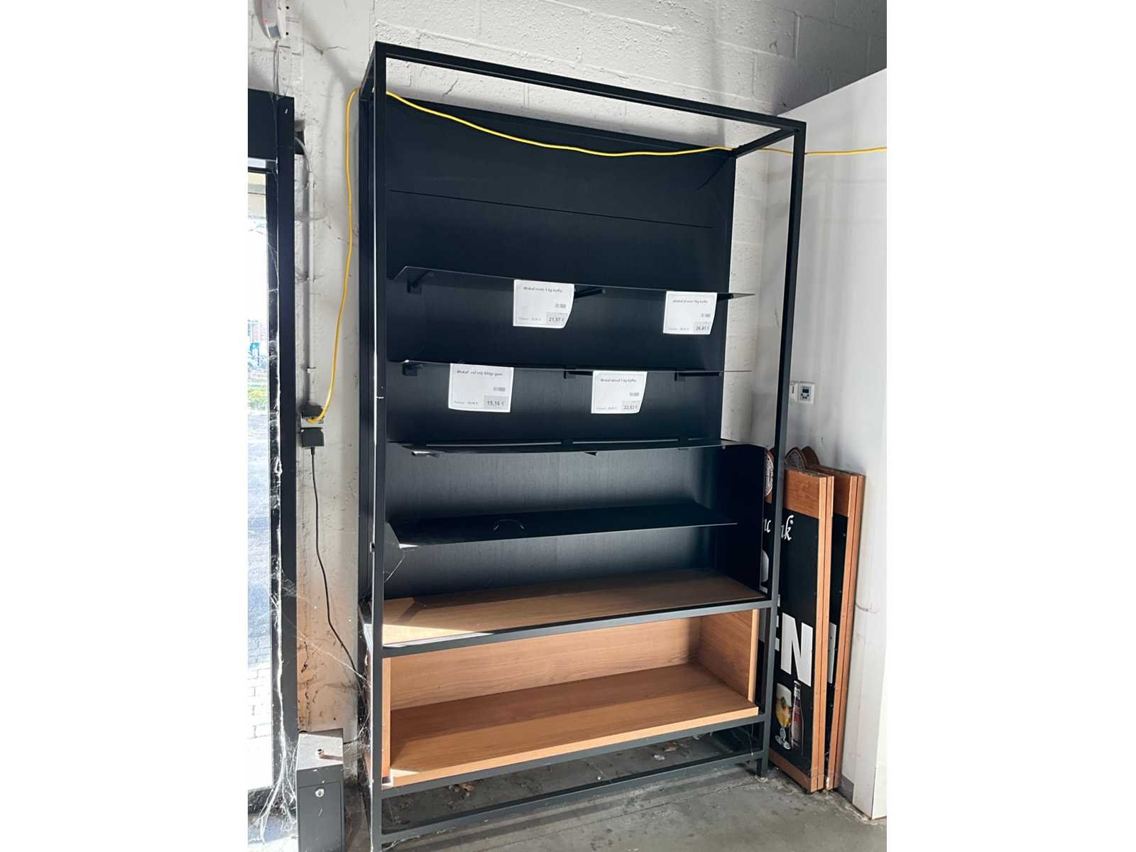 Waaronder gondelarek voorzien van 2x 5 leggers, 2x bijzettafel met afmeting 60x60cm, met hoogte 60 en 93cm, metalen hoekmeubel met afmeting: 315x172x250cm, 2 diverse metalen rekken met afmeting: 130x45x250cm, zonder inhoud Nee