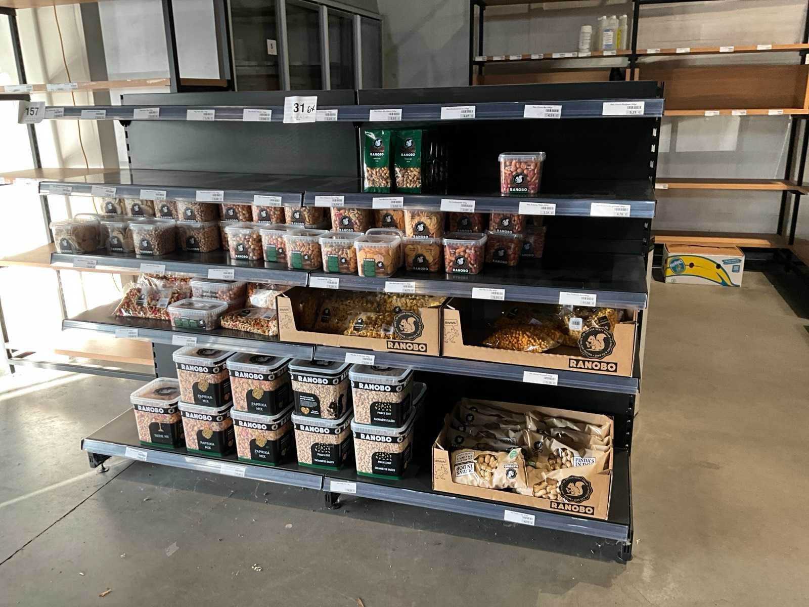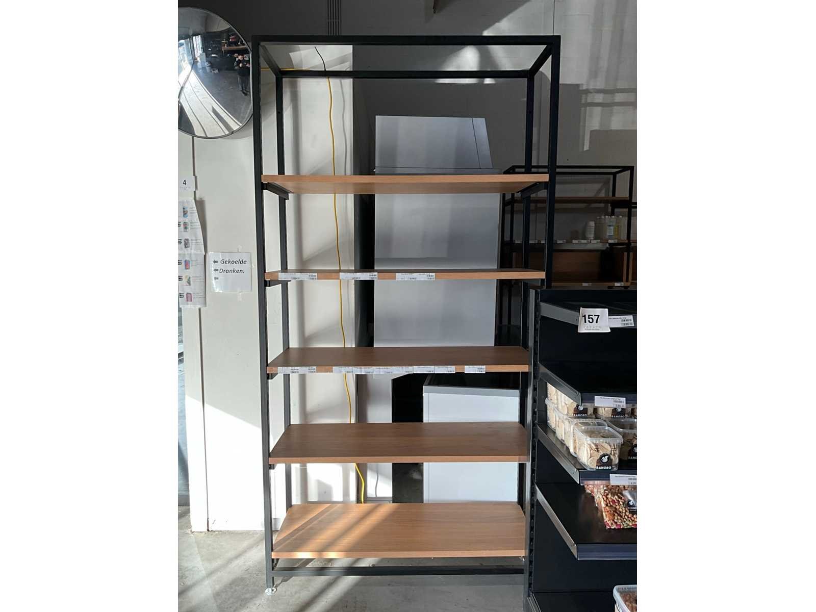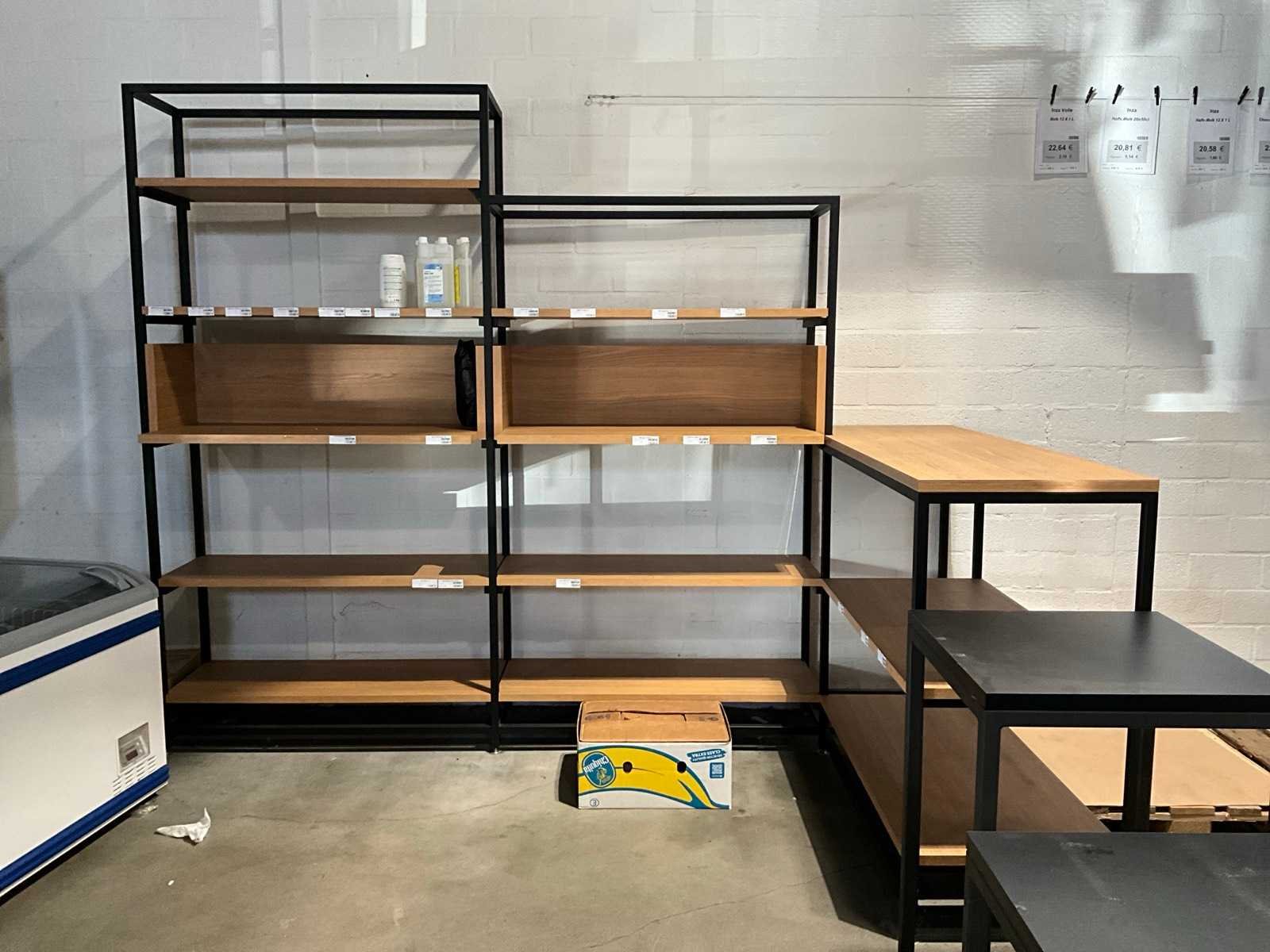 Waaronder gondelarek voorzien van 2x 5 leggers, 2x bijzettafel met afmeting 60x60cm, met hoogte 60 en 93cm, metalen hoekmeubel met afmeting: 315x172x250cm, 2 diverse metalen rekken met afmeting: 130x45x250cm, zonder inhoud Nee