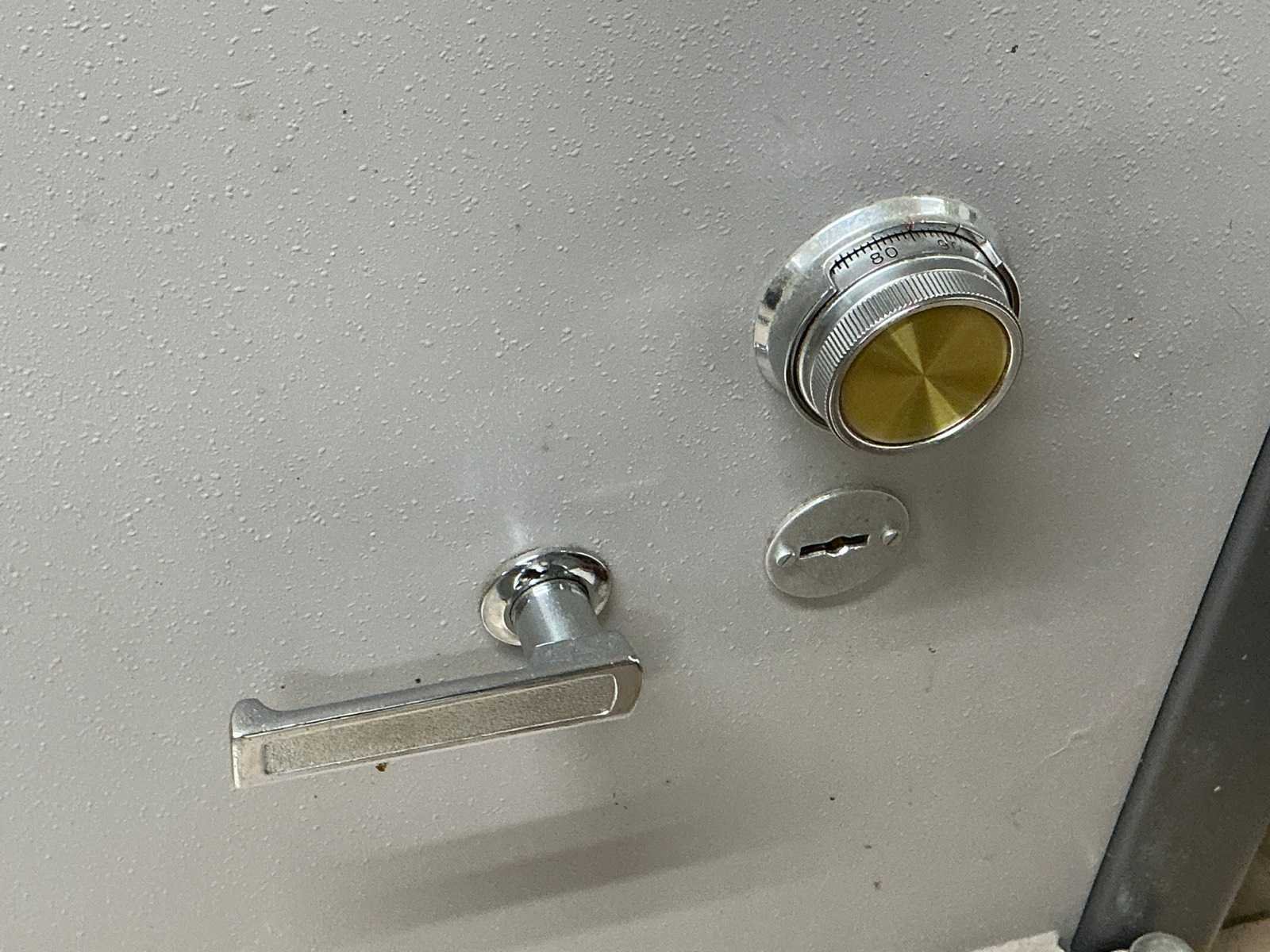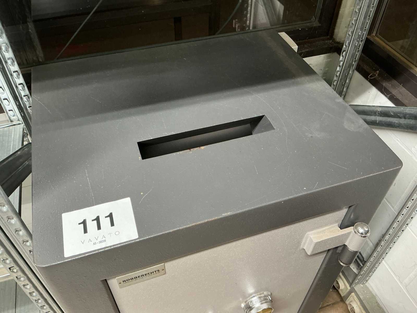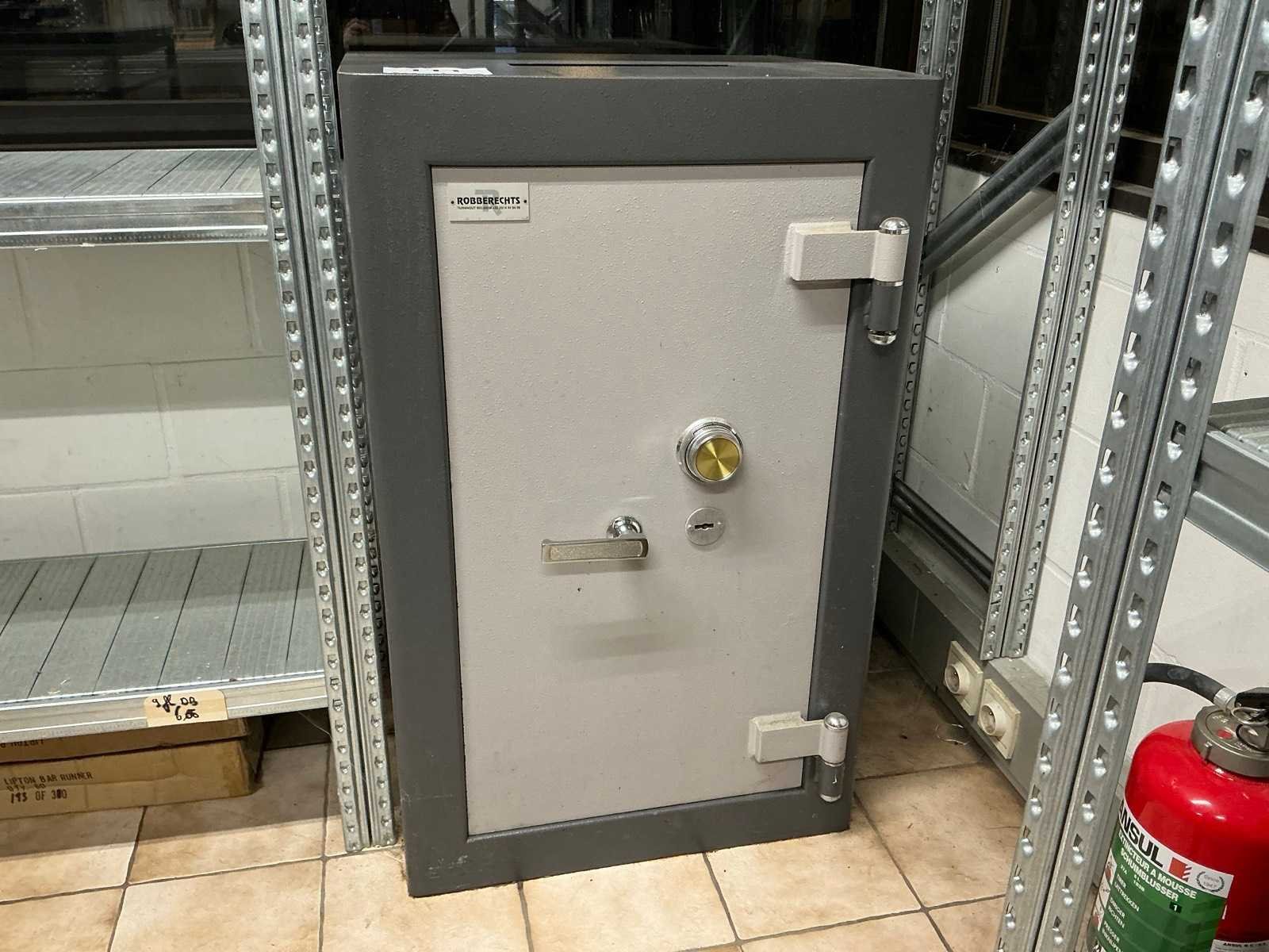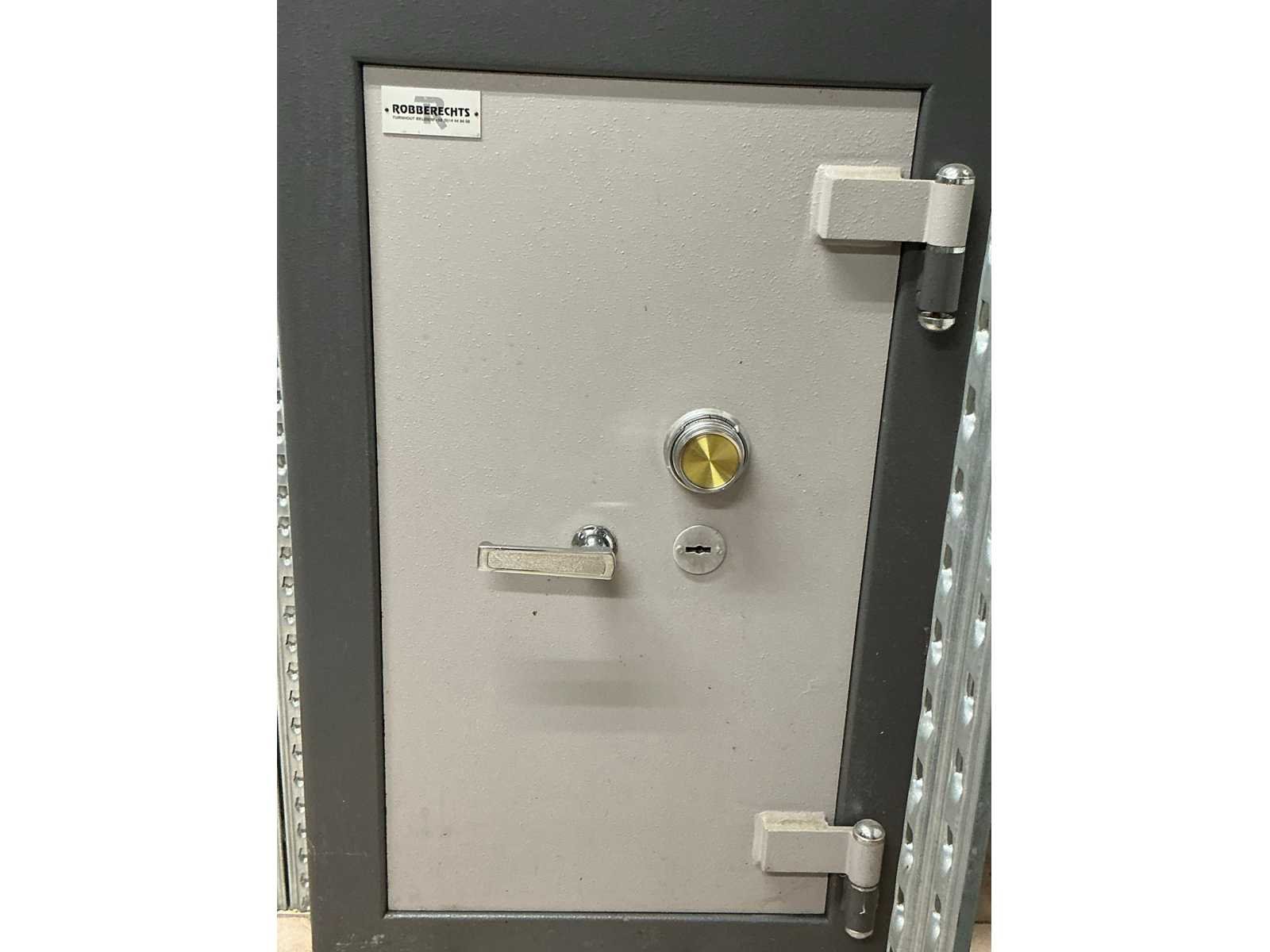Zonder sleutel, cijfercode en inhoud ongekend Nee Merk: Robberechts Kleur: Grijs/beige Lengte: 62cm Breedte: 53cm Hoogte: 100cm Materiaal: Metaal