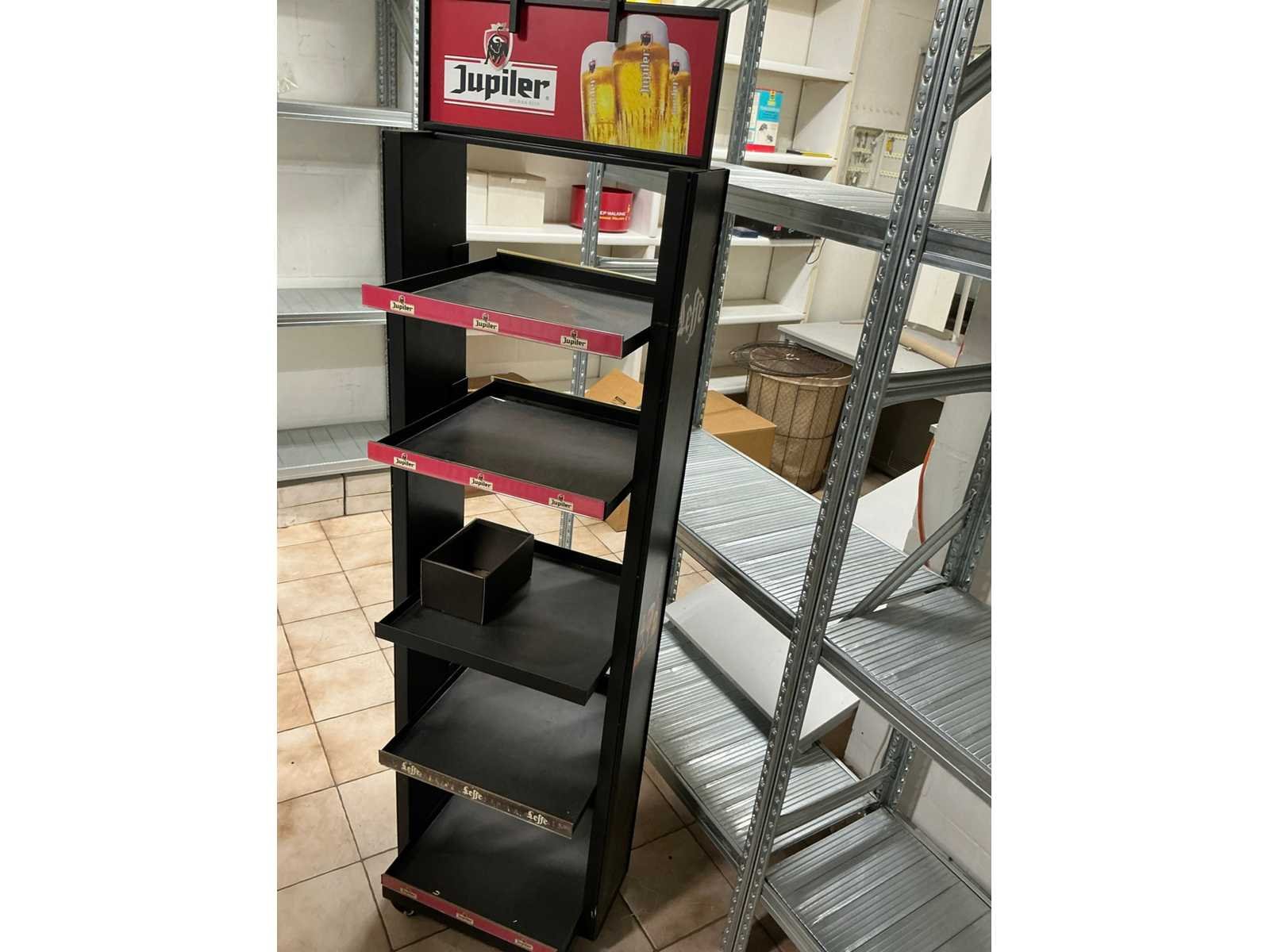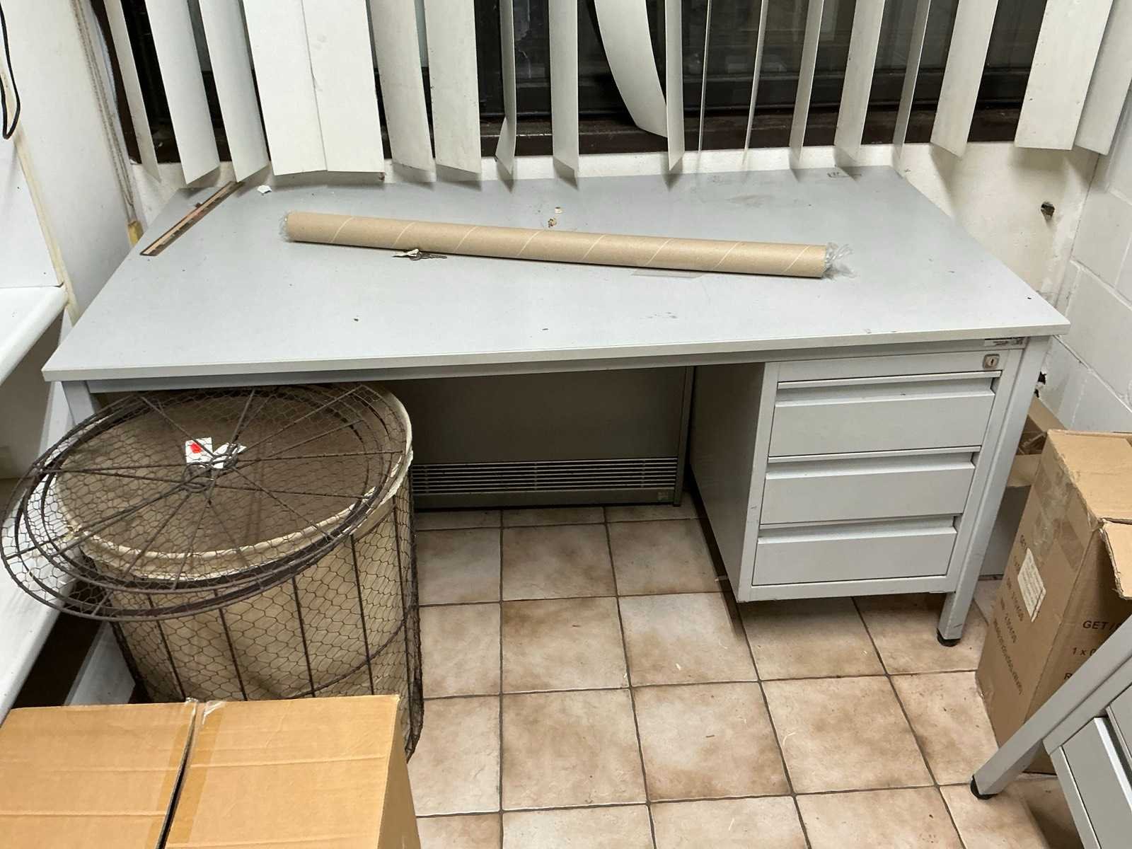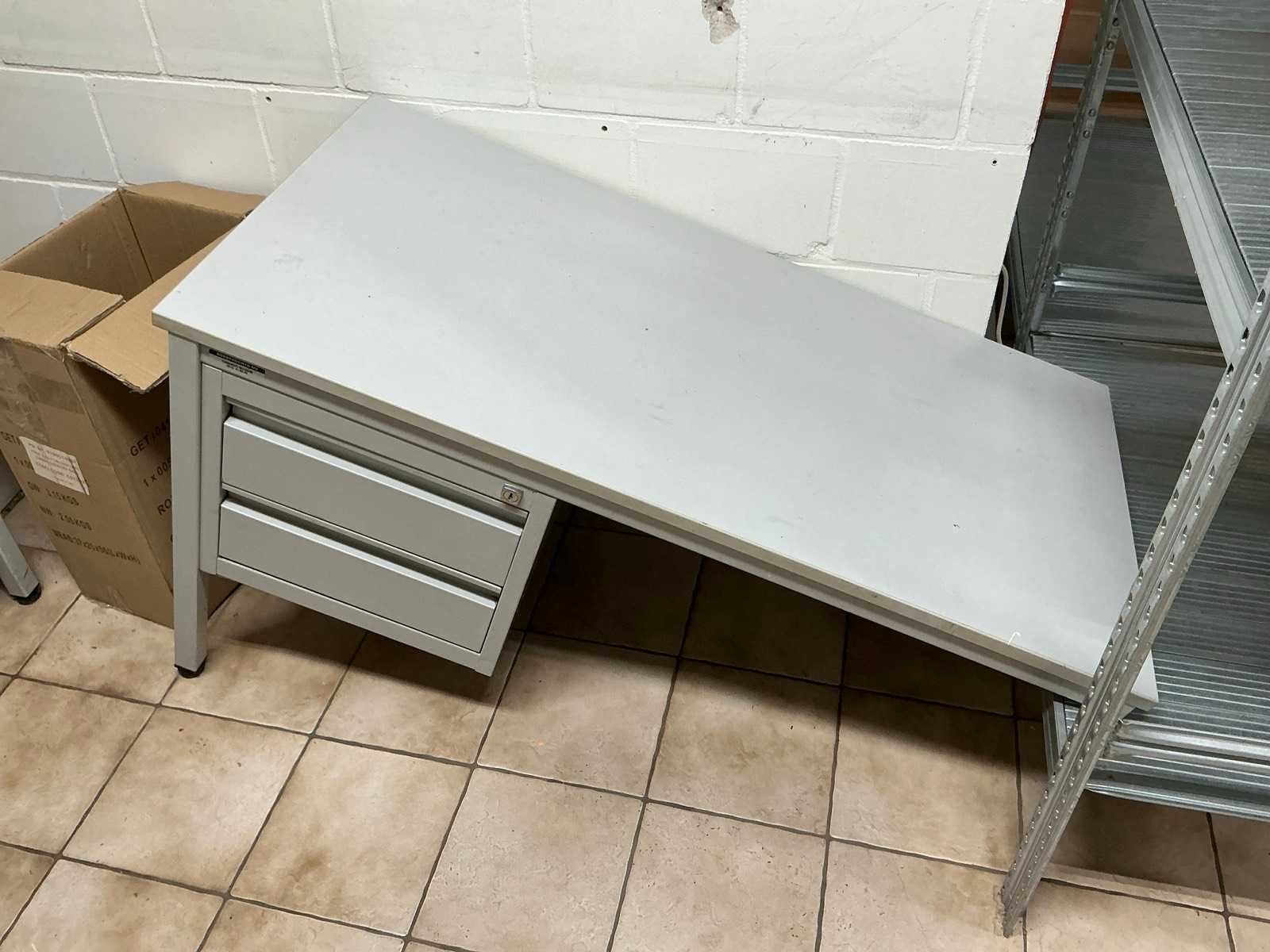 Waaronder bestaande uit een metalen schrijftafel voorzien houten bovenblad en 3 metalen laden, 1 incompleet dito schrijftafel, 1 elektronische kassa Casio, circa 45 Houten wijnkistjes voor 2 flessen getekend wijnkelder.be, 22” tft-scherm Samsung, 1 metalen bijzettafel voorzien van houten bovenblad afmeting circa 100 × 100 × 100 cm, Afgifte volgens aanwijzing, Uitgezonderd genummerde kavels en eigendomsvoorbehoud No