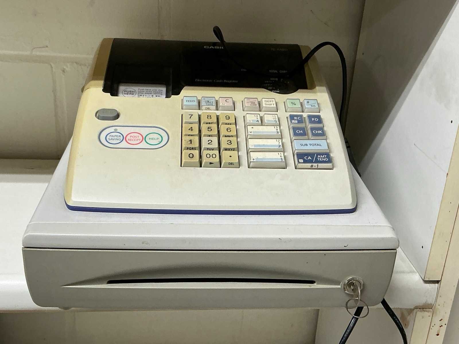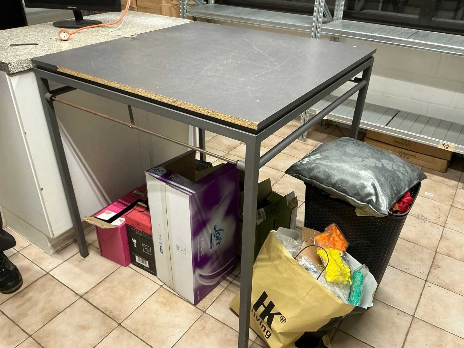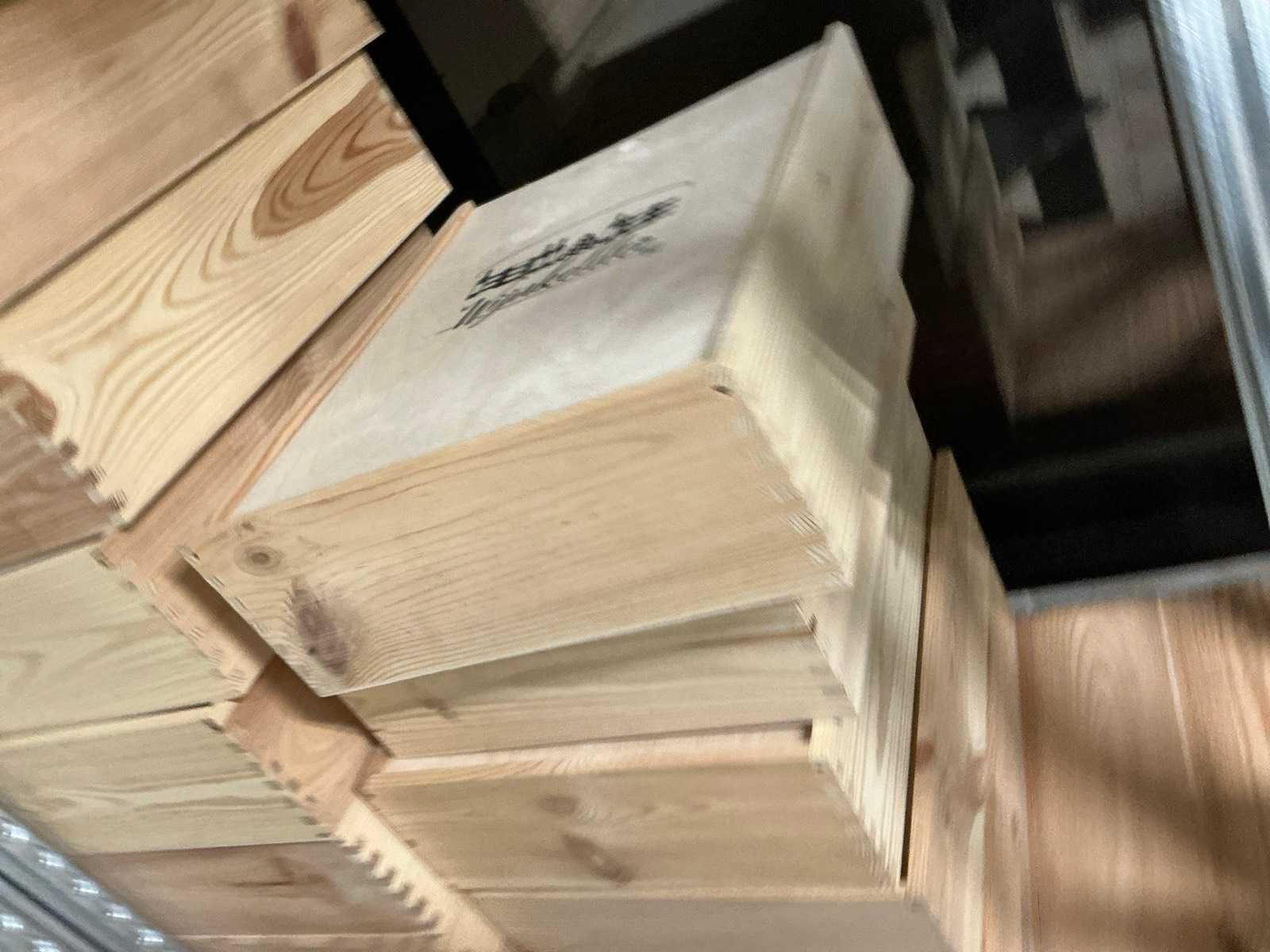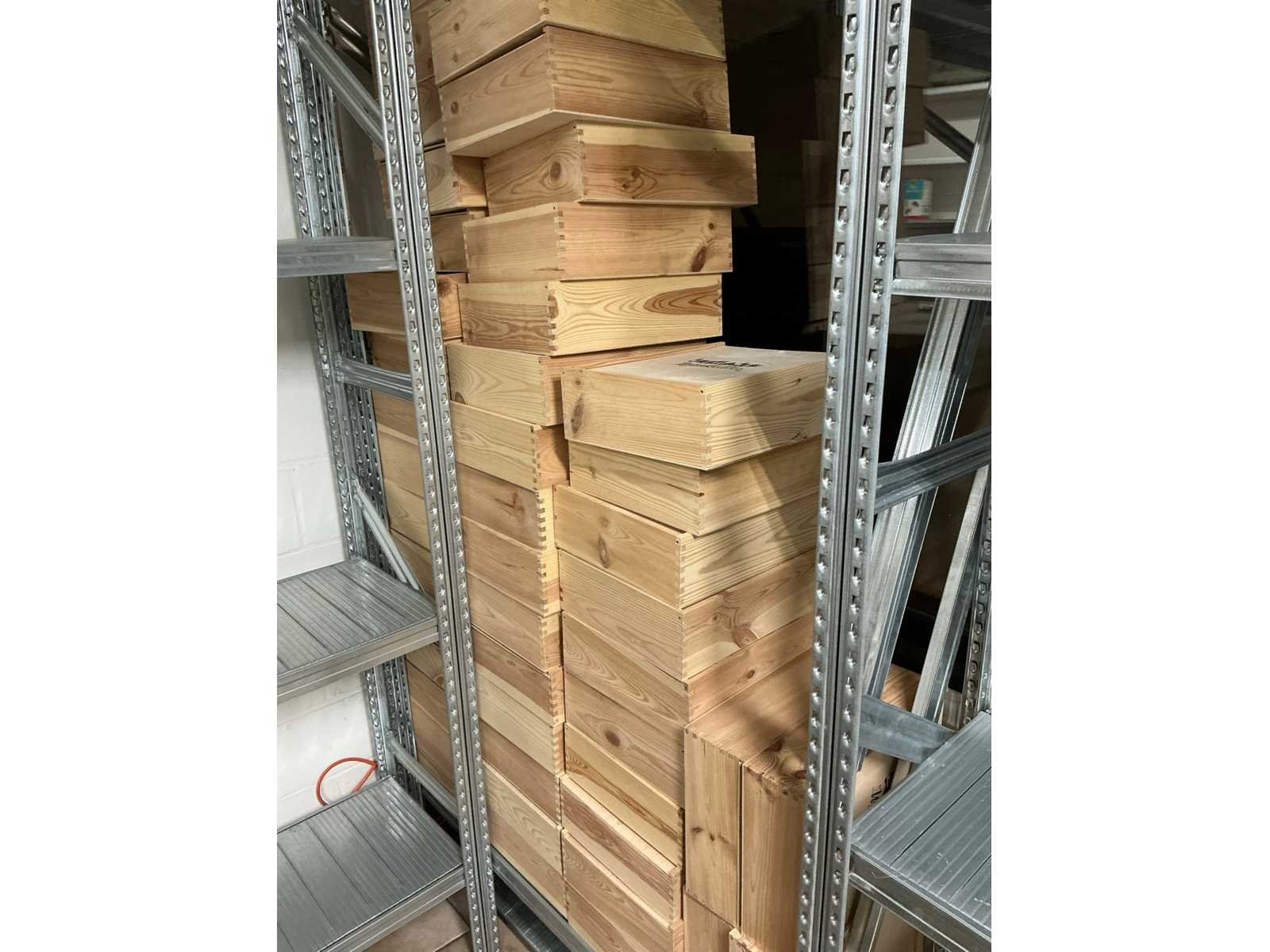 Waaronder bestaande uit een metalen schrijftafel voorzien houten bovenblad en 3 metalen laden, 1 incompleet dito schrijftafel, 1 elektronische kassa Casio, circa 45 Houten wijnkistjes voor 2 flessen getekend wijnkelder.be, 22” tft-scherm Samsung, 1 metalen bijzettafel voorzien van houten bovenblad afmeting circa 100 × 100 × 100 cm, Afgifte volgens aanwijzing, Uitgezonderd genummerde kavels en eigendomsvoorbehoud No