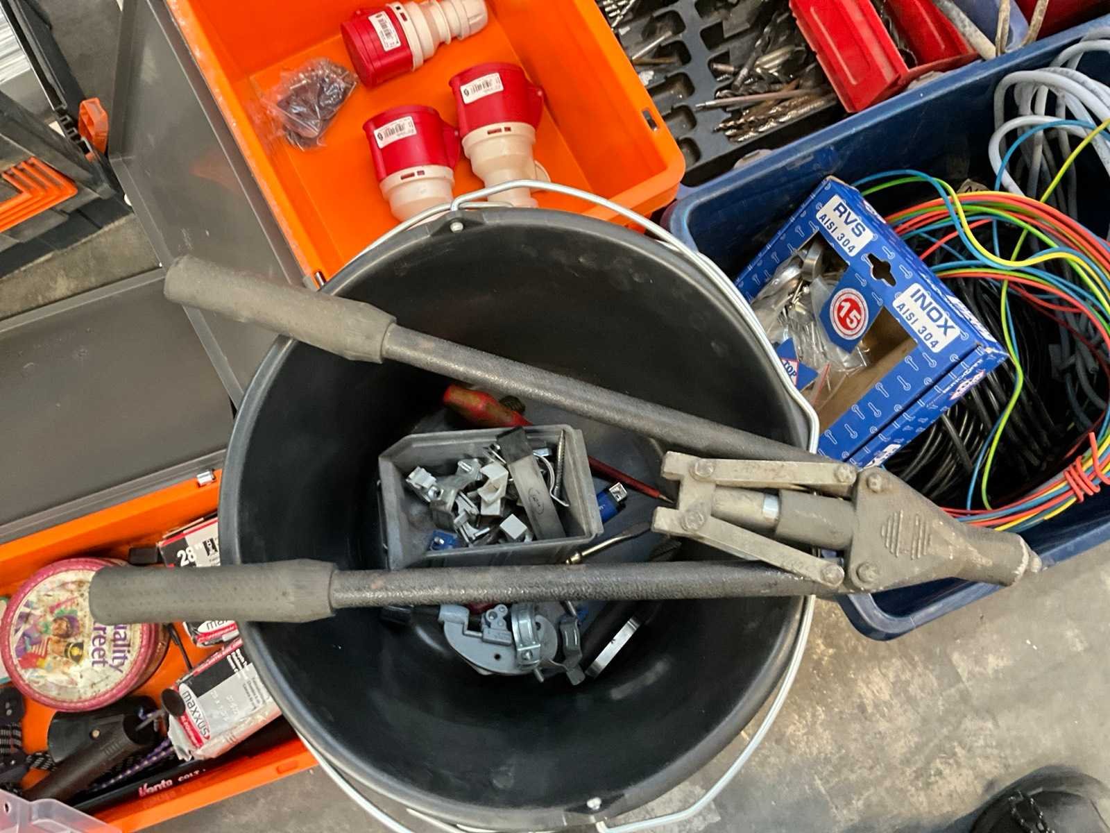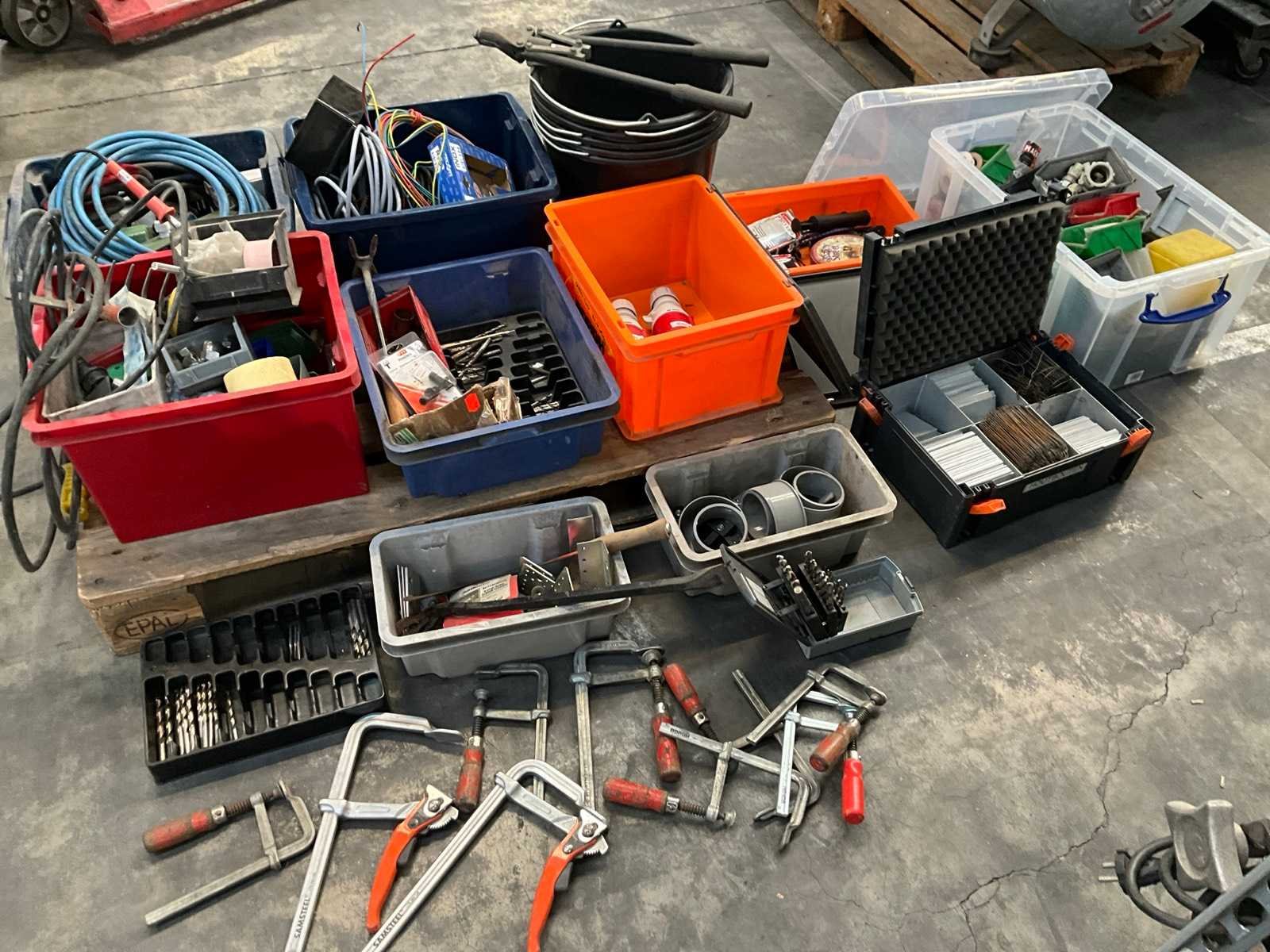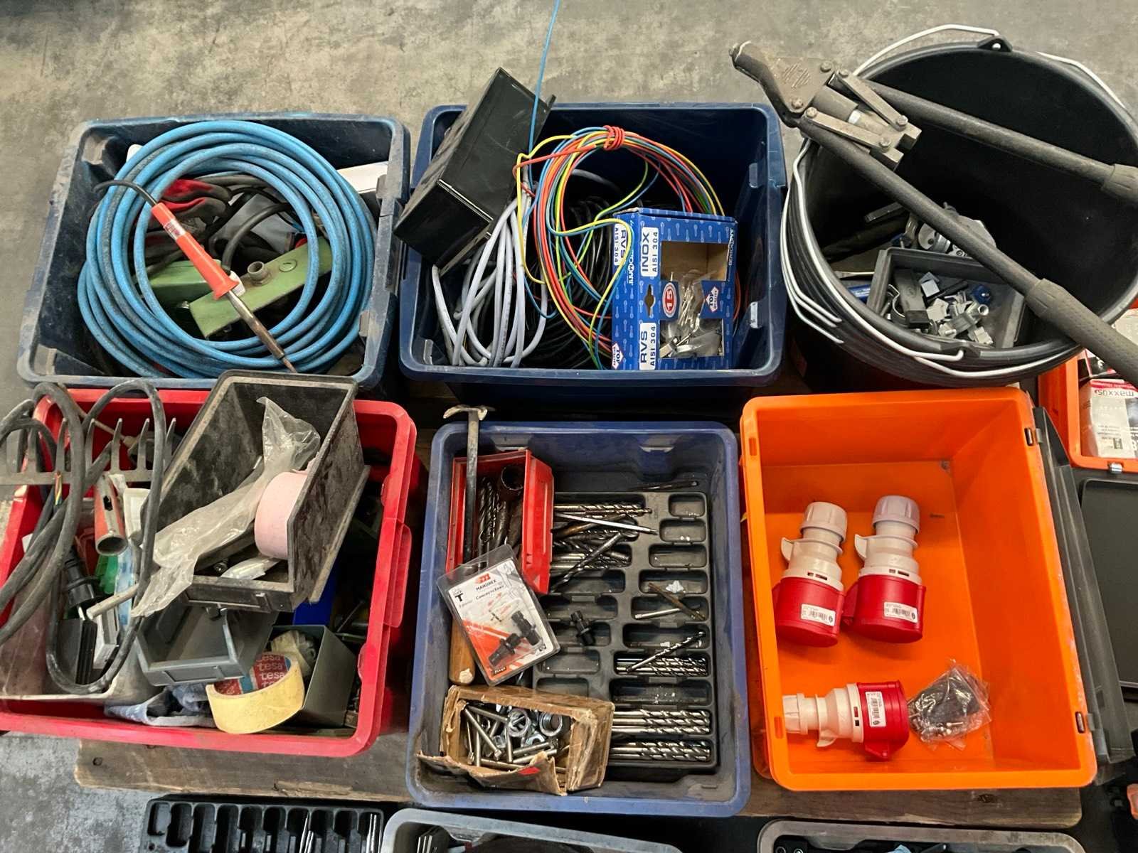 Waaronder diverse boren, 7 lijmtangen, 2 Samsteel snelspanklemmen, 5 emmers, installatiematerialen, bevestigingsmaterialen, elektra en duversen Nee