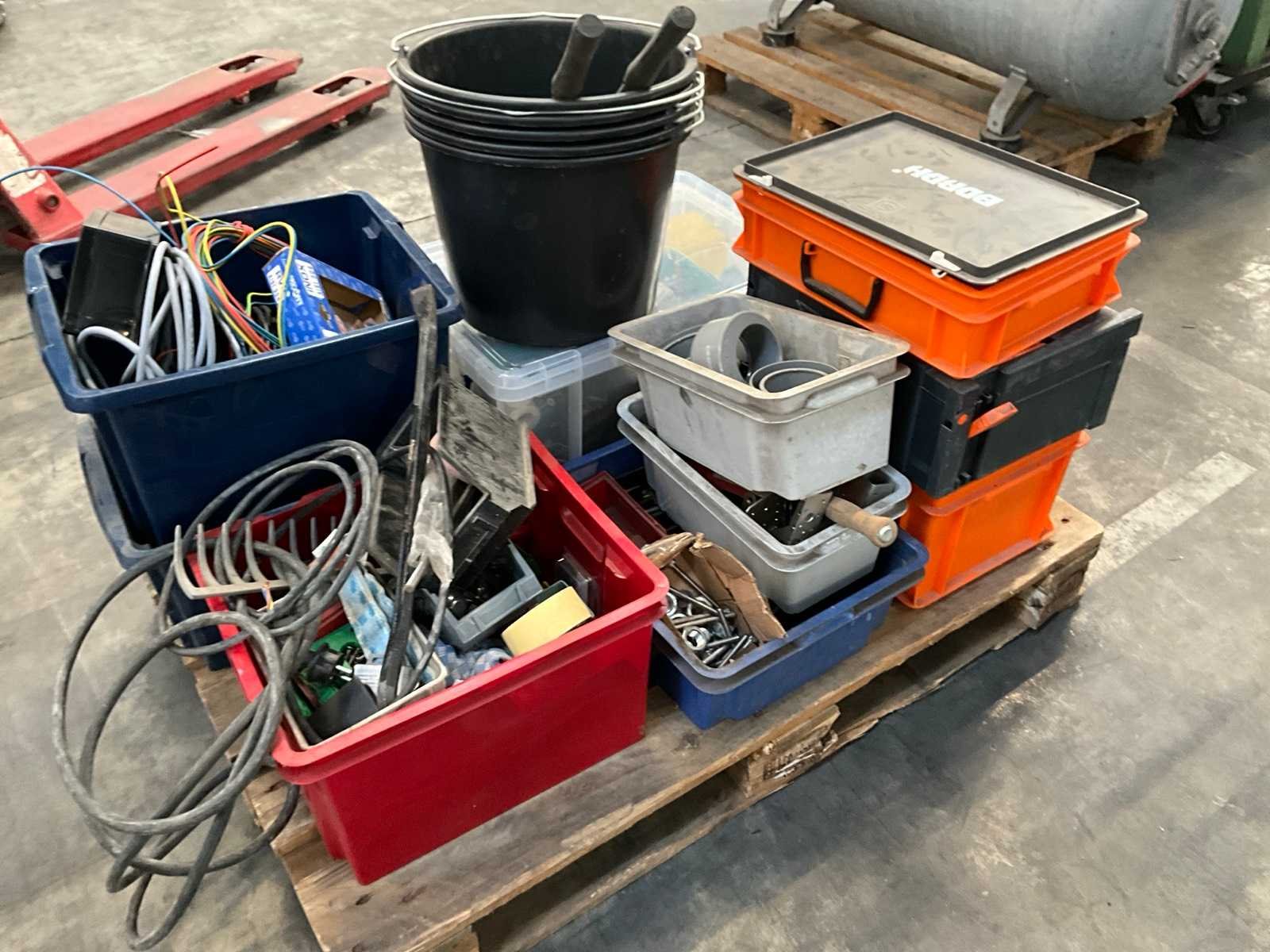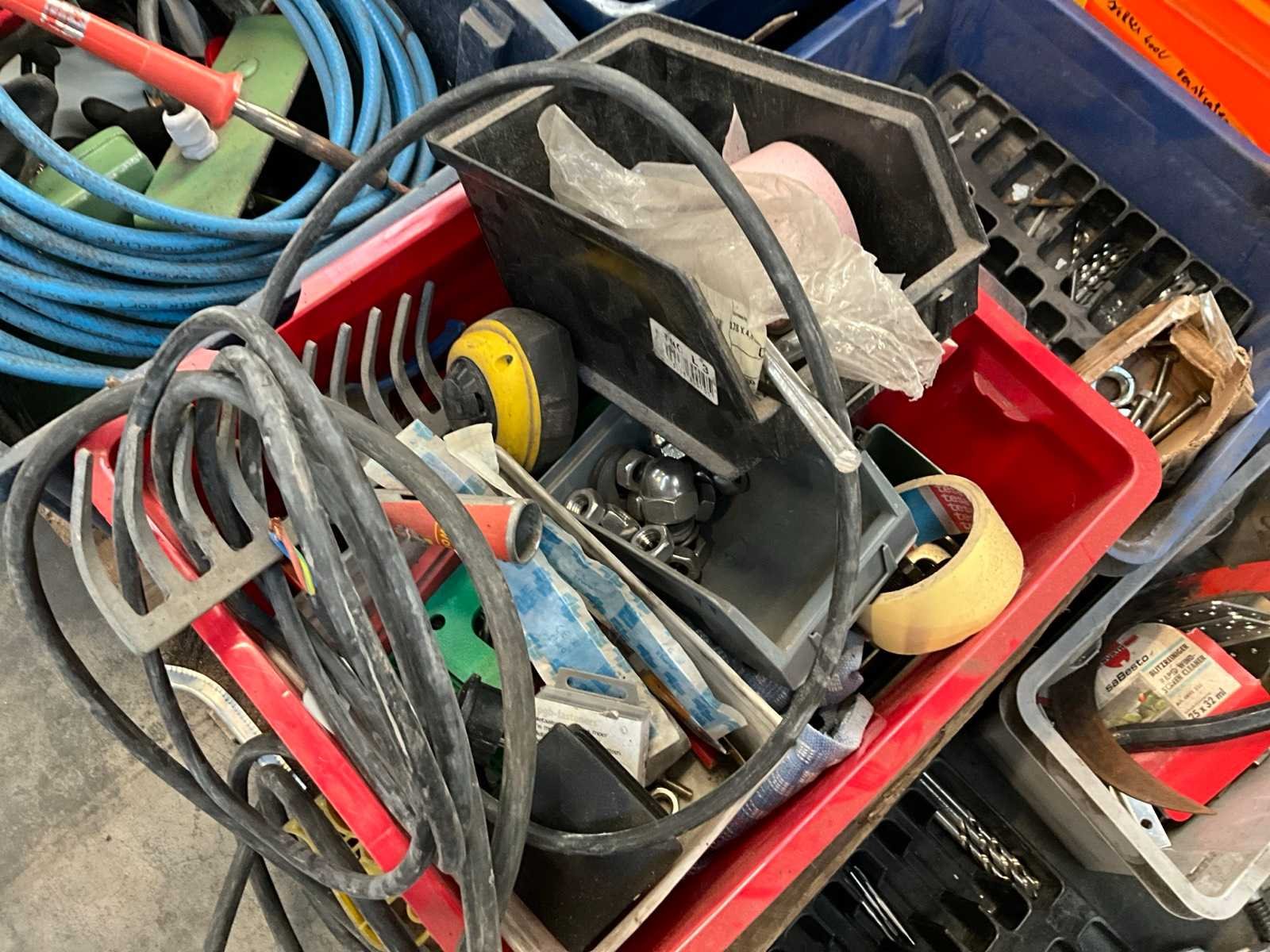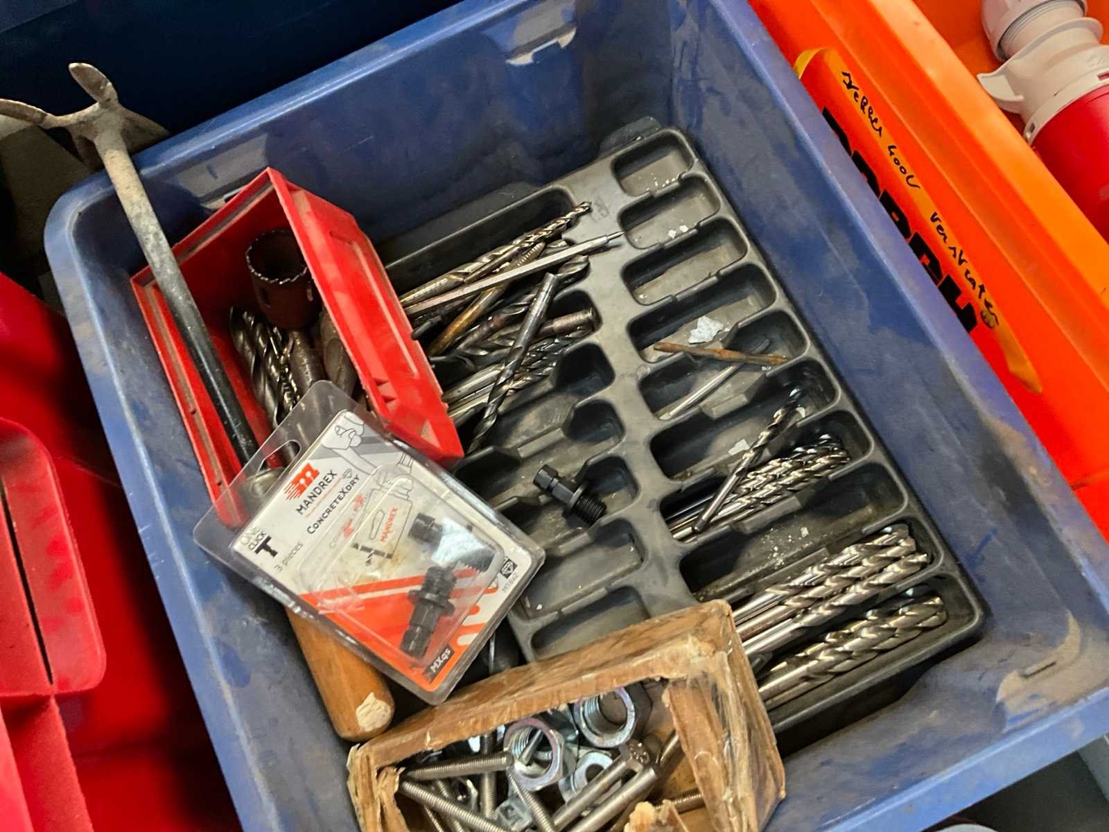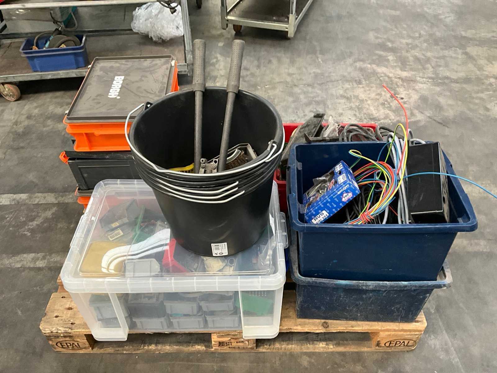 Waaronder diverse boren, 7 lijmtangen, 2 Samsteel snelspanklemmen, 5 emmers, installatiematerialen, bevestigingsmaterialen, elektra en duversen Nee