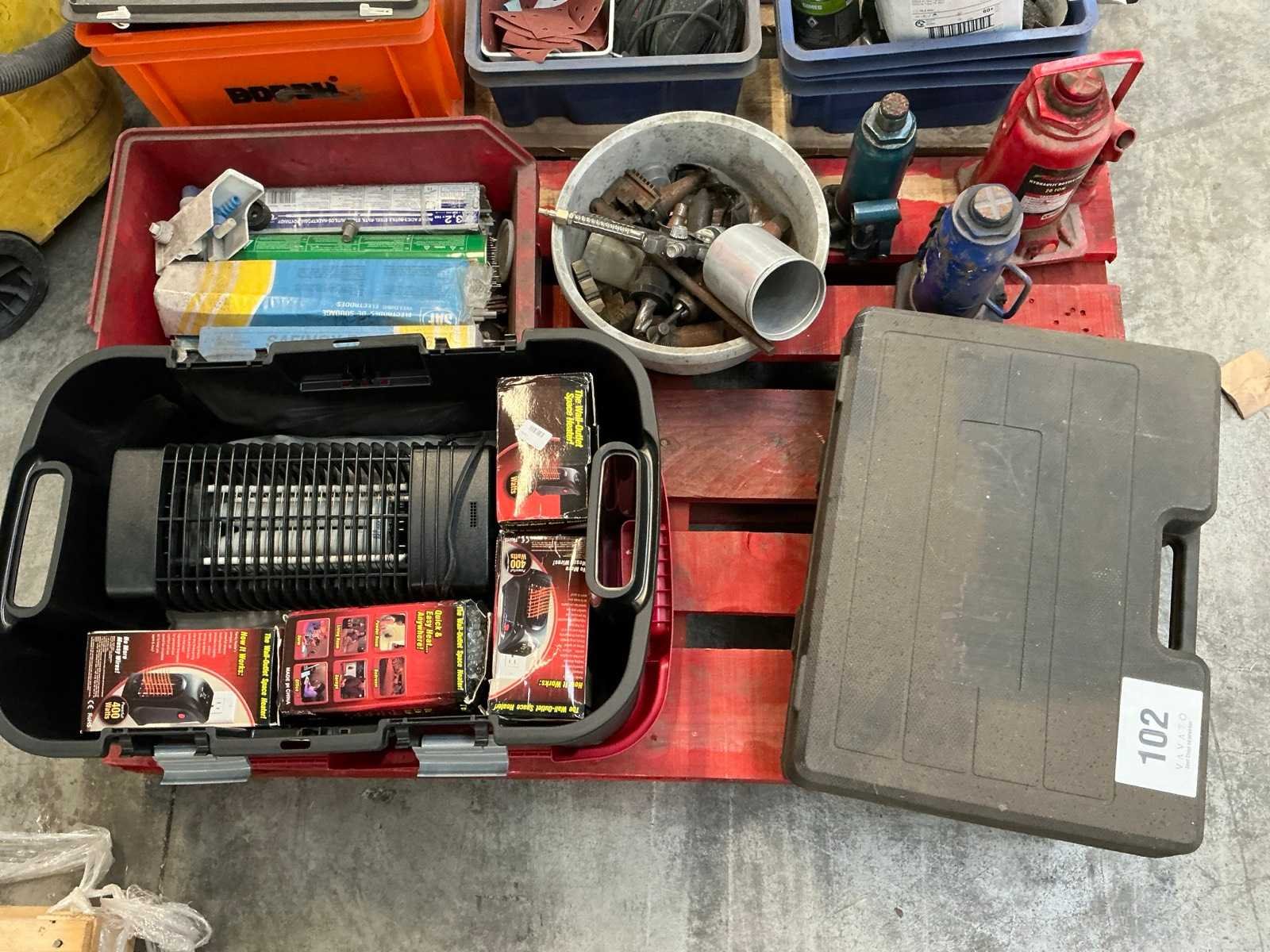 Waaronder verwarmingselementen, hydraulische jacks, spuit-toebehoren en lasbagetten. Liggende op 1 pallet. Nee