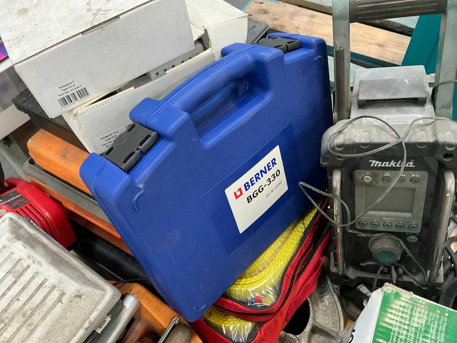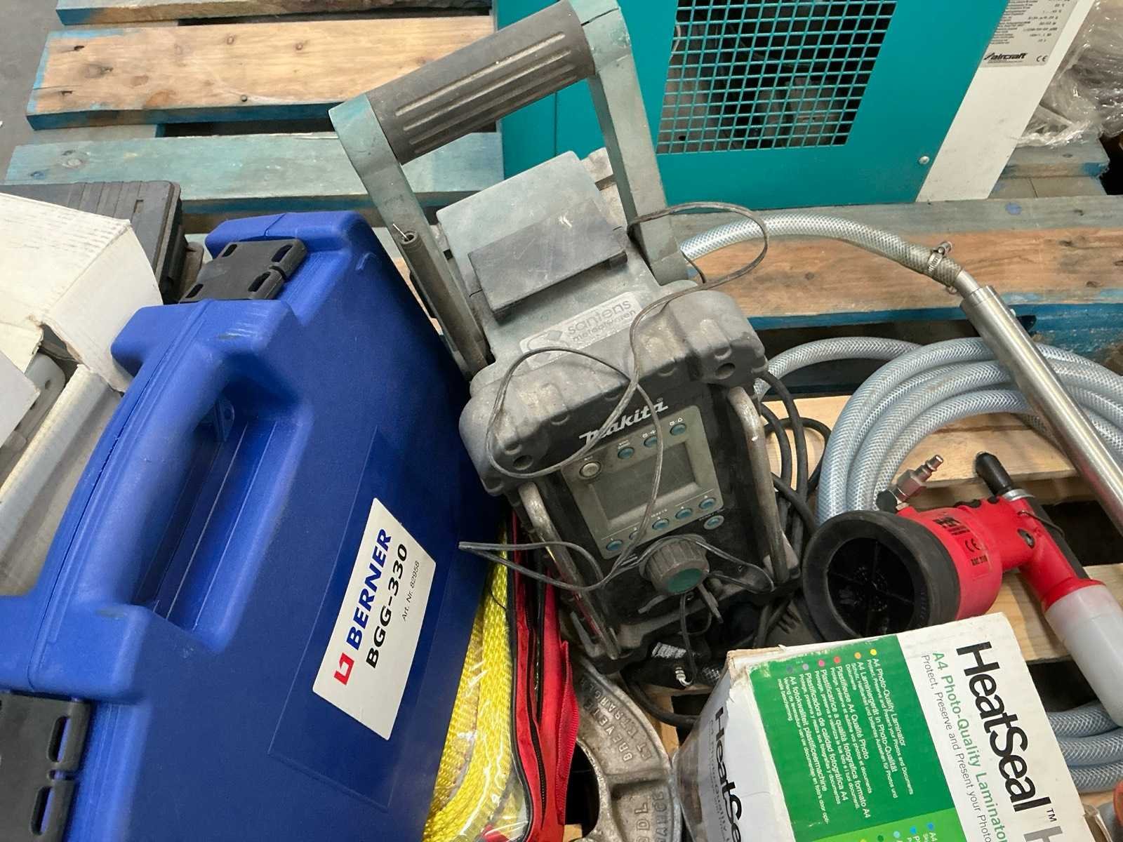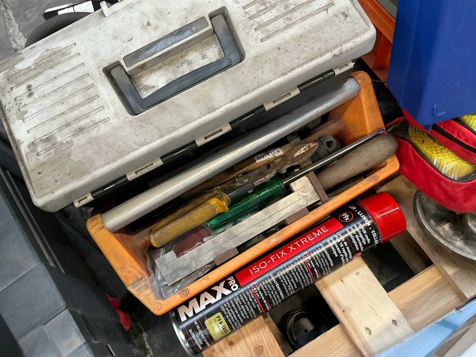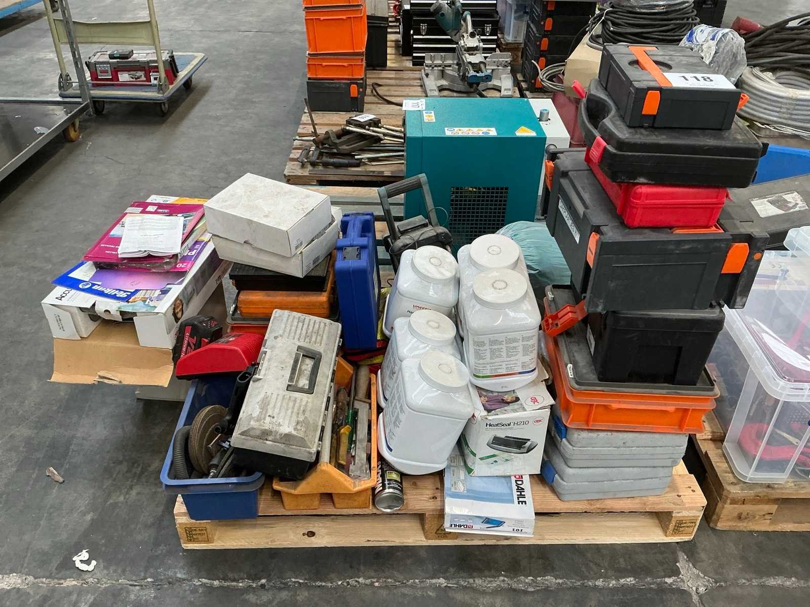 Bestaande uit PU pistool, lader Milwaukee, radio Makita, 7x gereedschapskoffer met inhoud waaronder Rothenberger, lamineertoestel,… Nee