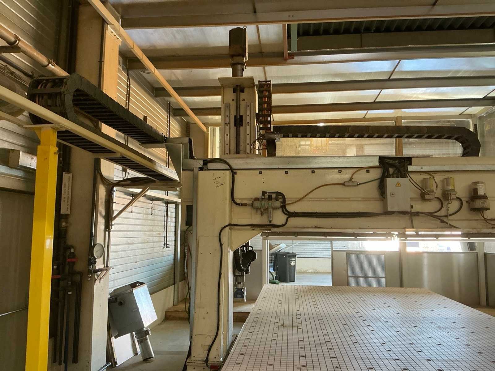 Siemens Sumerik bedieningspaneel; zijwanden en dakconstructie inbegrepen No Merk: Thermwood Type: TH70L Bouwjaar: 1998 Serienummer: C70096E0598 Verplaatsing x-as: 3000mm Verplaatsing y-as: 5900mm Verplaatsing z-as: 400mm Snelheid van n =: 1800rpm Snelheid tot n =: 18000rpm Tafel afmeting l: 5900mm Tafel afmeting b: 3000mm Aansluiting: 400V Totale afmeting L: 8000mm Totale afmeting Breedte: 4200mm Totale afmeting Hoogte: 3550mm